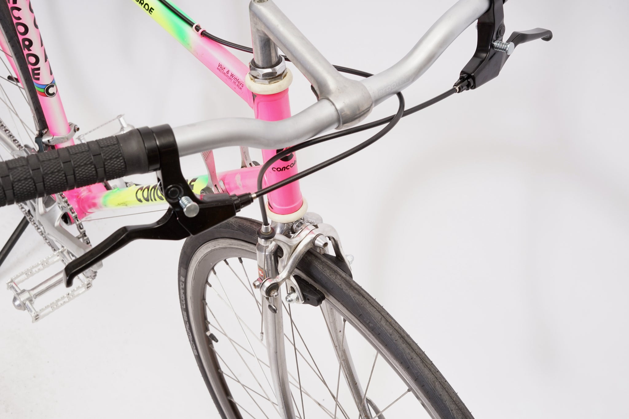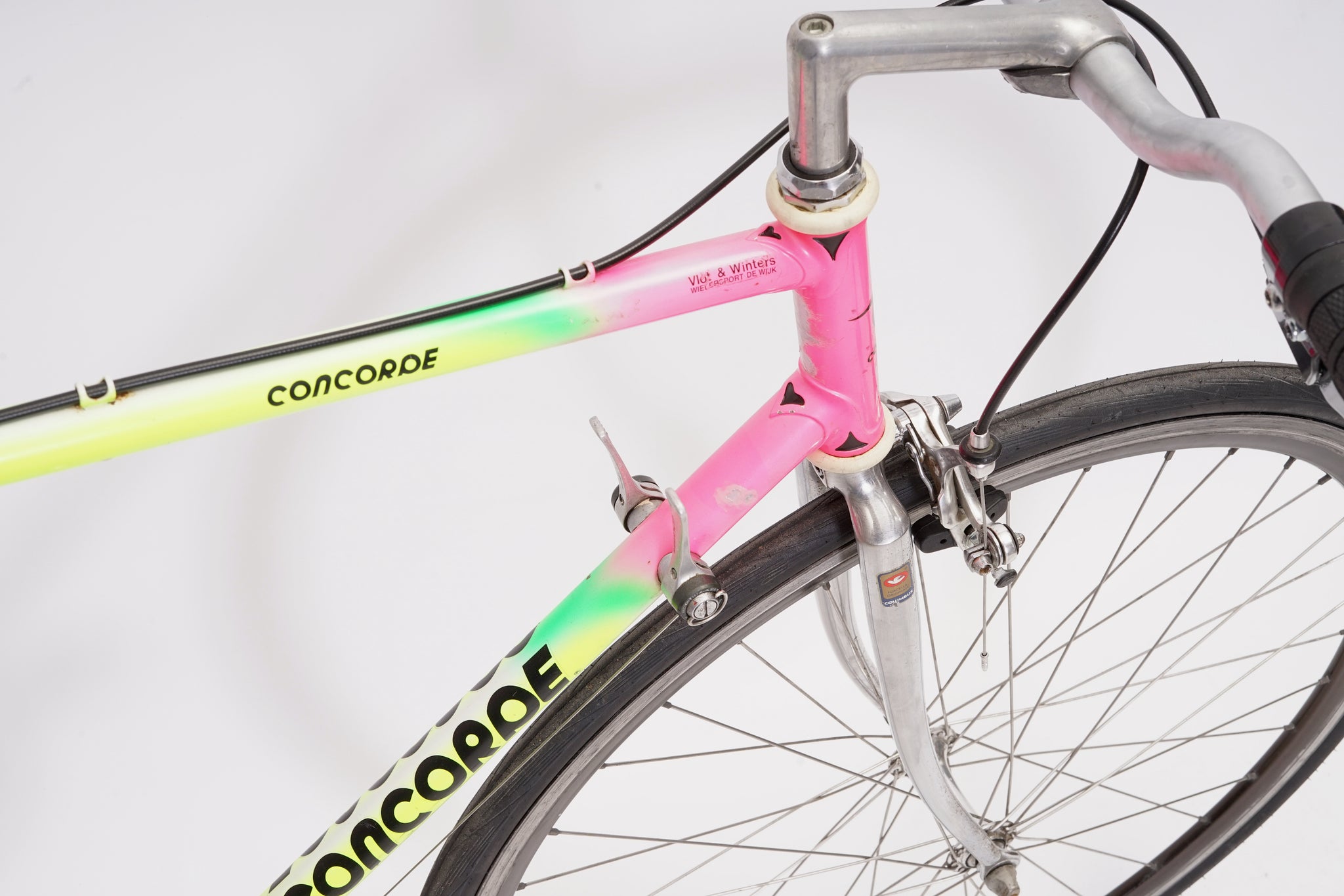 Concorde is a Dutch brand which had its frames built in Italy by Billato and Ciöcc. Concorde sponsored the Dutch PDM cycling team between 1986 and 1992, winning the 1990 world championships on a Concorde bike.