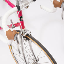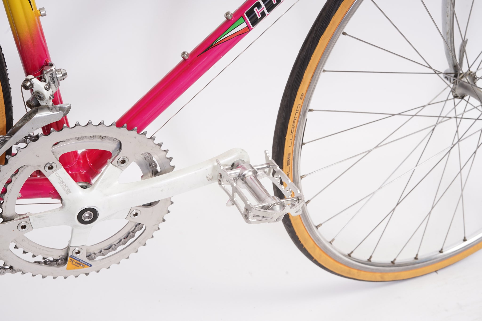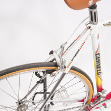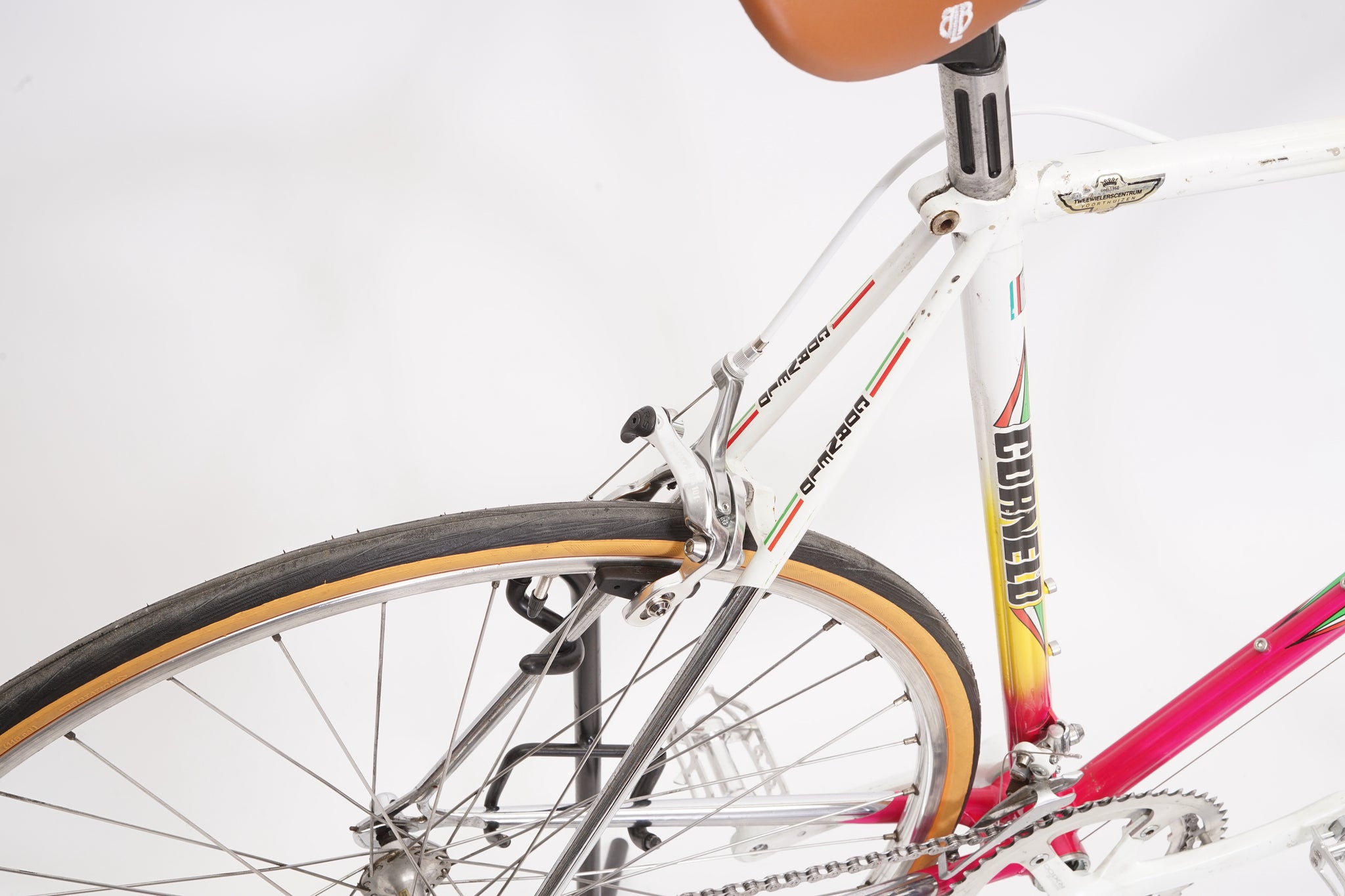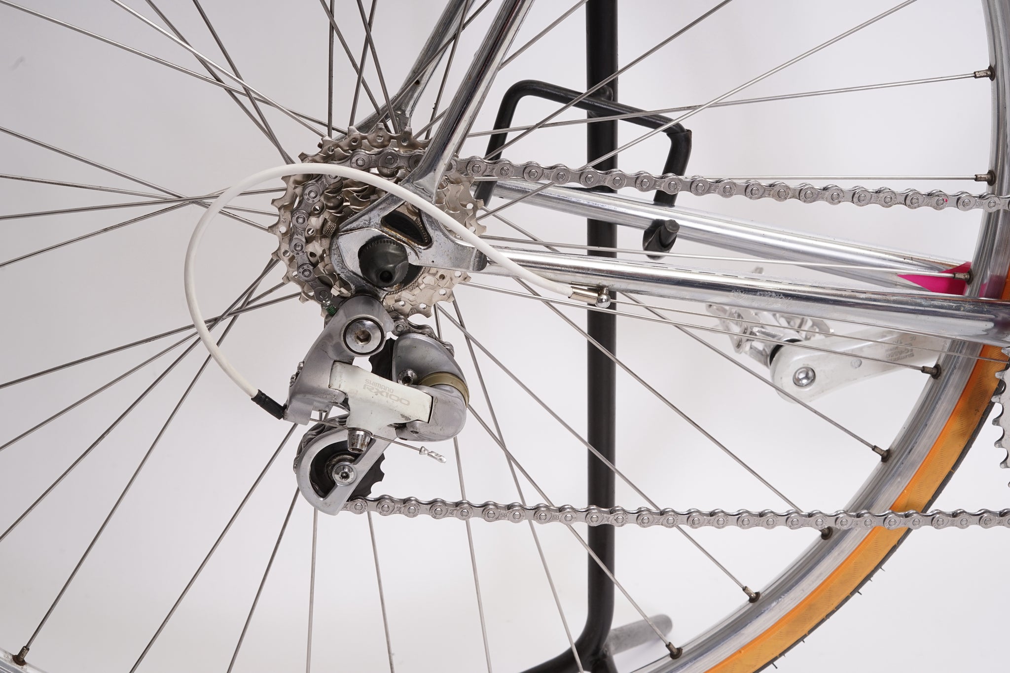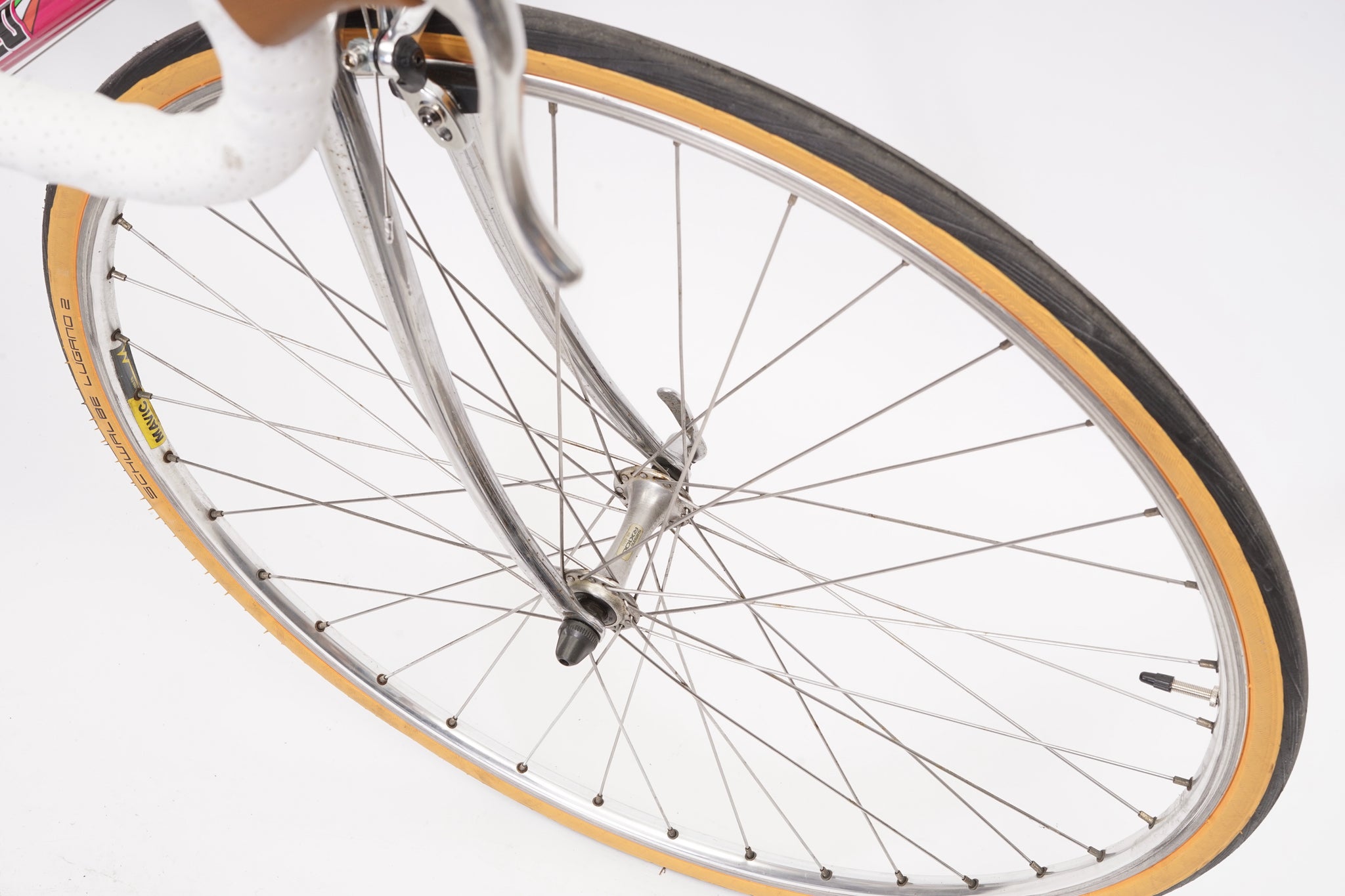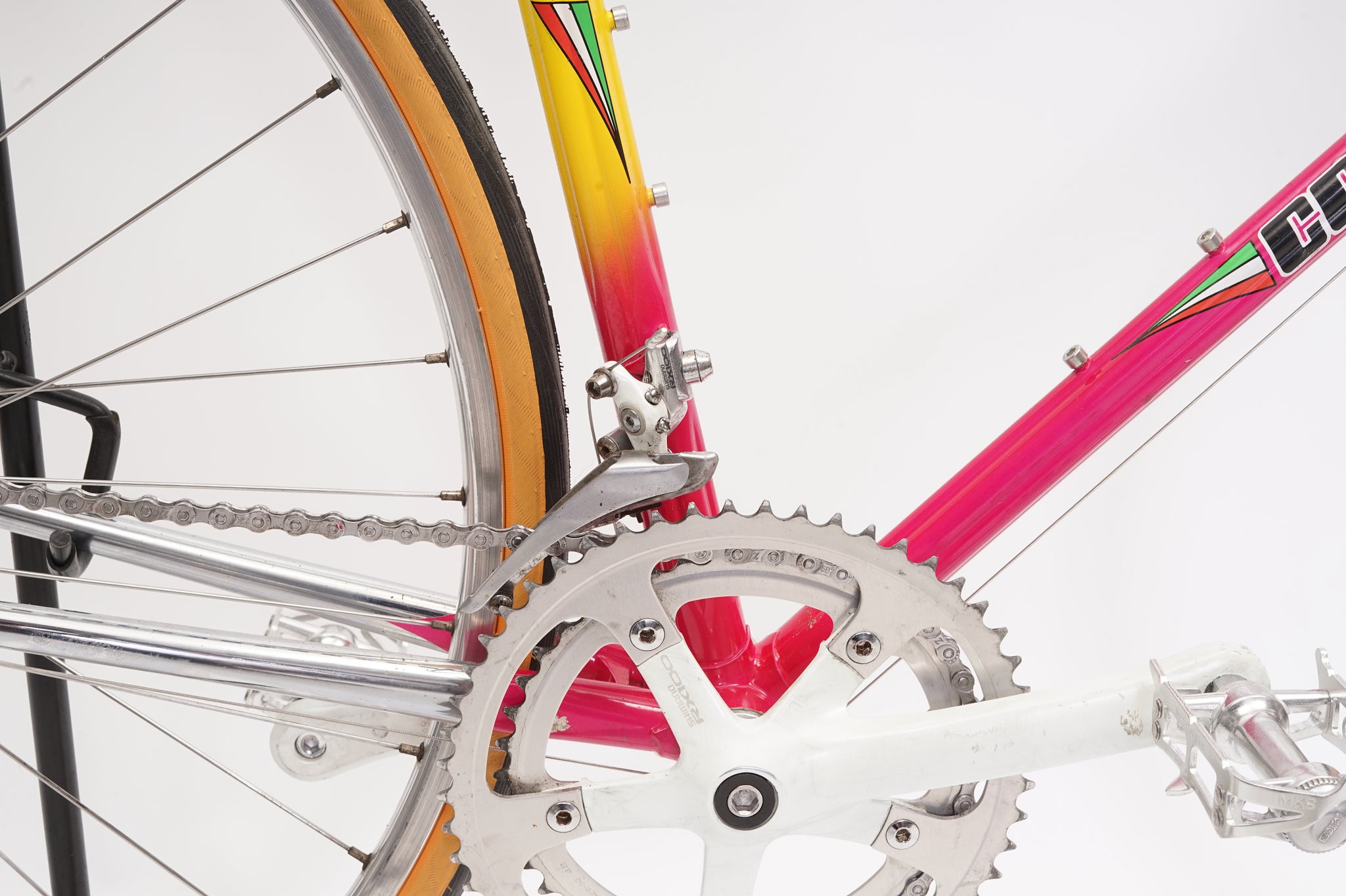 This Cornelo racer is great for putting in some miles while enjoying the vintage style. It is equipped with a 14-speed Shimano gear-group and an original wheelset containing Shimano hubs and Mavic rims. All mechanical gear parts are original and in great condition. A lightweight, super fast, piece of history.