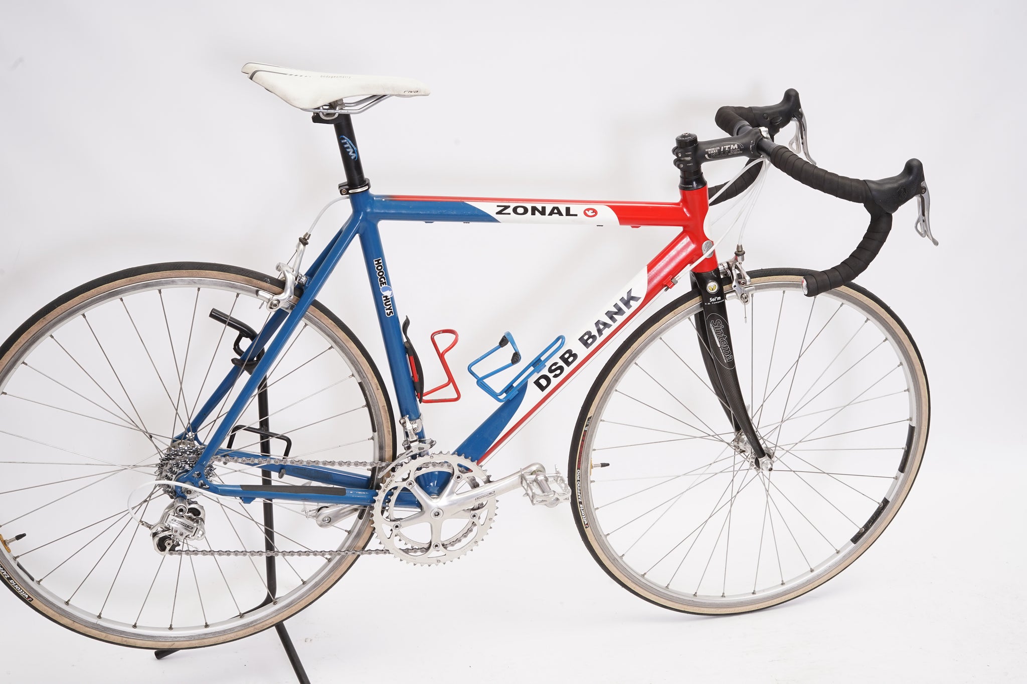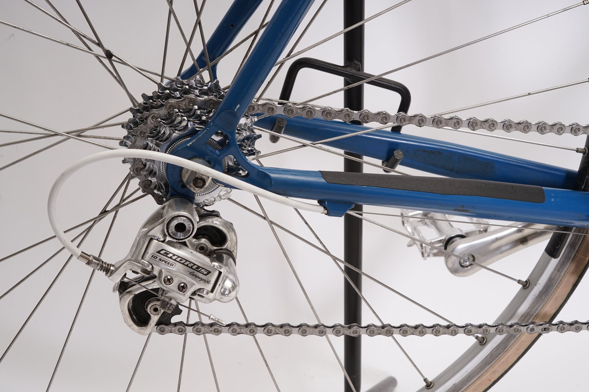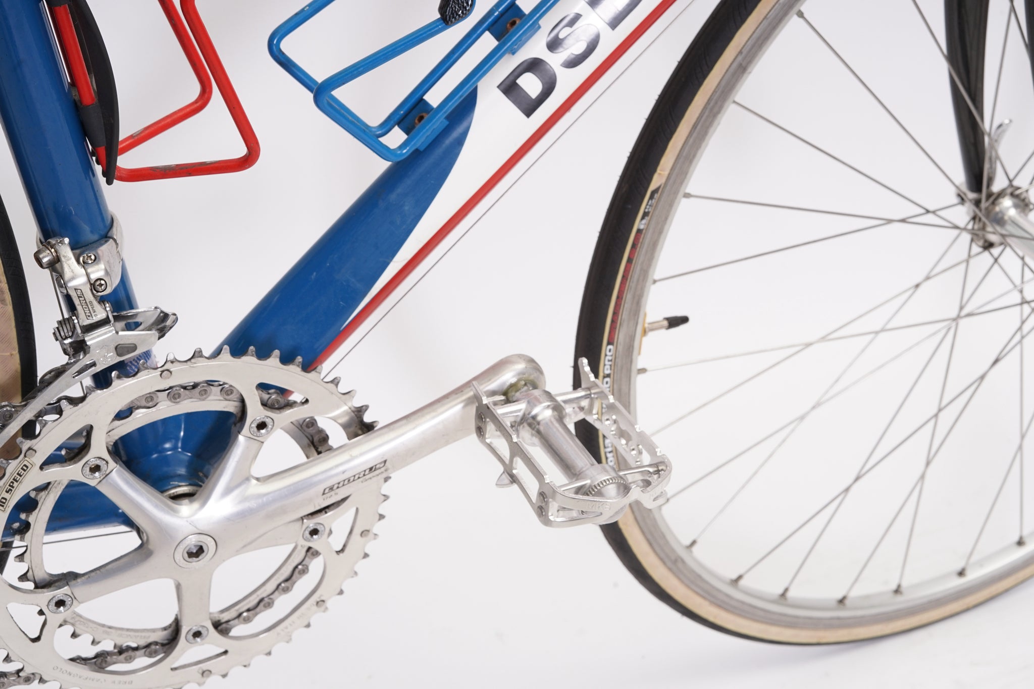This DSB Bank racer is great for putting in some miles while enjoying the vintage style. It is equipped with a 20-speed Campagnolo Chorus gear-group and and original wheelset with Campagnolo hubs and Ambrosio rims. All mechanical gear parts are original and in great condition. A lightweight, super fast, piece of history.