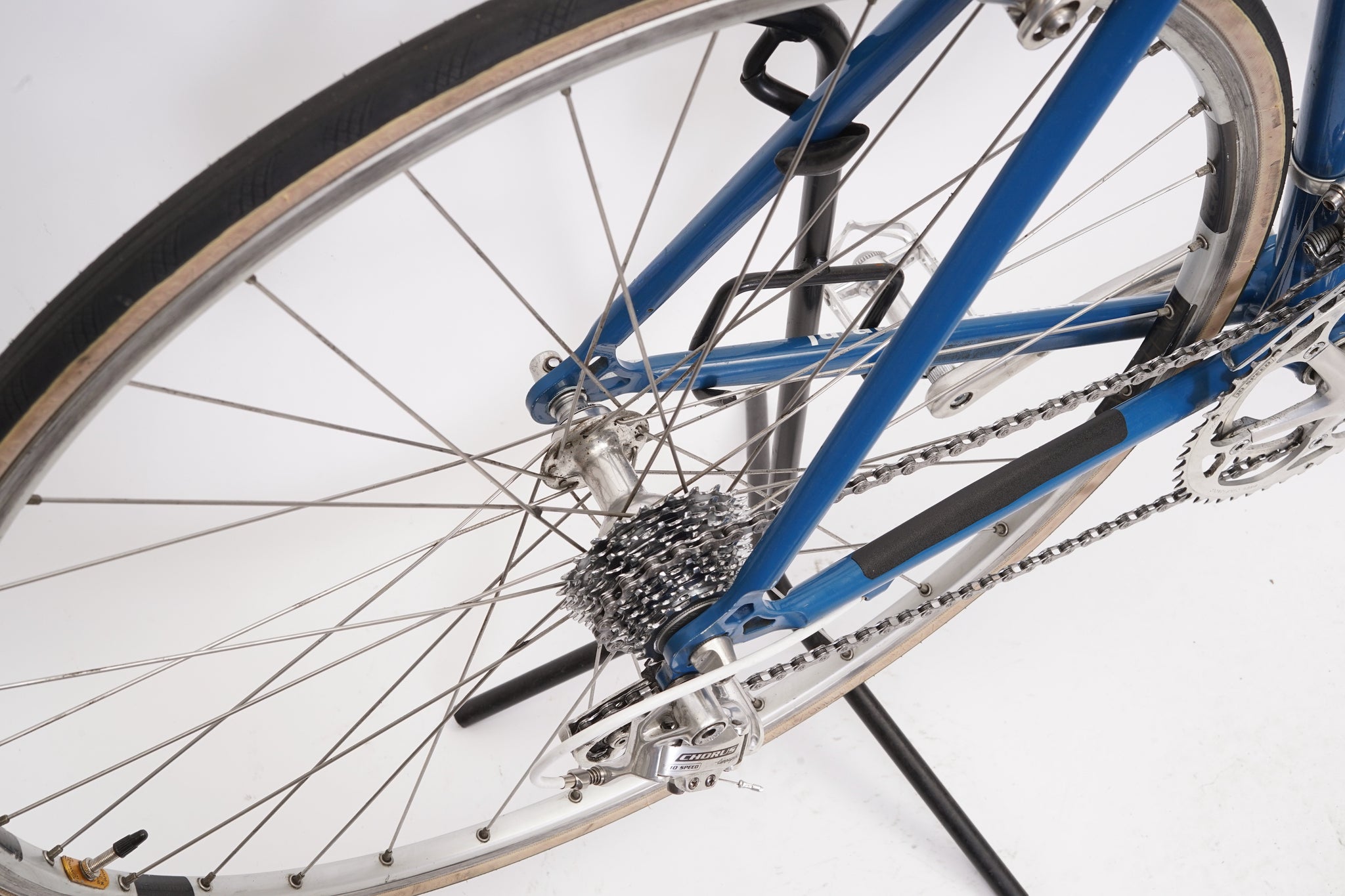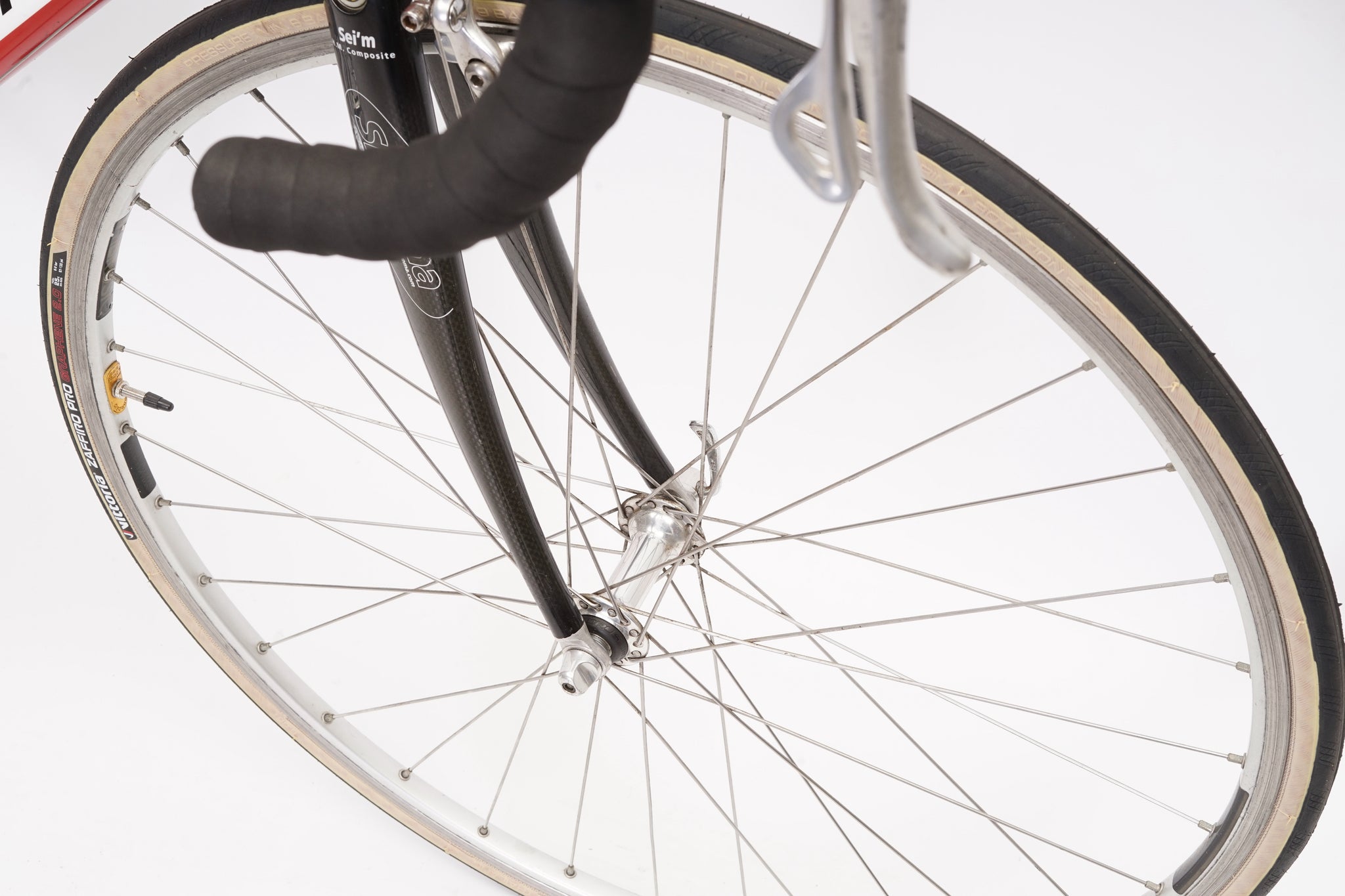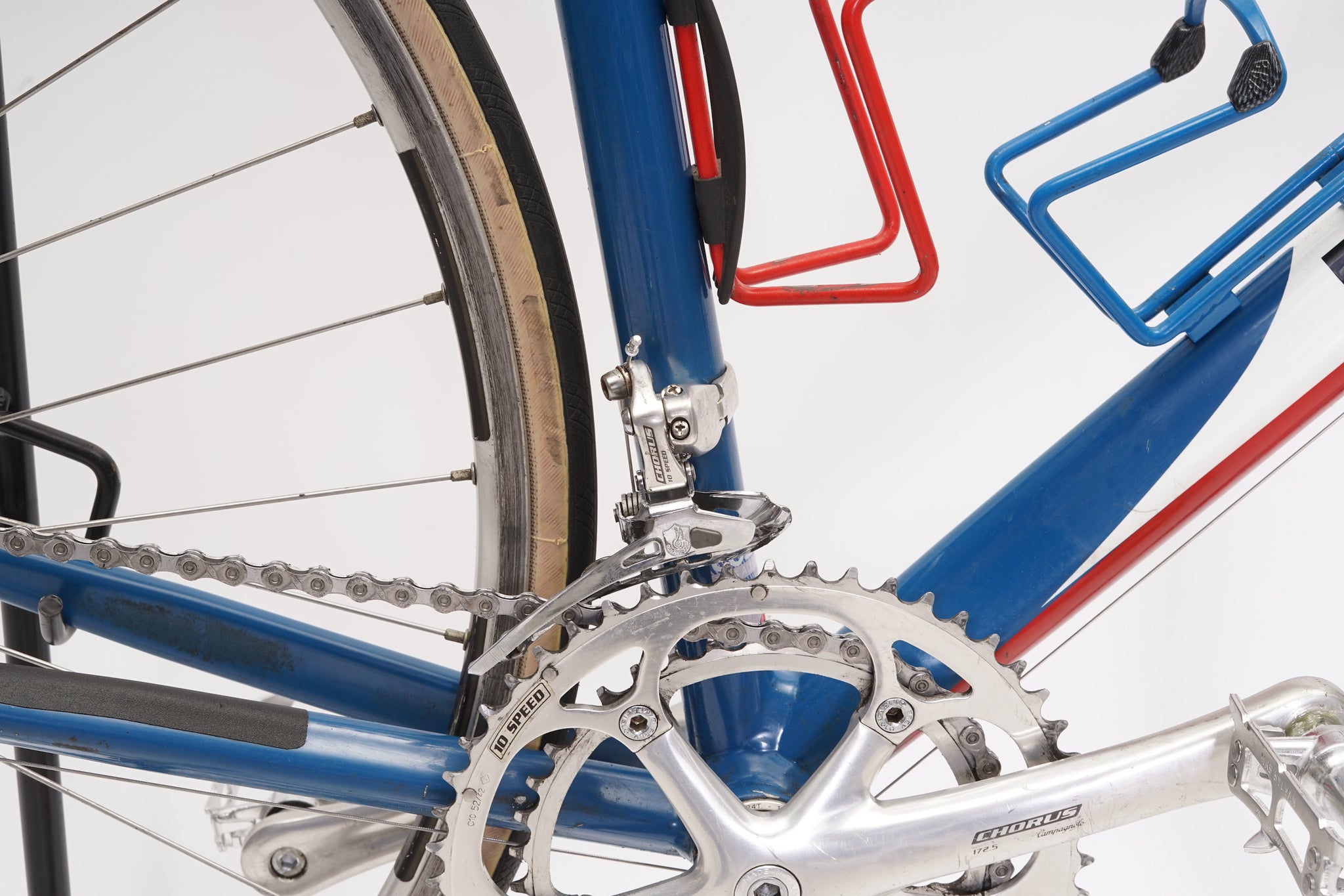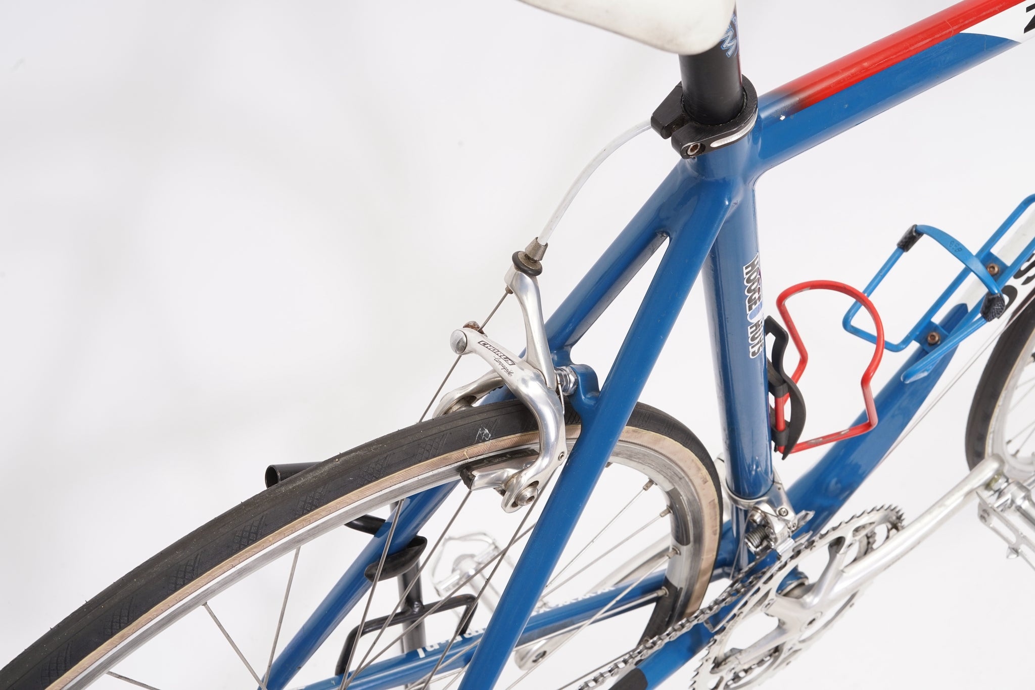 This DSB Bank racer is great for putting in some miles while enjoying the vintage style. It is equipped with a 20-speed Campagnolo Chorus gear-group and and original wheelset with Campagnolo hubs and Ambrosio rims. All mechanical gear parts are original and in great condition. A lightweight, super fast, piece of history.