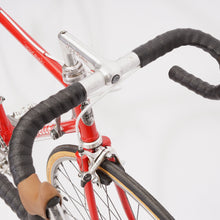 This Gazelle Champion Mondial racer is great for putting in some miles while enjoying the vintage style. It is equipped with a 10-speed Shimano gear-group and an original wheelset. All mechanical parts are in great condition. A lightweight, super fast, piece of history.
