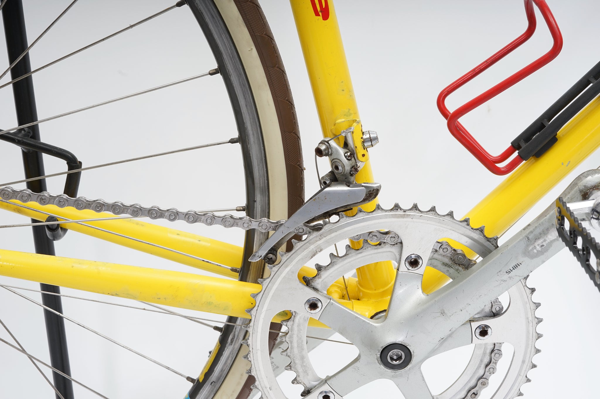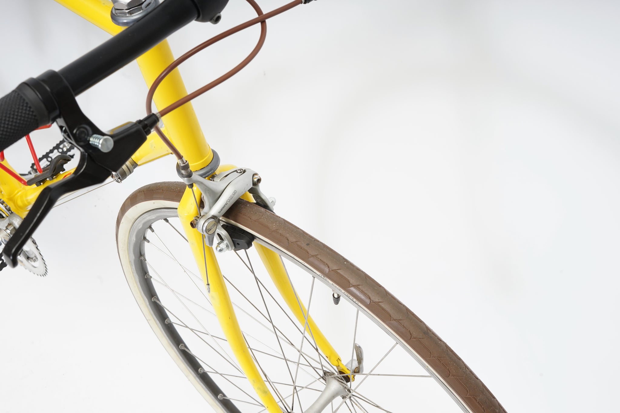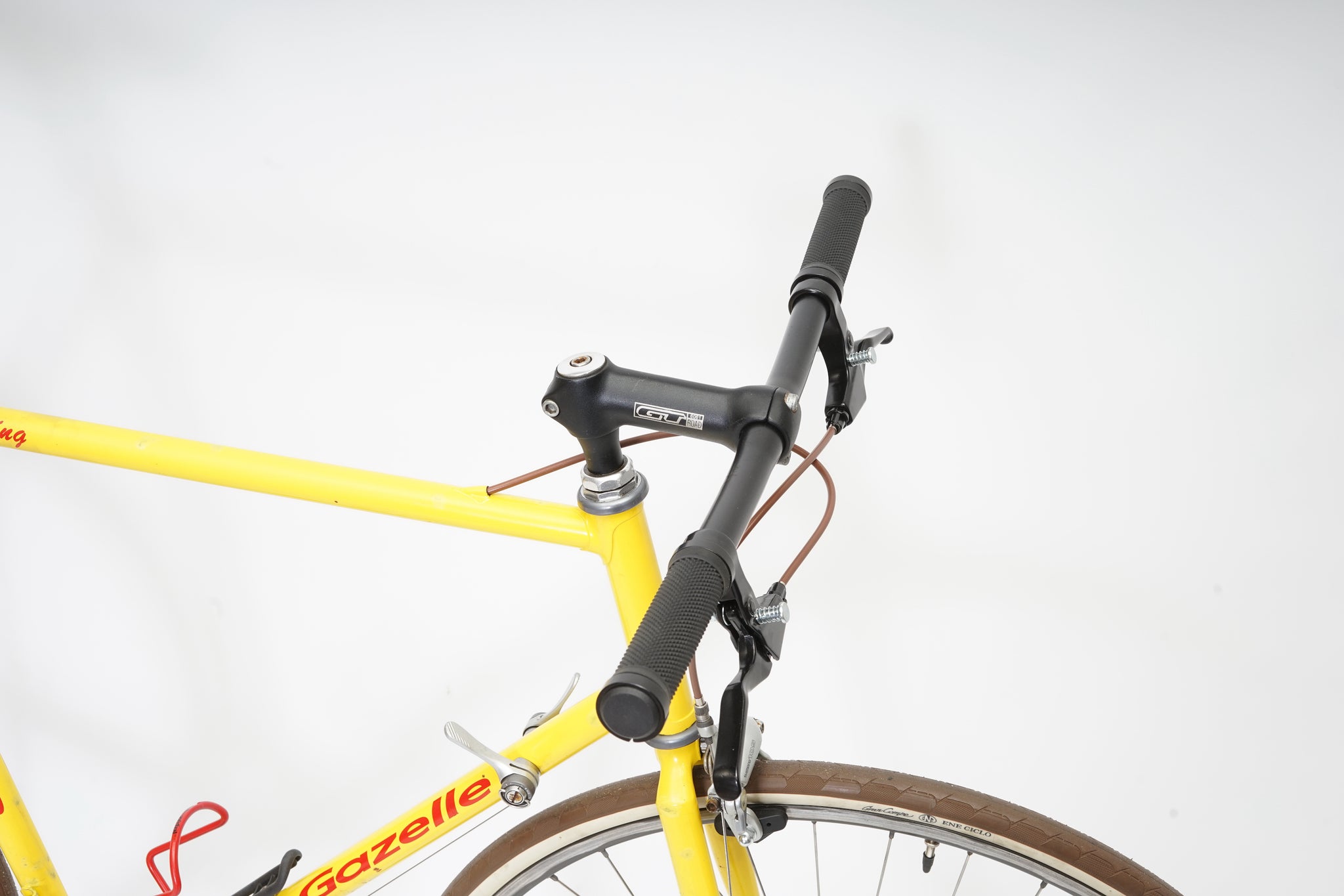 This Gazelle city racer is great for putting in some miles while enjoying the vintage style. It is equipped with a 14-speed Shimano 105 gear-group and an original wheelset containing Shimano hubs and Mavic rims. All mechanical gear parts are original and in great condition. A lightweight, super fast, piece of history.