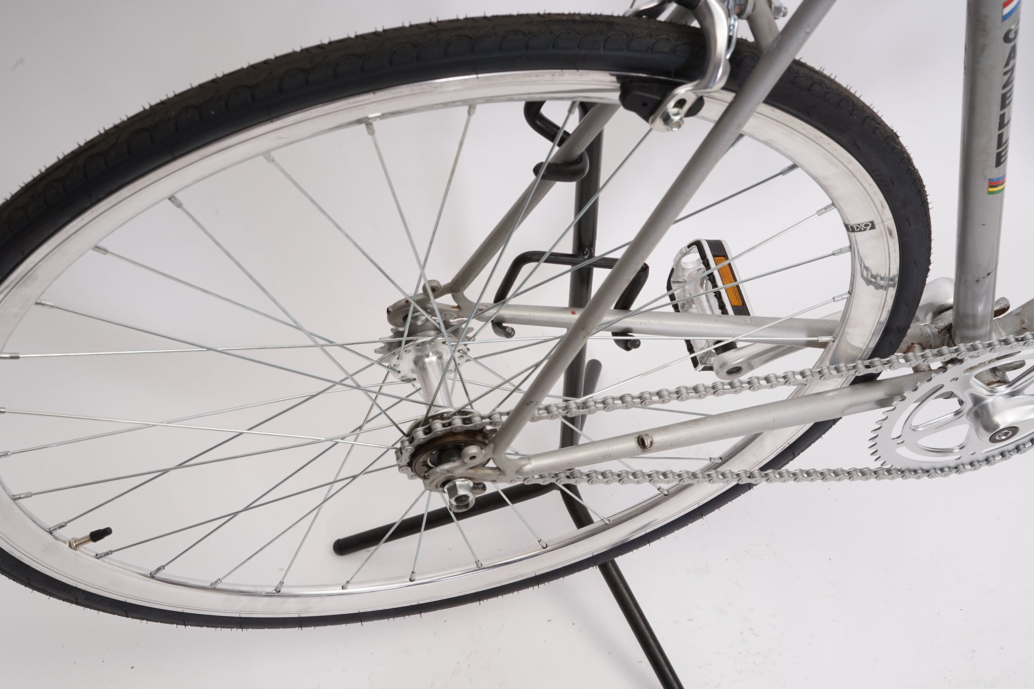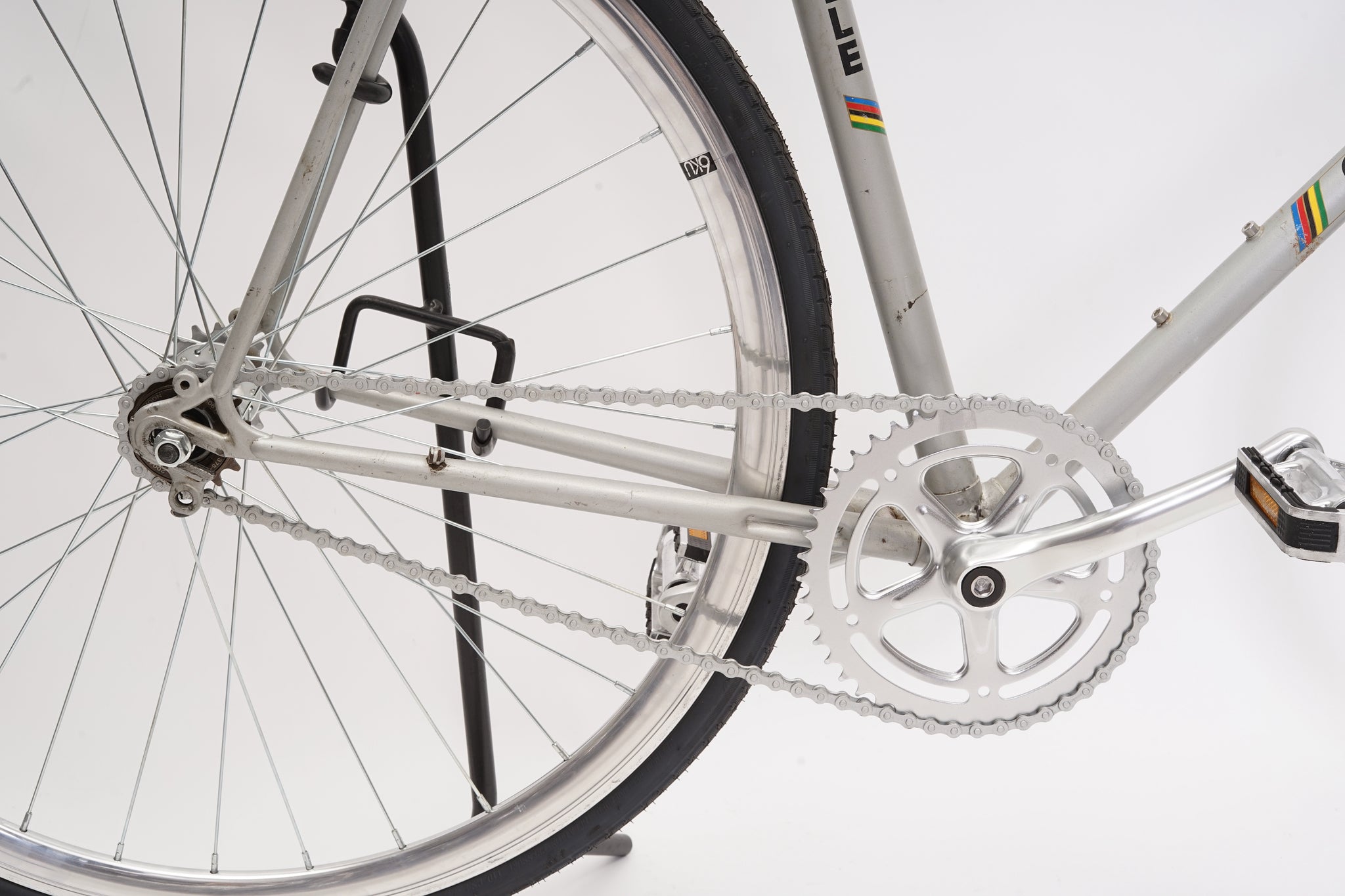 Single-speed bike based on a Gazelle Tour de l'Avenir frame. The 6KU wheelset and Shimano anti-corrosion chain make it ideal for day-to-day usage. Very low in maintenance since all mechanical parts have been replaced.