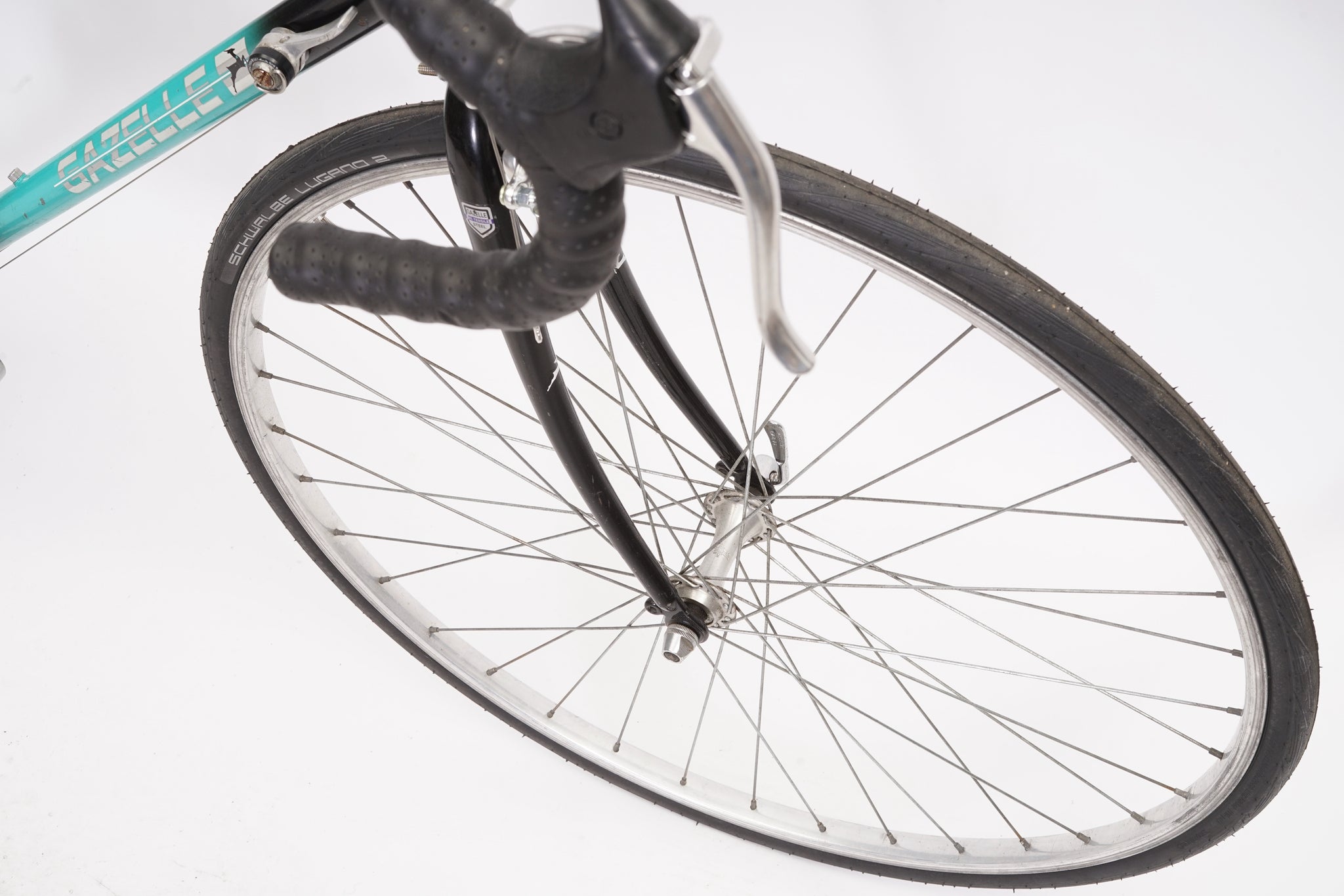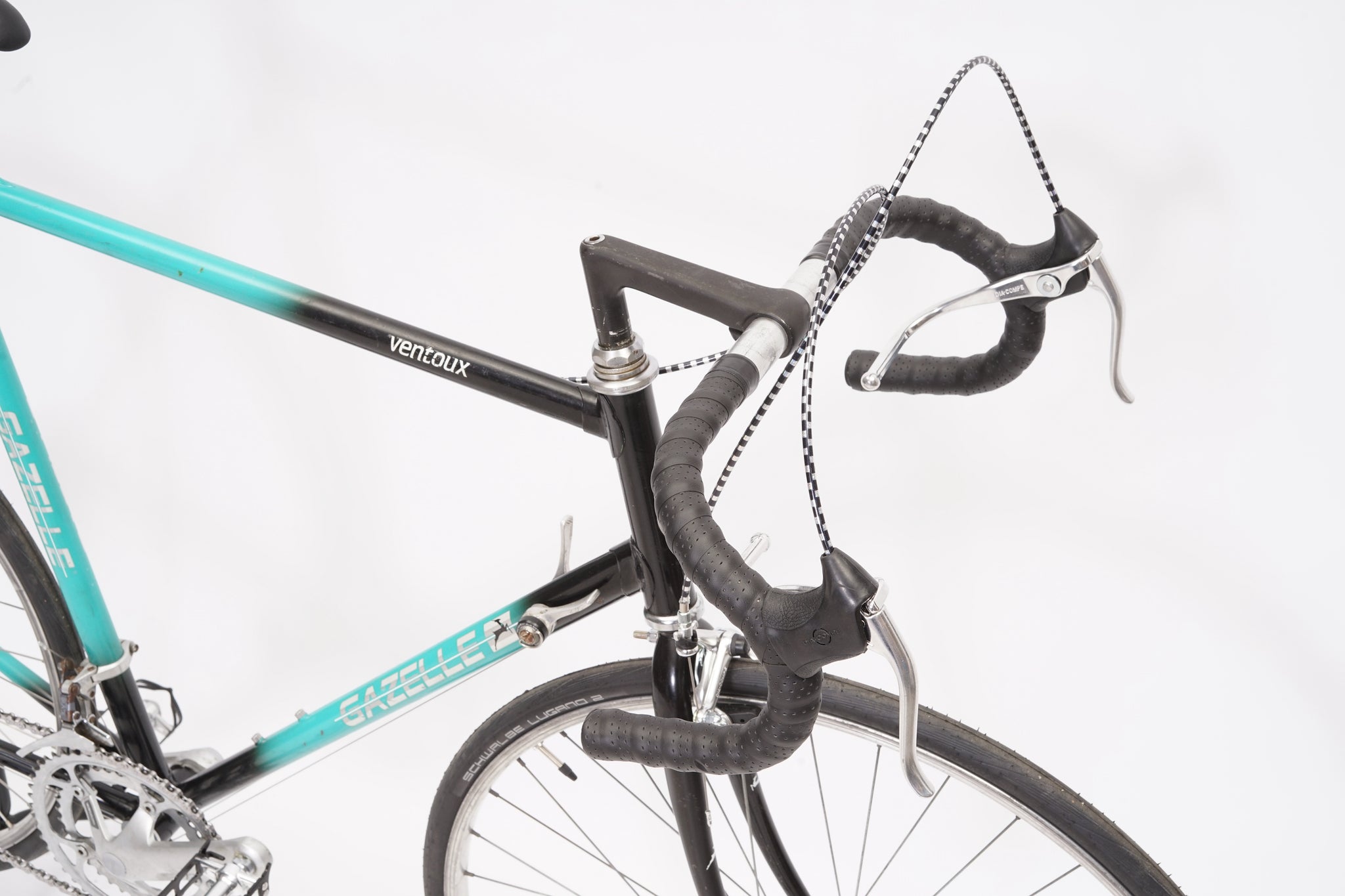 This Gazelle Ventoux racer is great for putting in some miles while enjoying the vintage style. It is equipped with a 14-speed SunTour gear-group and an original wheelset containing Alesa rims. All mechanical gear parts are original and in great condition. A lightweight, super fast, piece of history.
