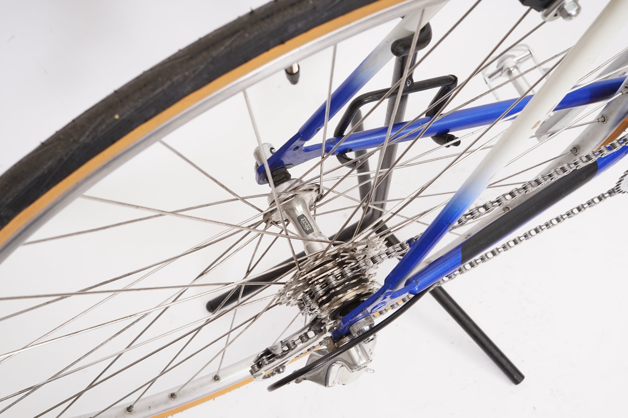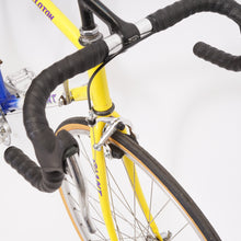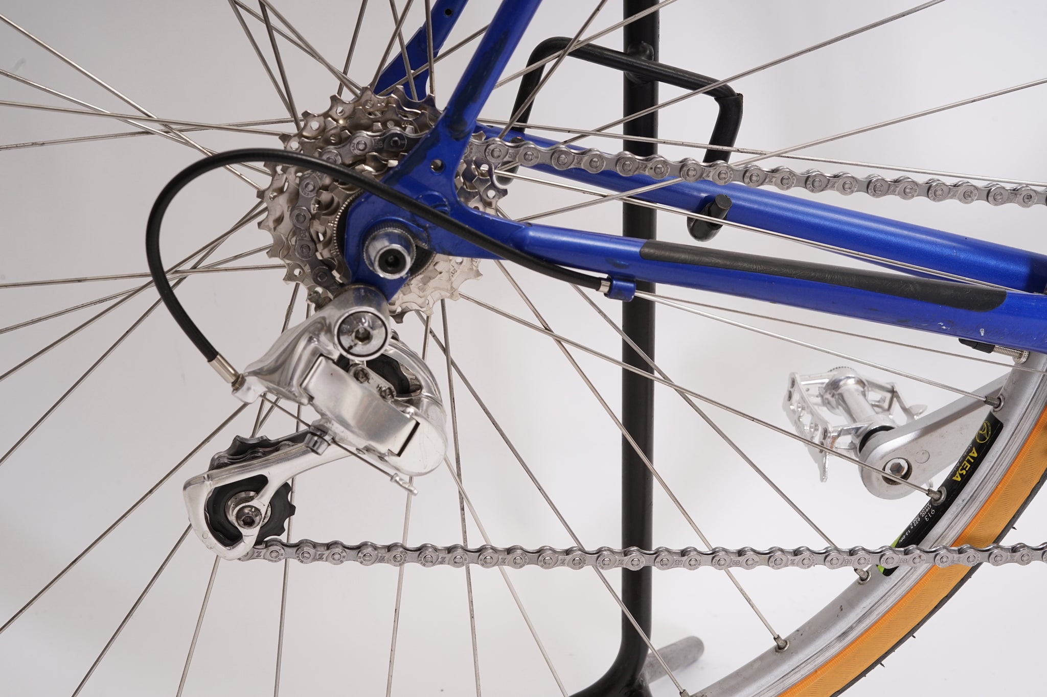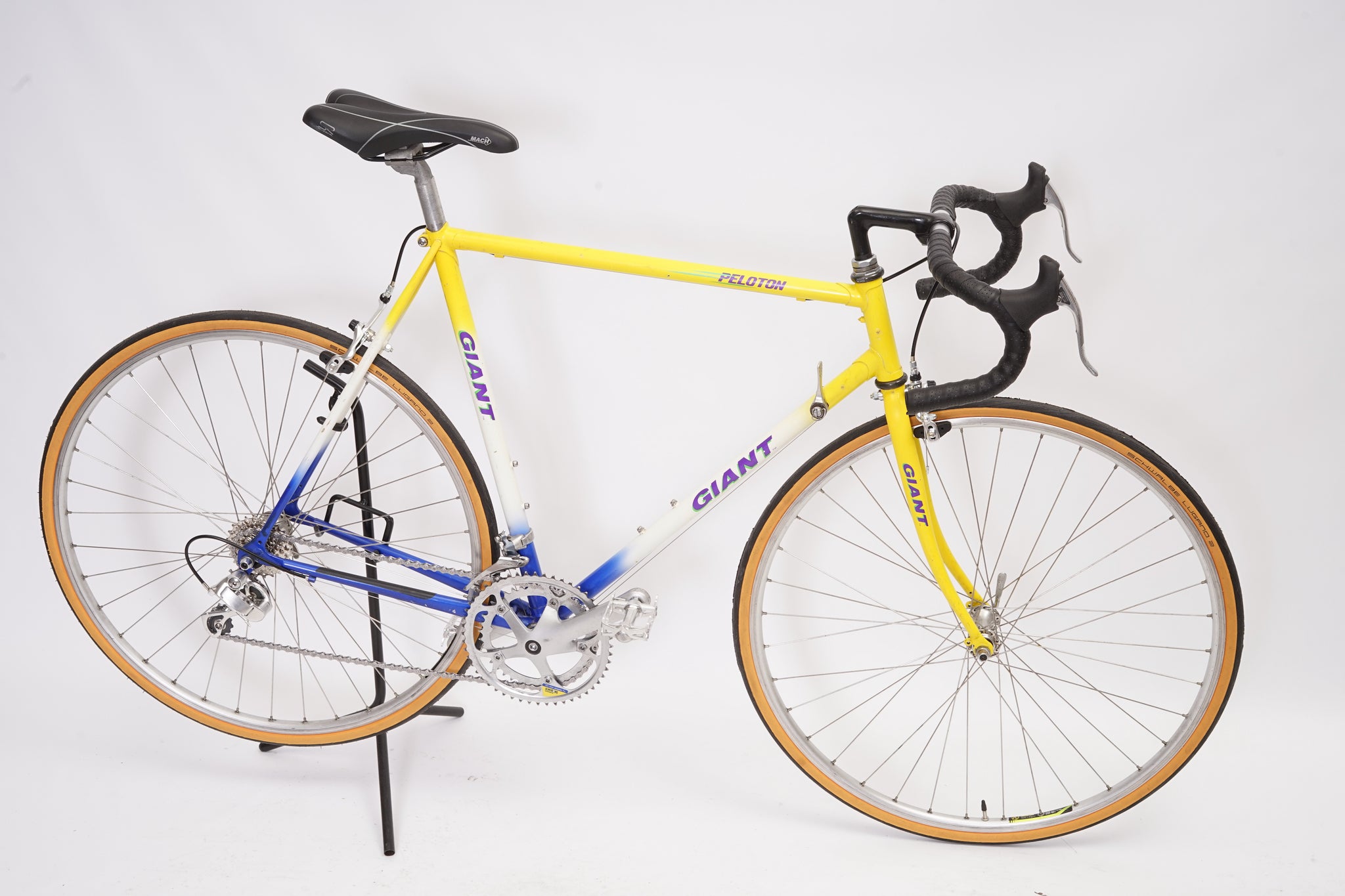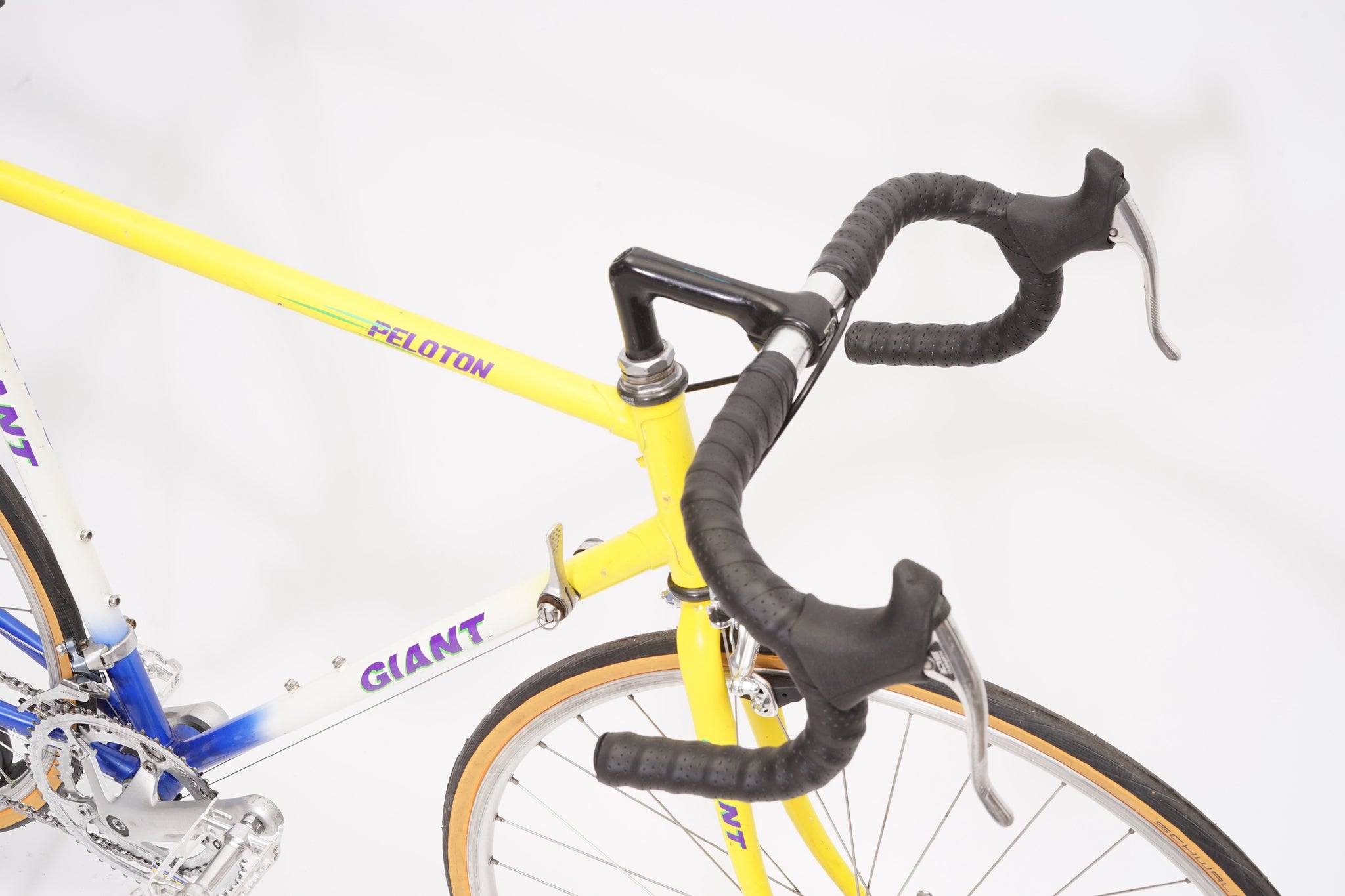 This Giant Peloton racer is great for putting in some miles while enjoying the vintage style. It is equipped with a 14-speed Shimano gear-group and an original wheelset containing Mavic hubs and Alesa rims. All mechanical gear parts are original and in great condition. A lightweight, super fast, piece of history.