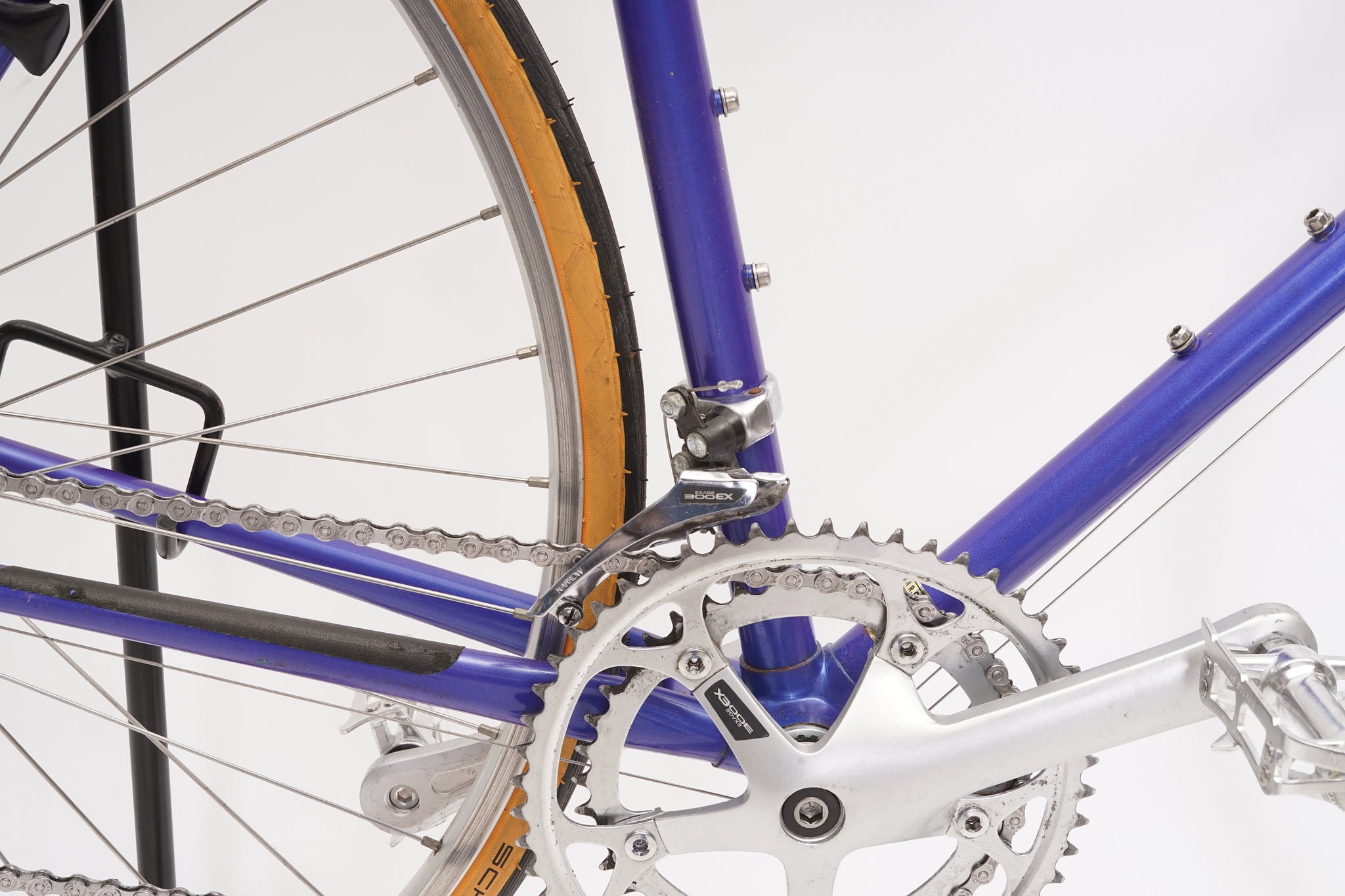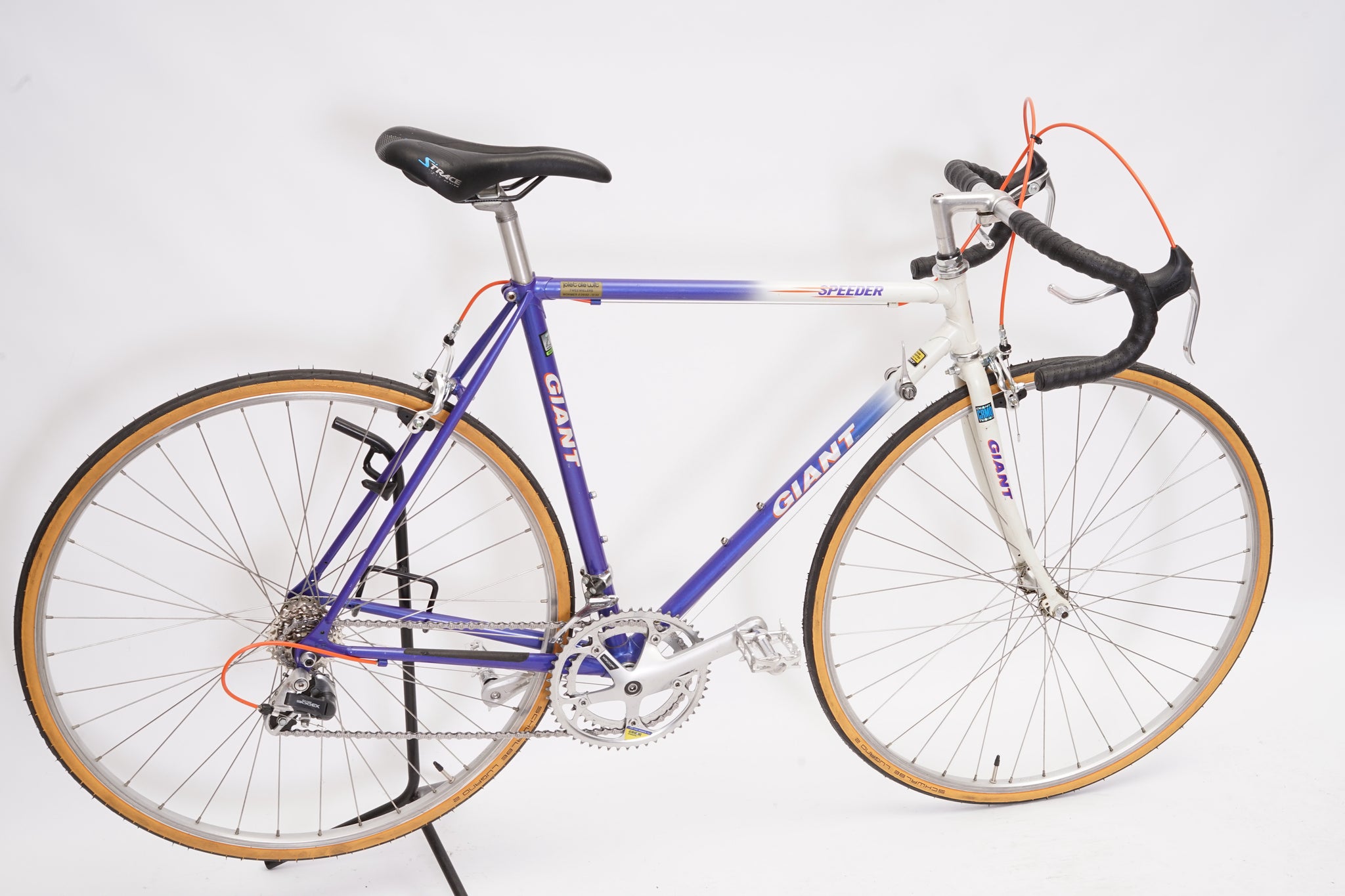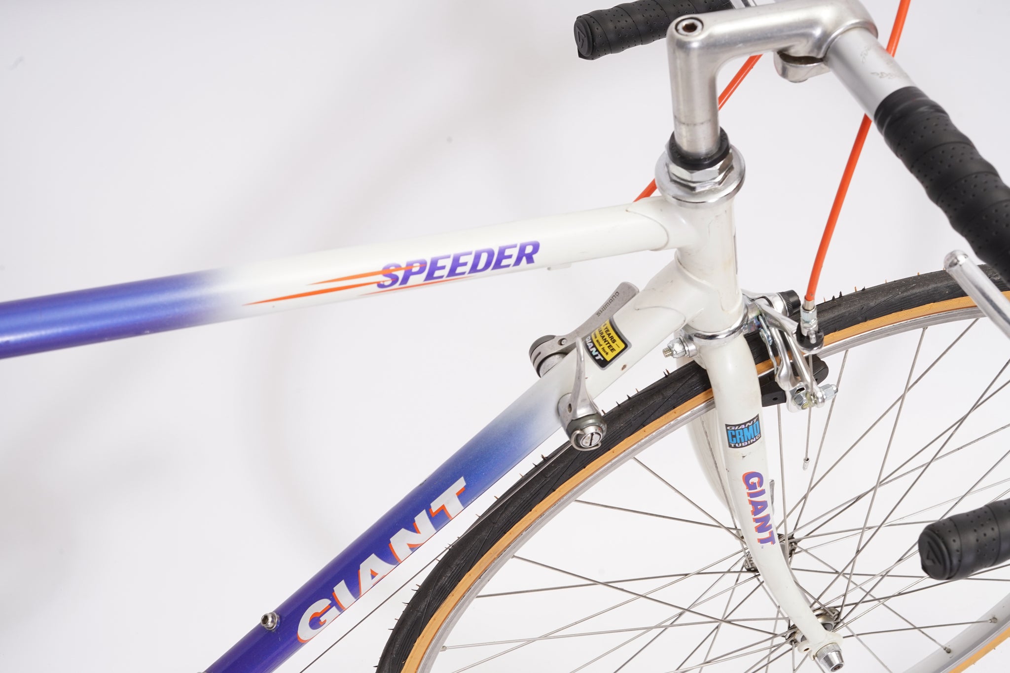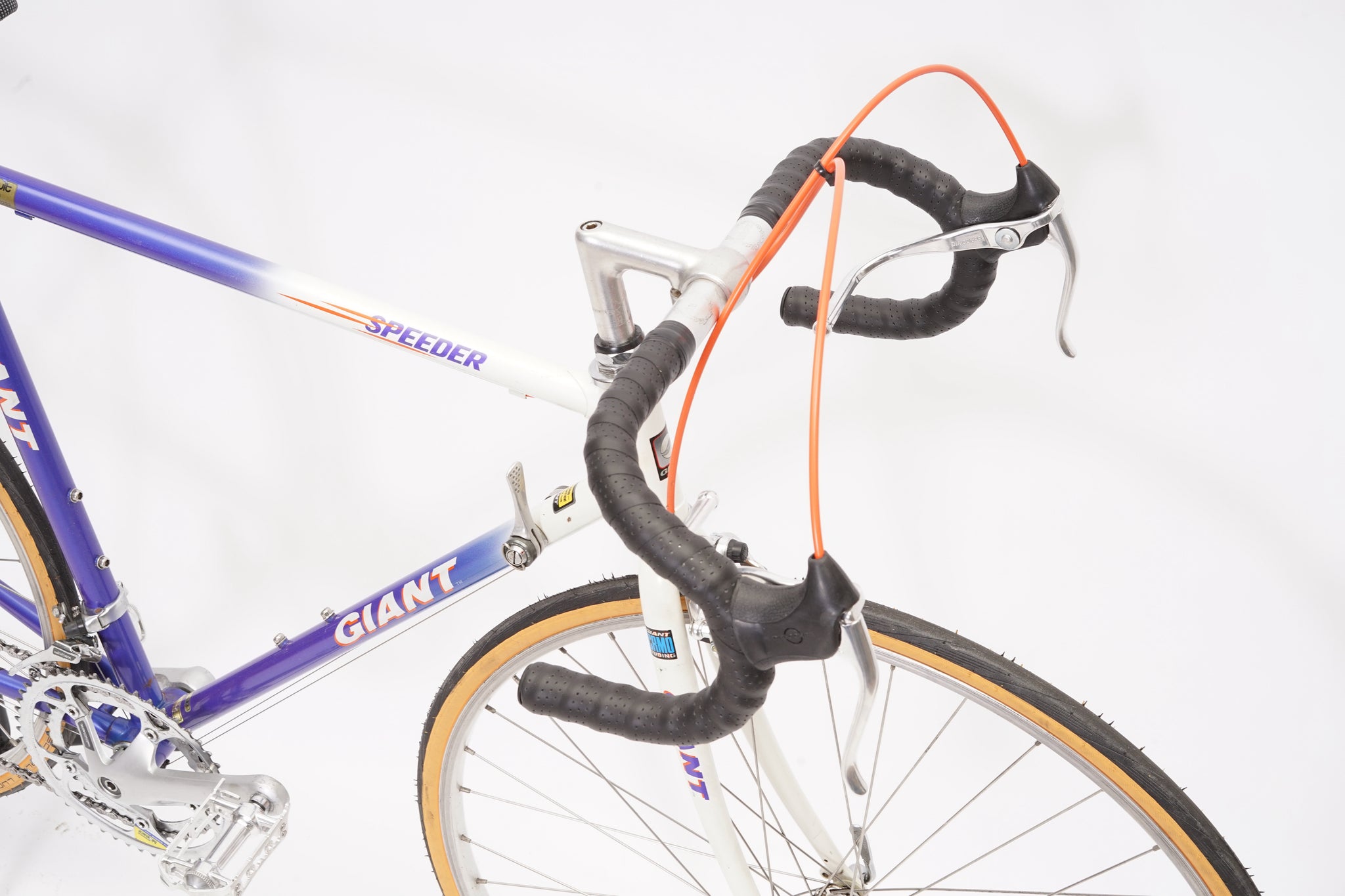 This Giant racer is great for putting in some miles while enjoying the vintage style. It is equipped with a 14-speed Shimano Exage gear-group and an original wheelset containing Araya rims and Shimano hubs. All mechanical parts are in great condition. A lightweight, super fast, piece of history.