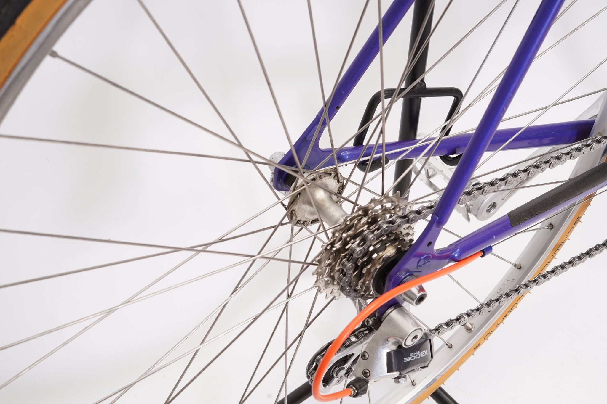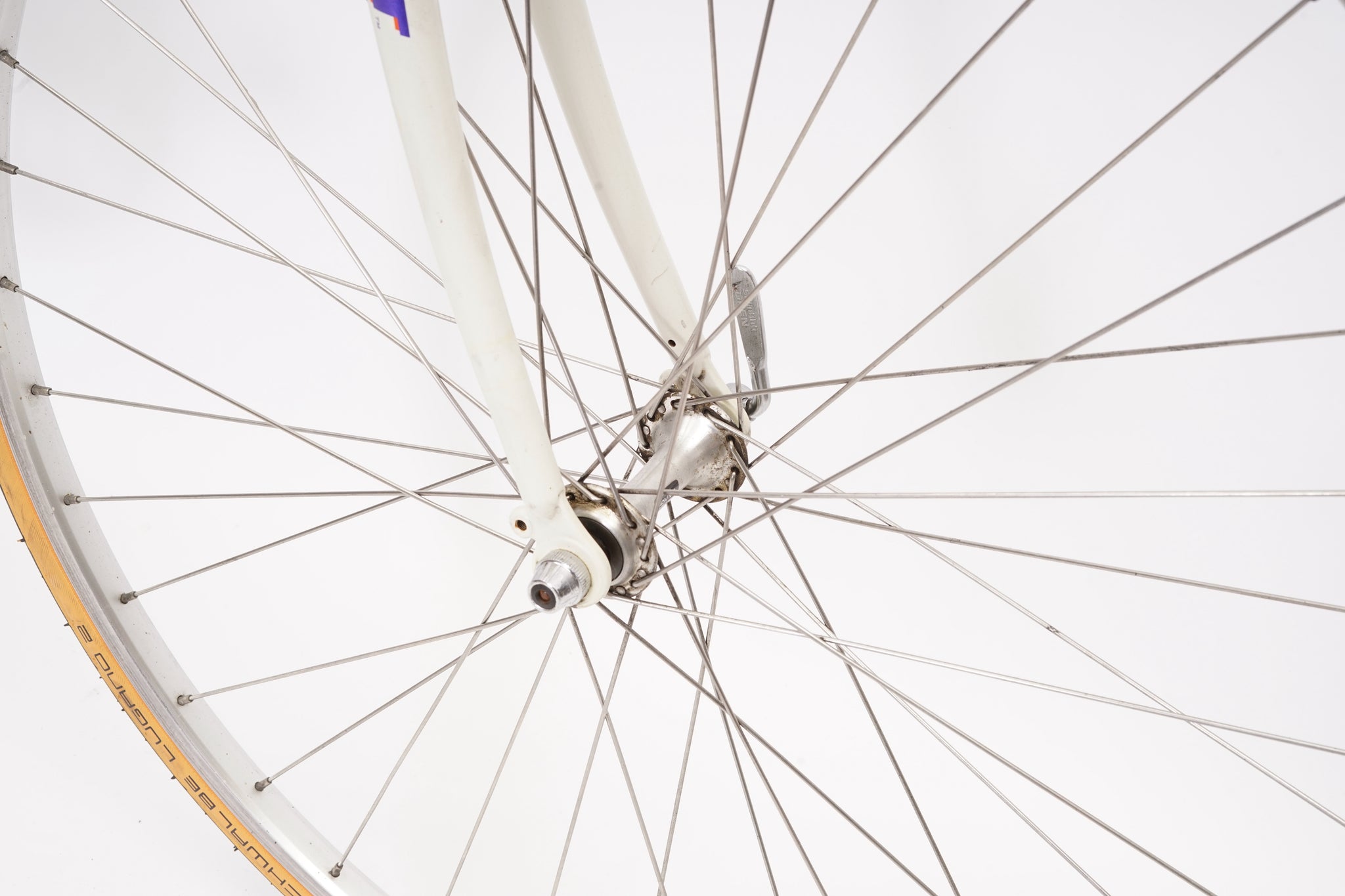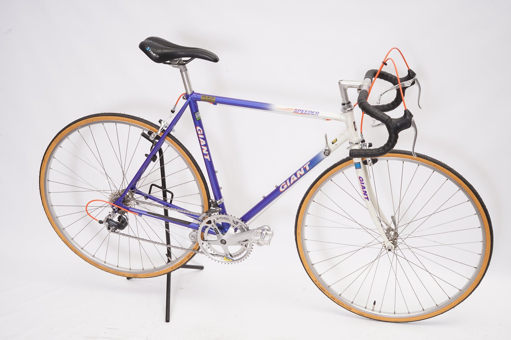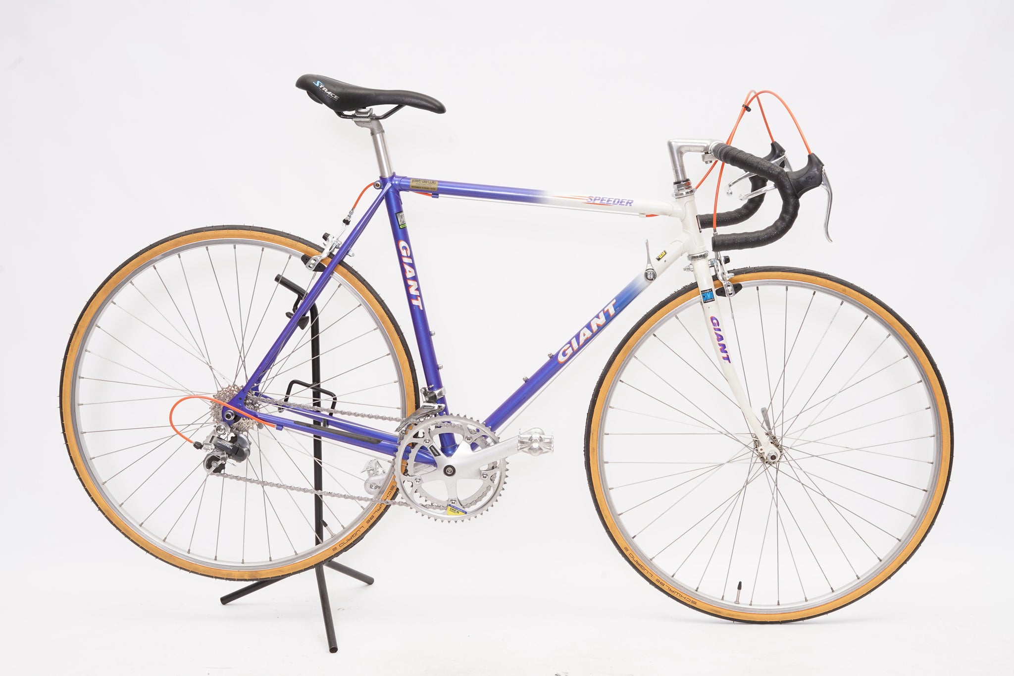 This Giant racer is great for putting in some miles while enjoying the vintage style. It is equipped with a 14-speed Shimano Exage gear-group and an original wheelset containing Araya rims and Shimano hubs. All mechanical parts are in great condition. A lightweight, super fast, piece of history.