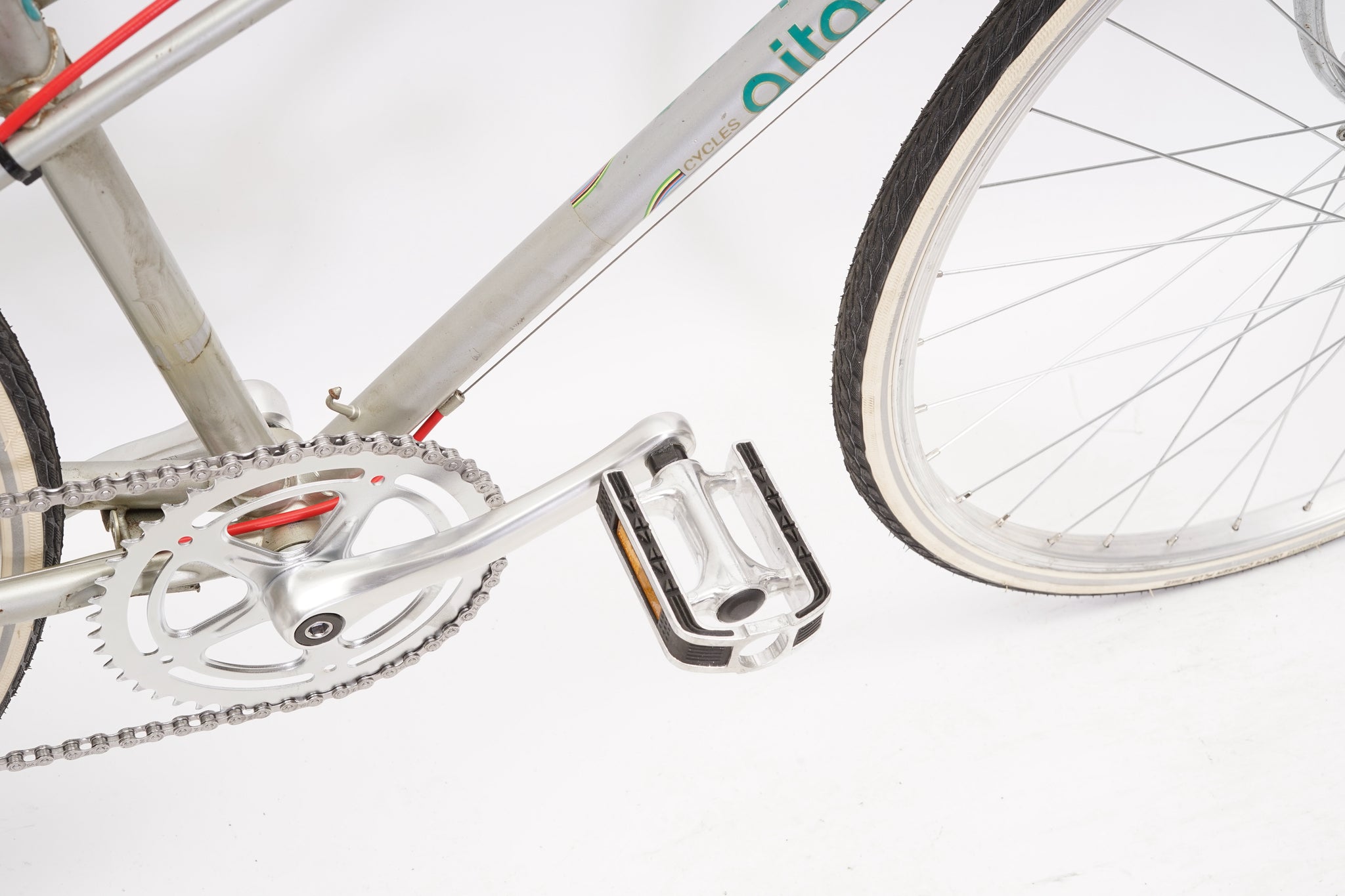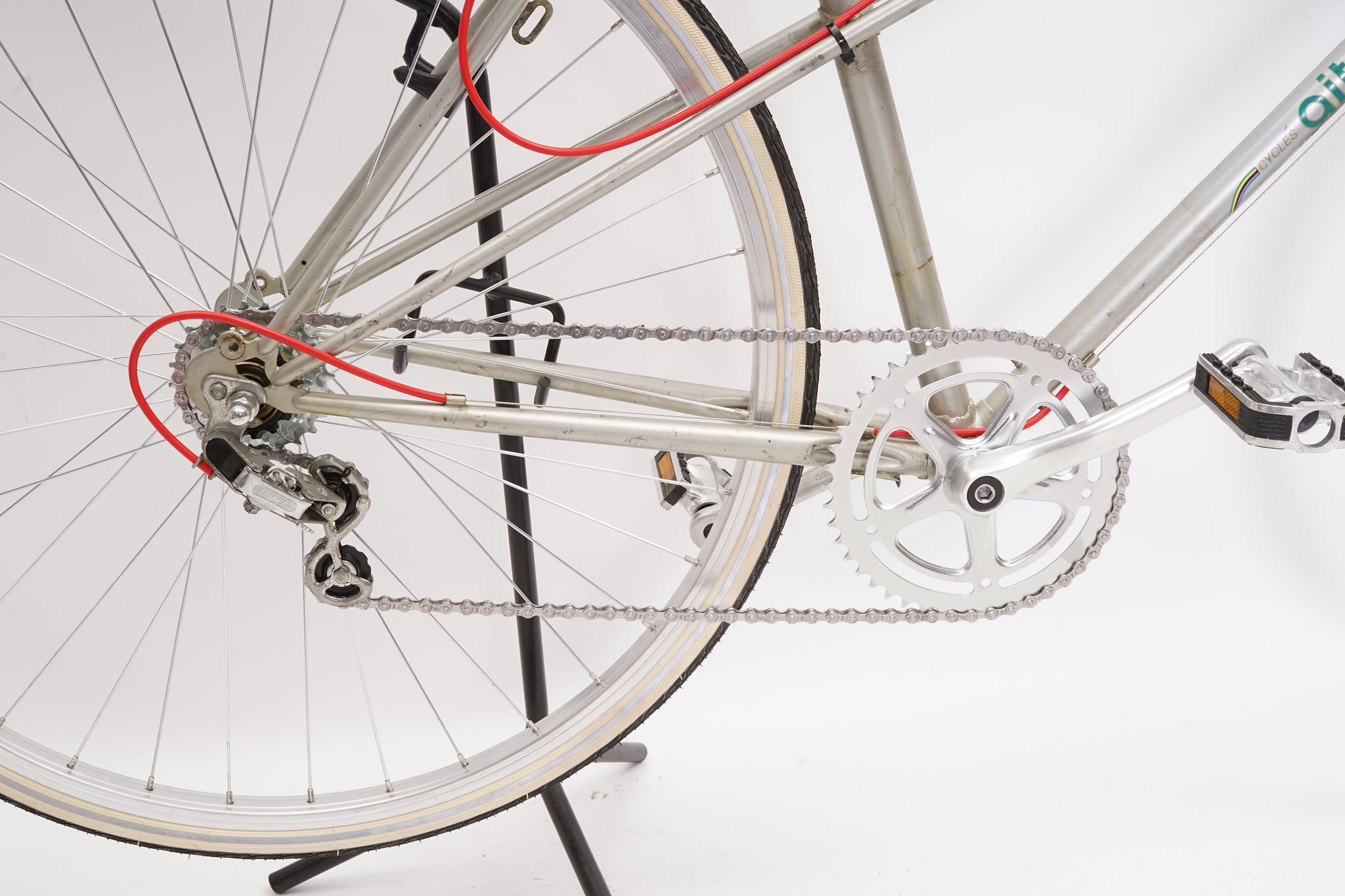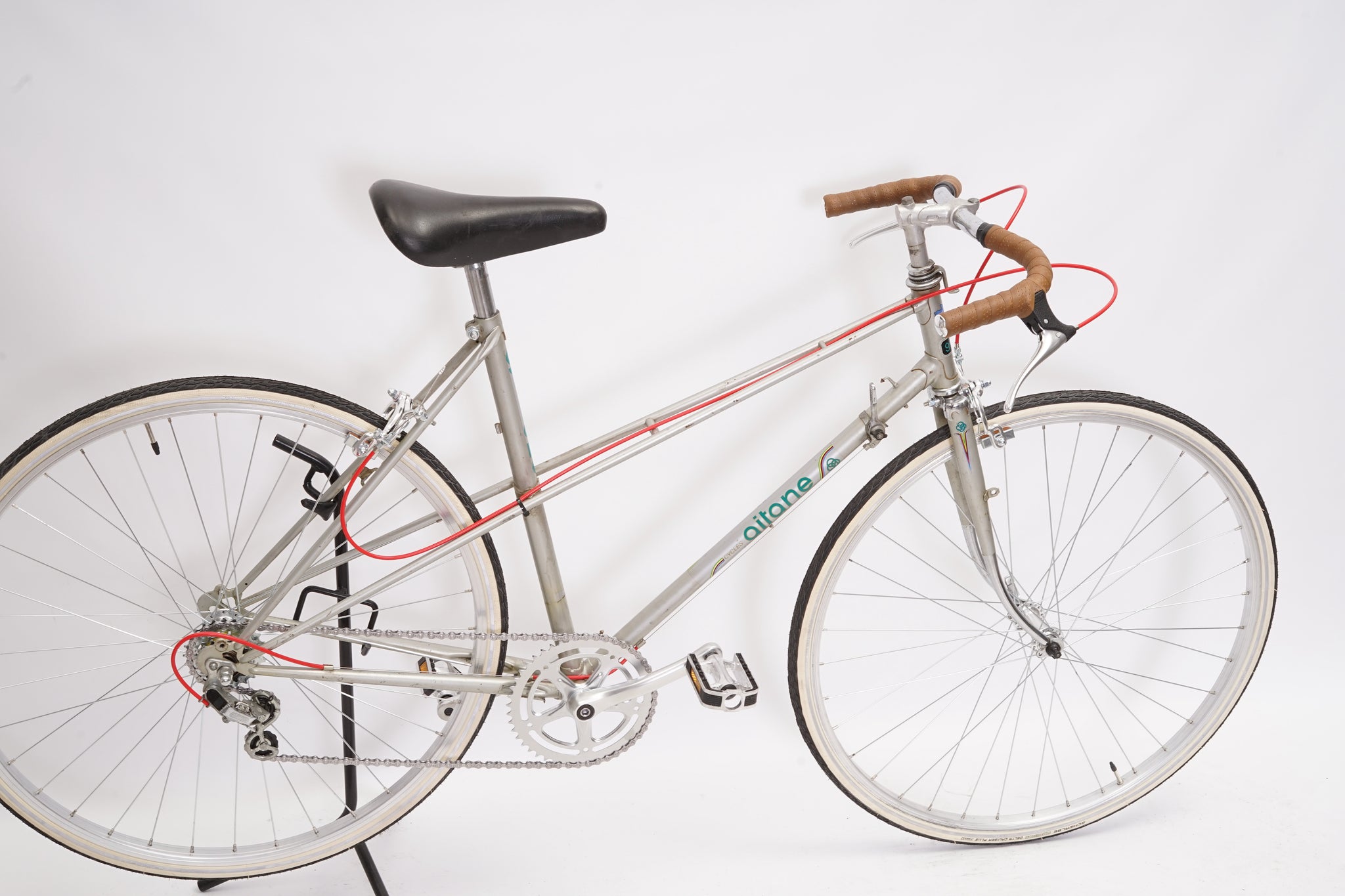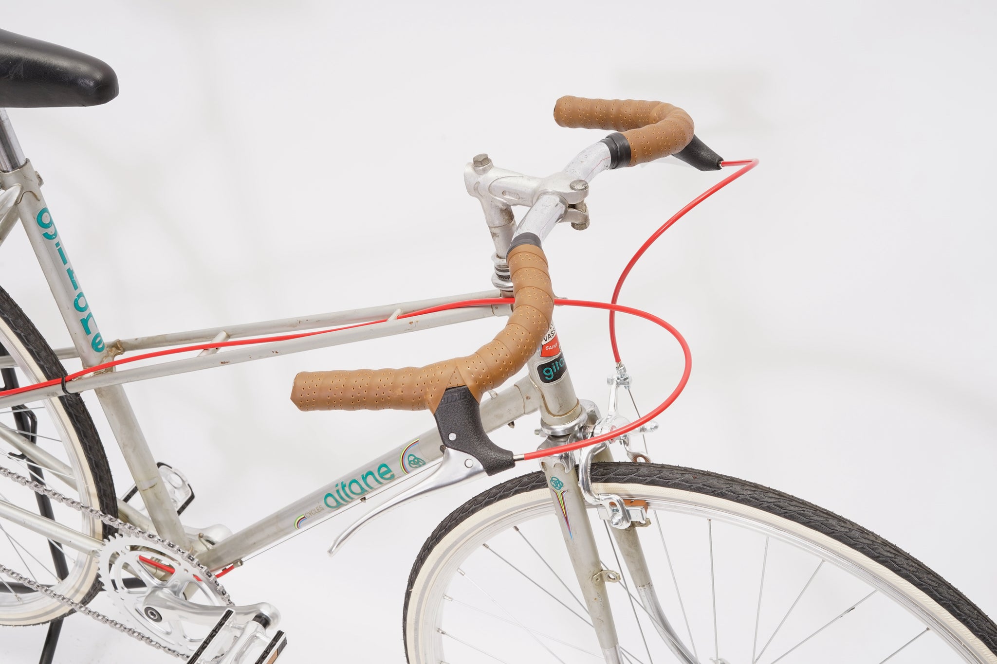 This high quality yet elegant Gitane mixte with gears dates back to the early 1980s. The convenient low top tube and Schwalbe Delta Cruiser tires make this bike ideal for day-to-day usage. The bike is equipped with a quality Sachs Huret gear group with 5 gears in total. Low in maintenance since most mechanical parts have been replaced.