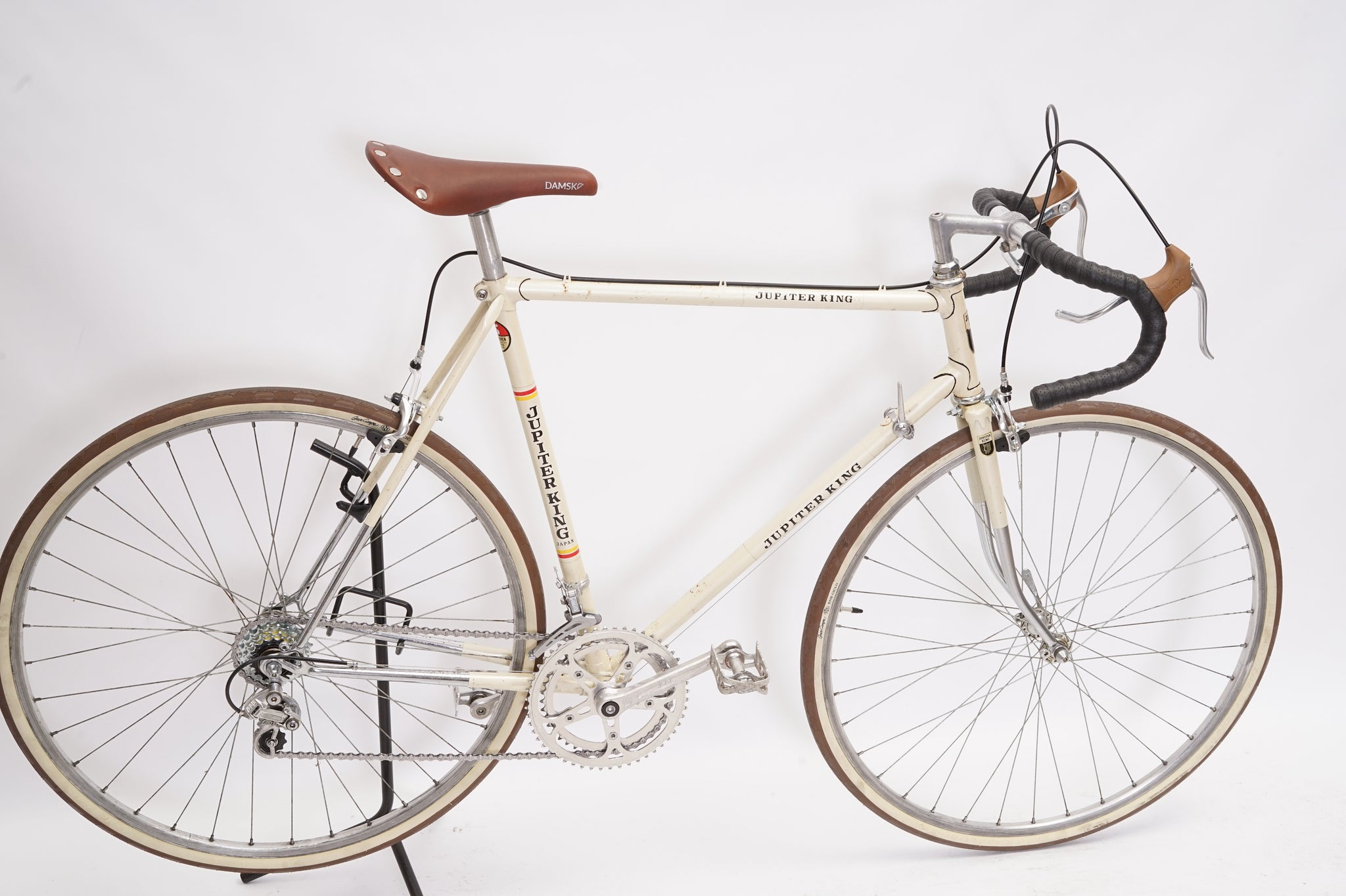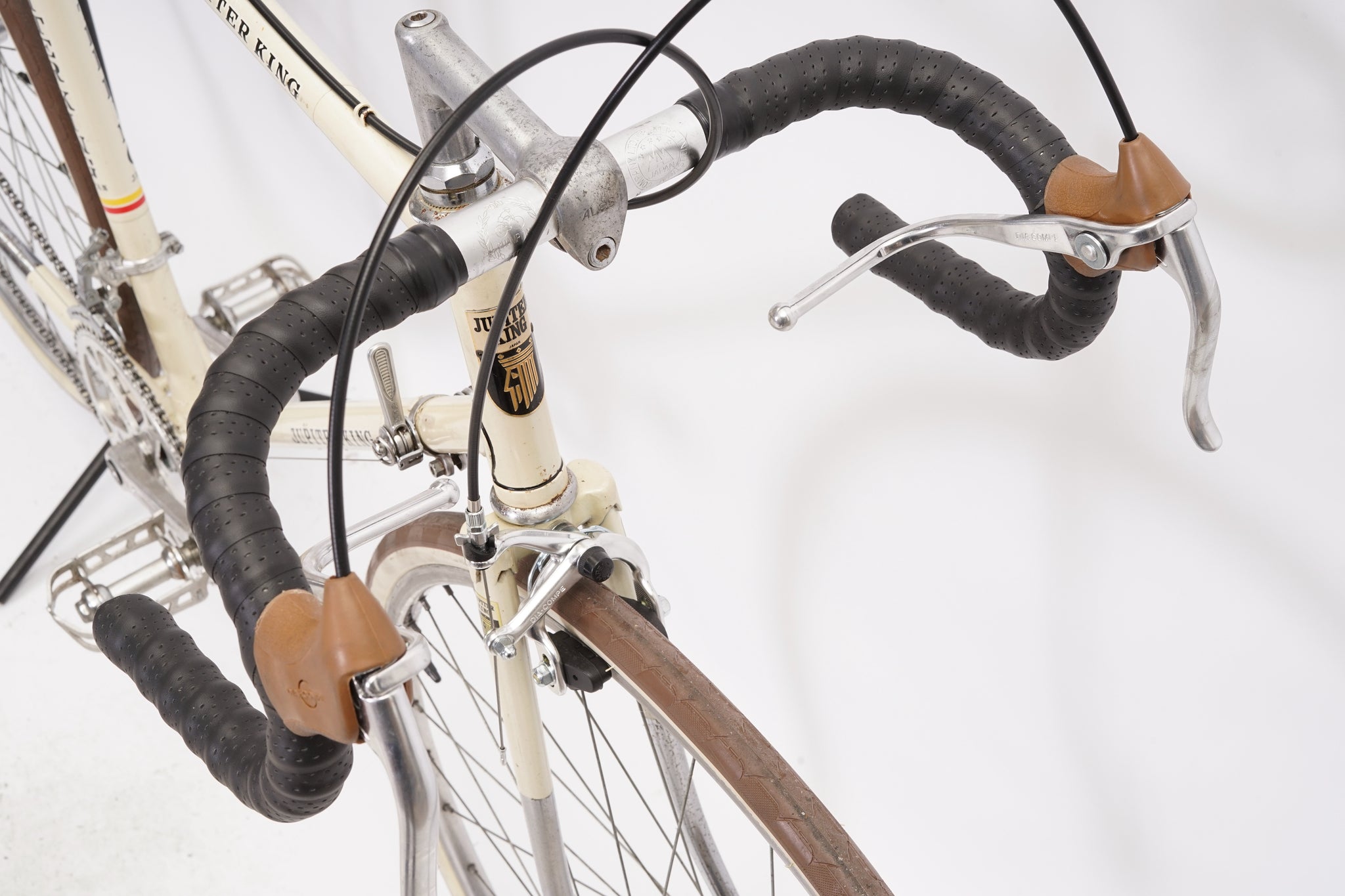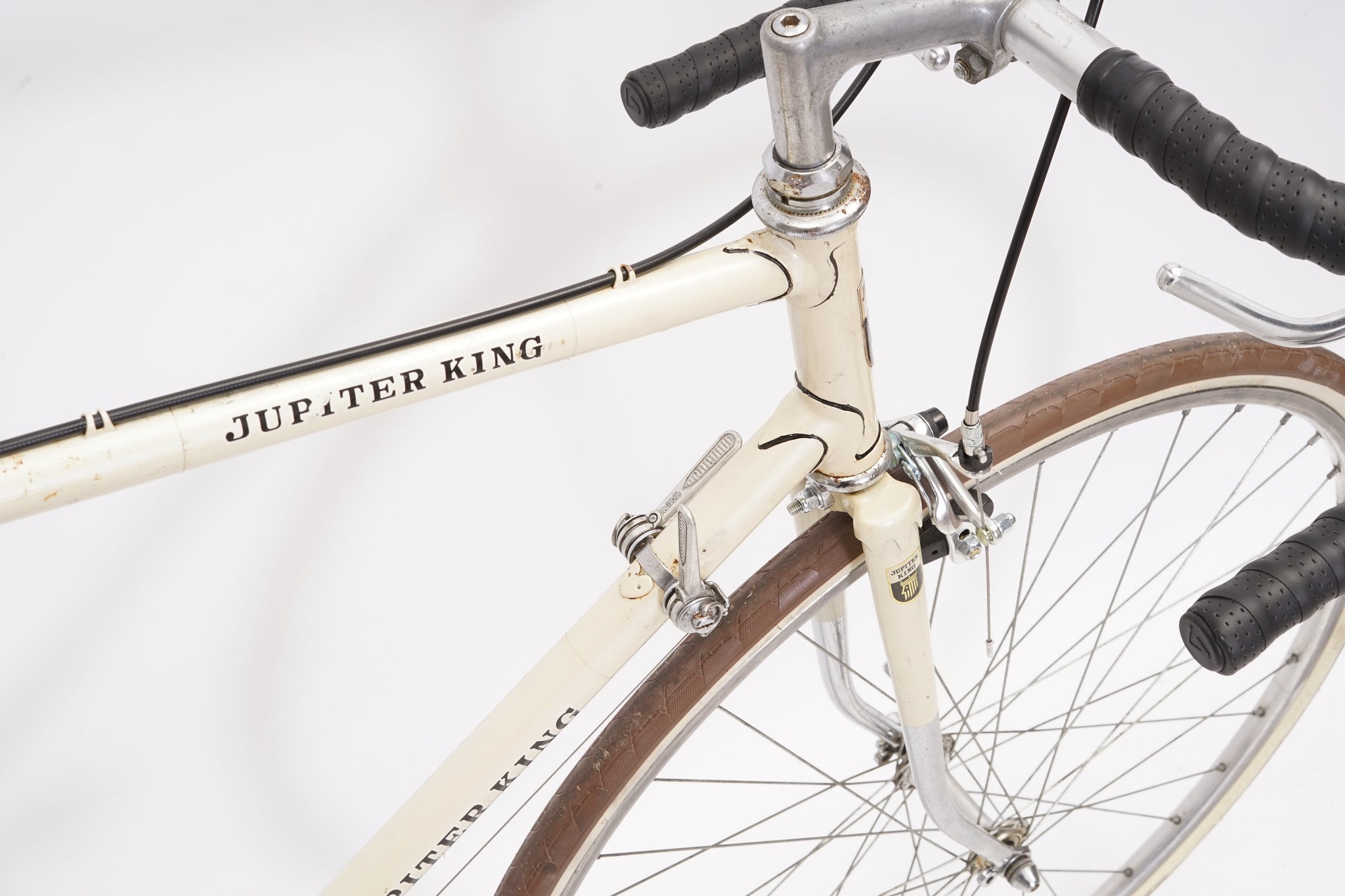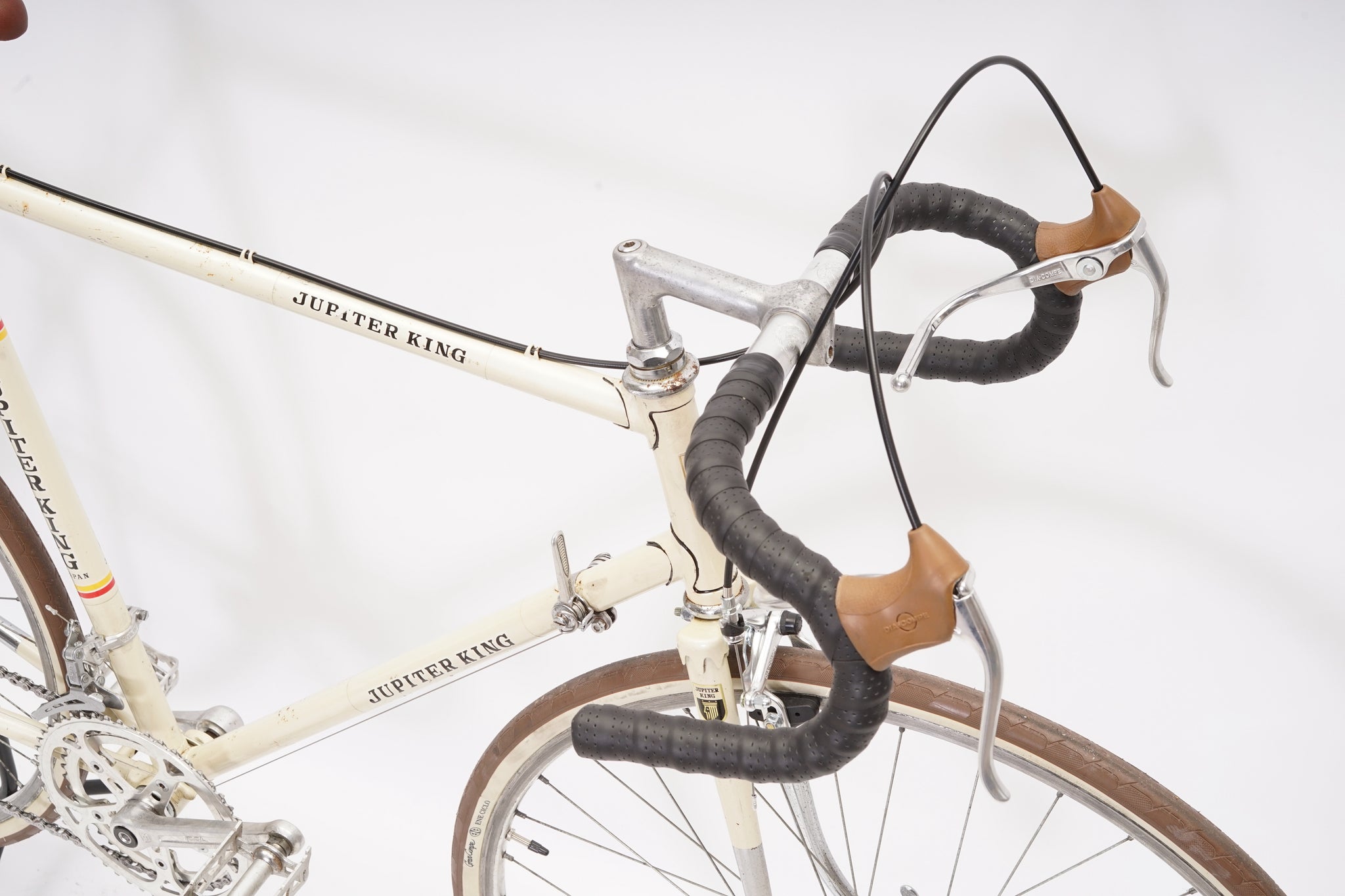 This Jupiter King racer is great for putting in some miles while enjoying the vintage style. It is equipped with a 12-speed Shimano gear-group and an original wheelset. All mechanical gear parts are original and in great condition. A lightweight, super fast, piece of history. Note: The frame has some spots, all of which have been treated by a coating to ensure its ready for the future.