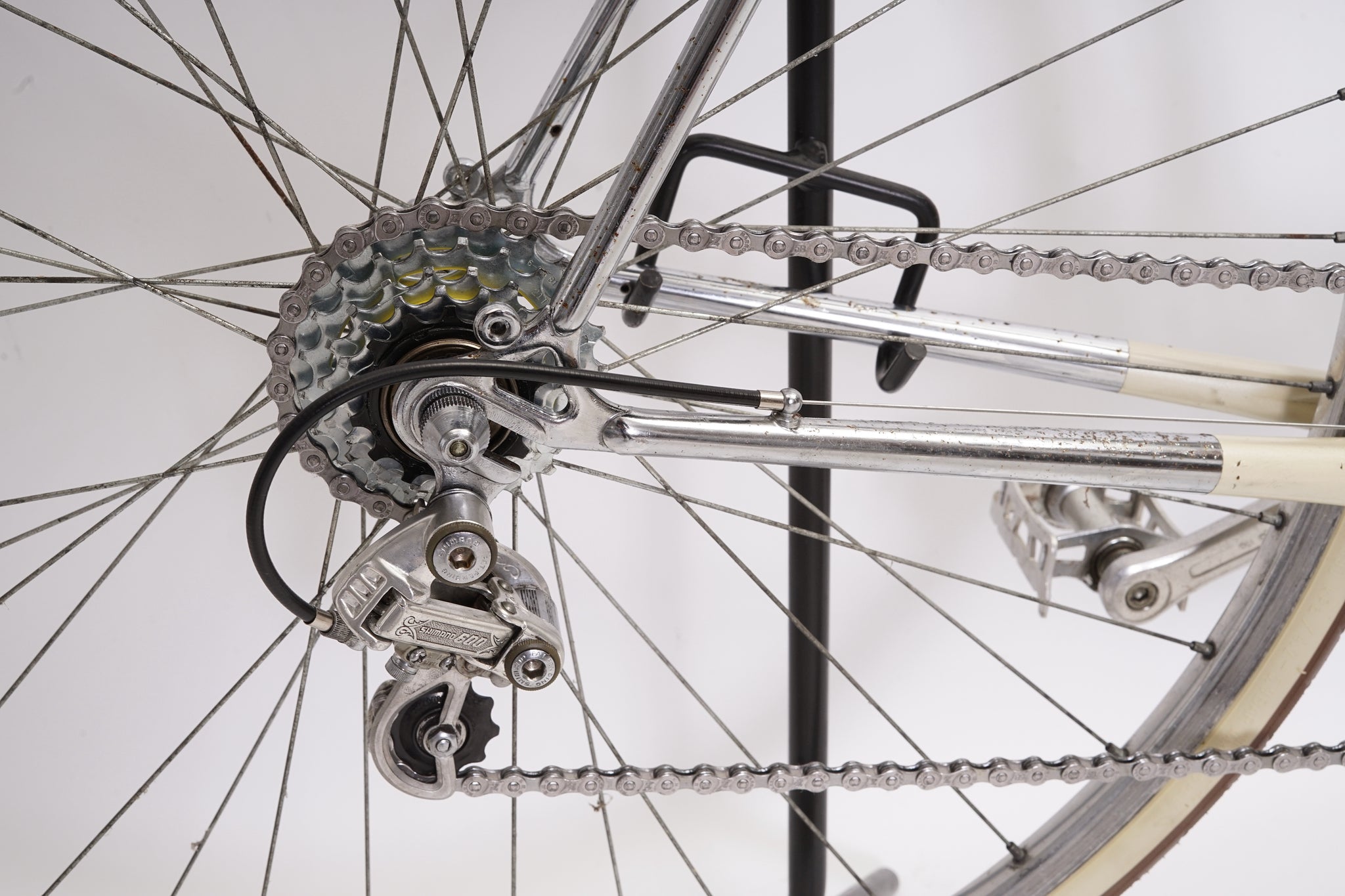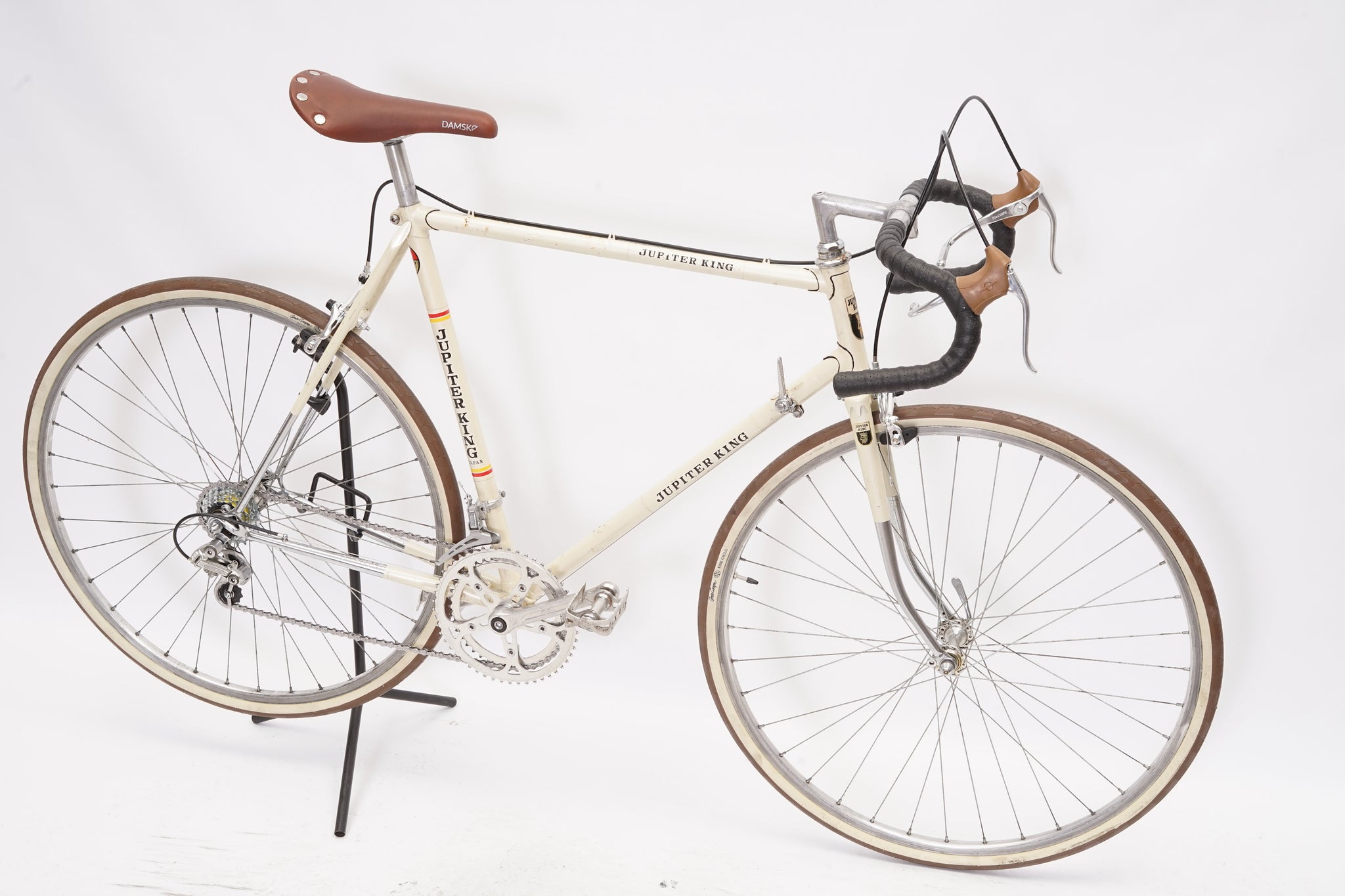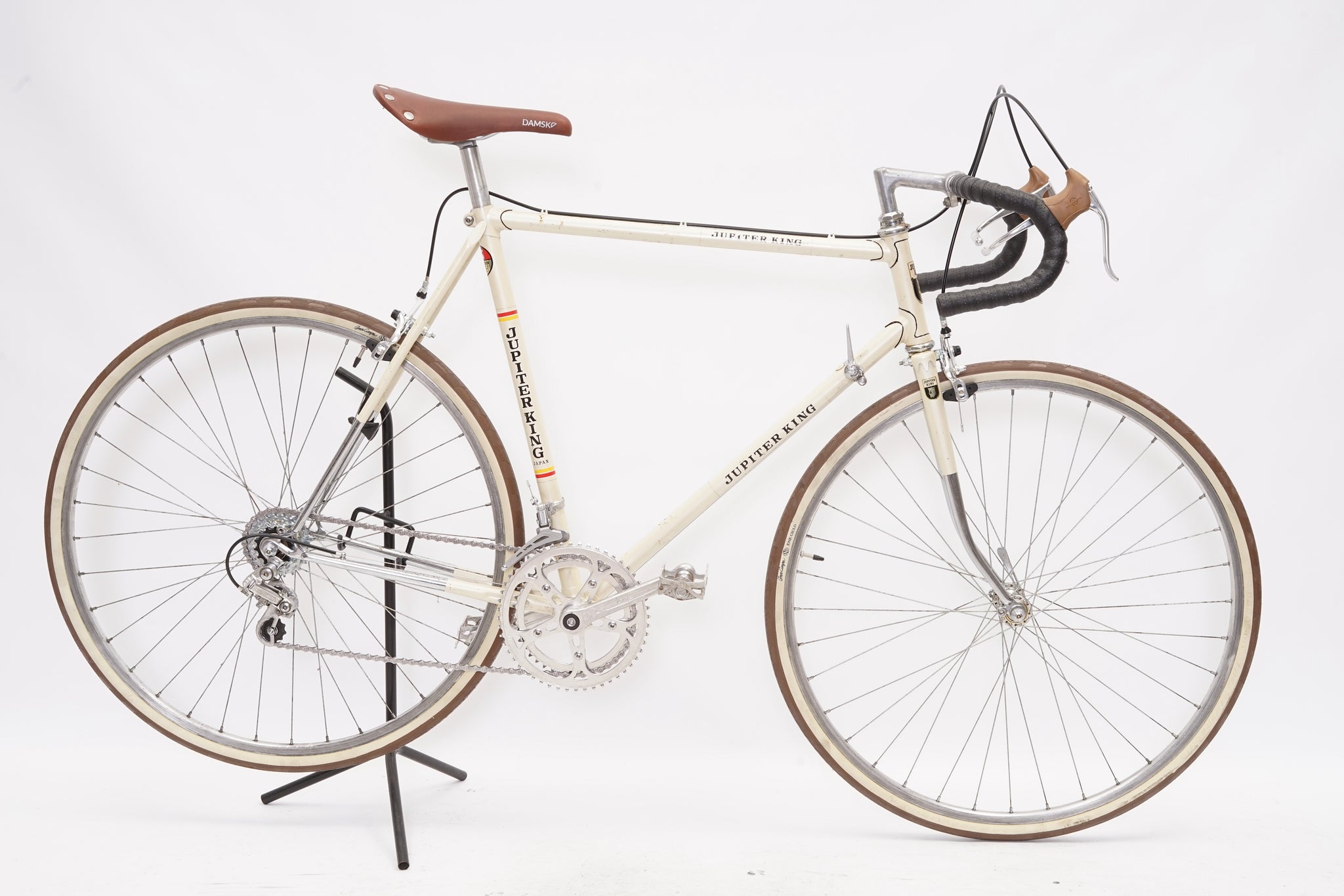 This Jupiter King racer is great for putting in some miles while enjoying the vintage style. It is equipped with a 12-speed Shimano gear-group and an original wheelset. All mechanical gear parts are original and in great condition. A lightweight, super fast, piece of history. Note: The frame has some spots, all of which have been treated by a coating to ensure its ready for the future.