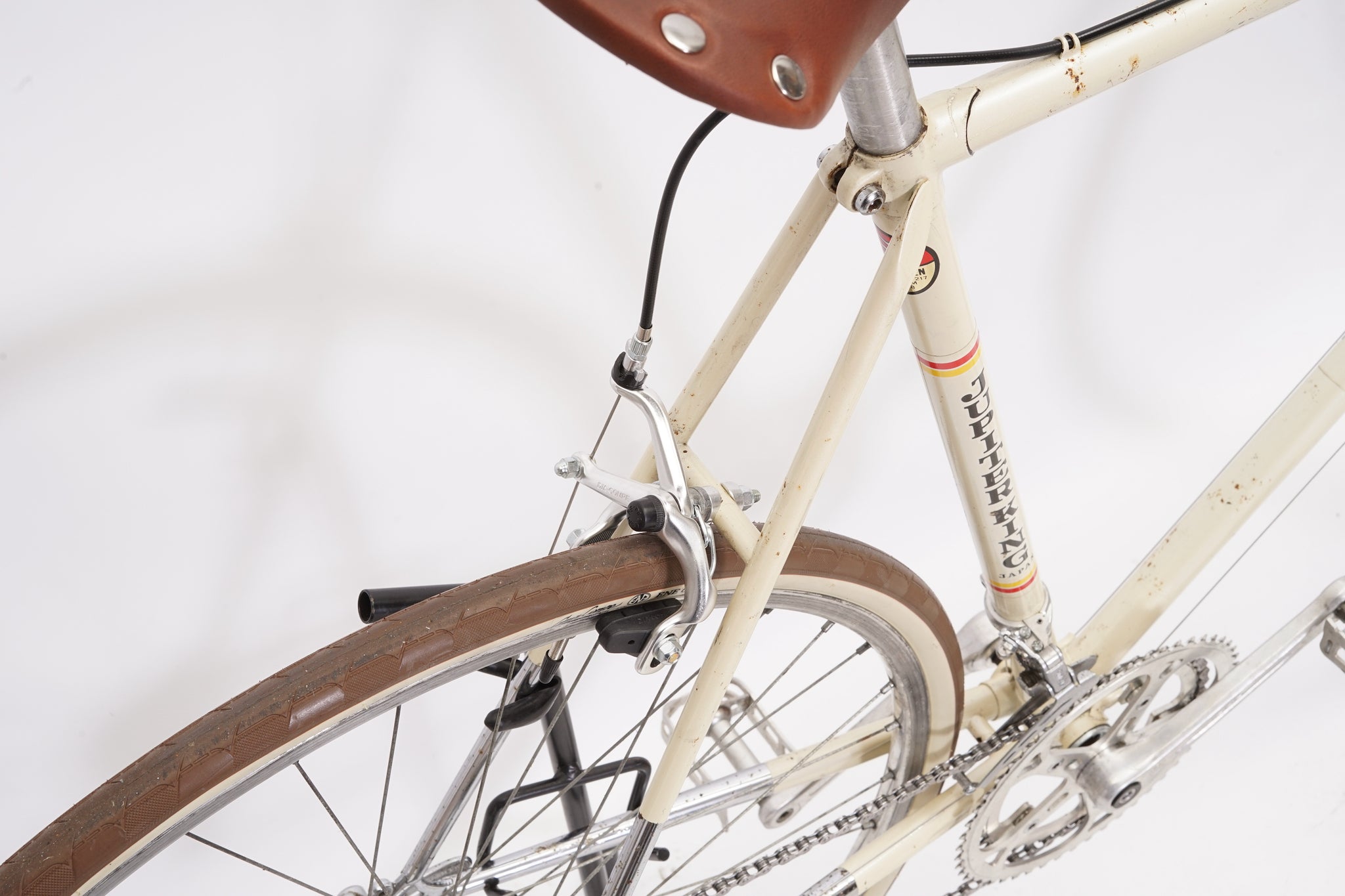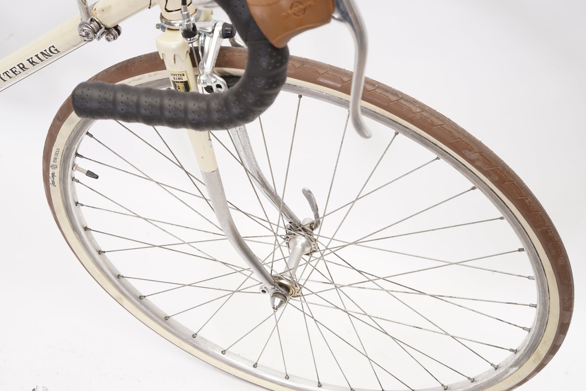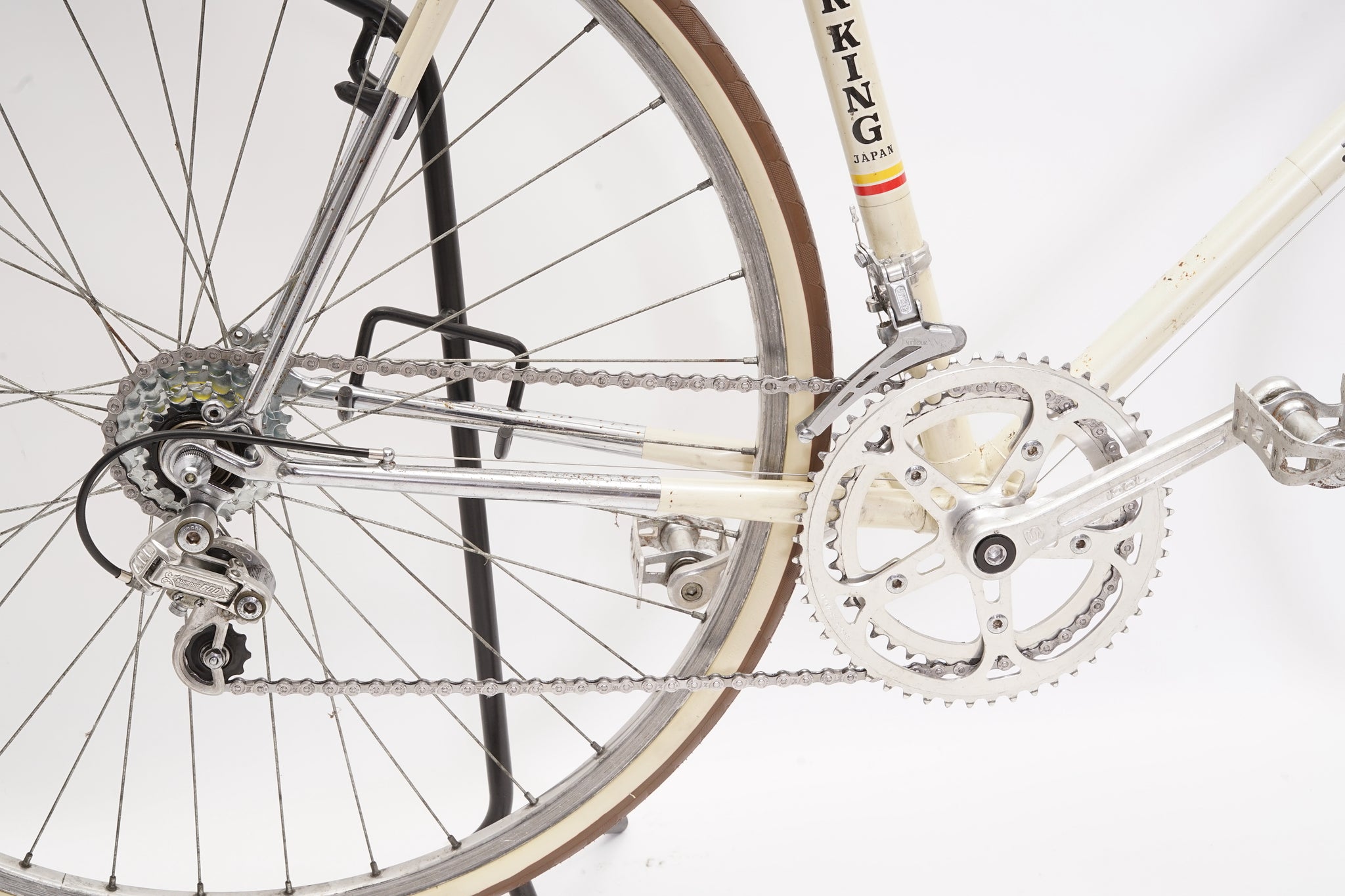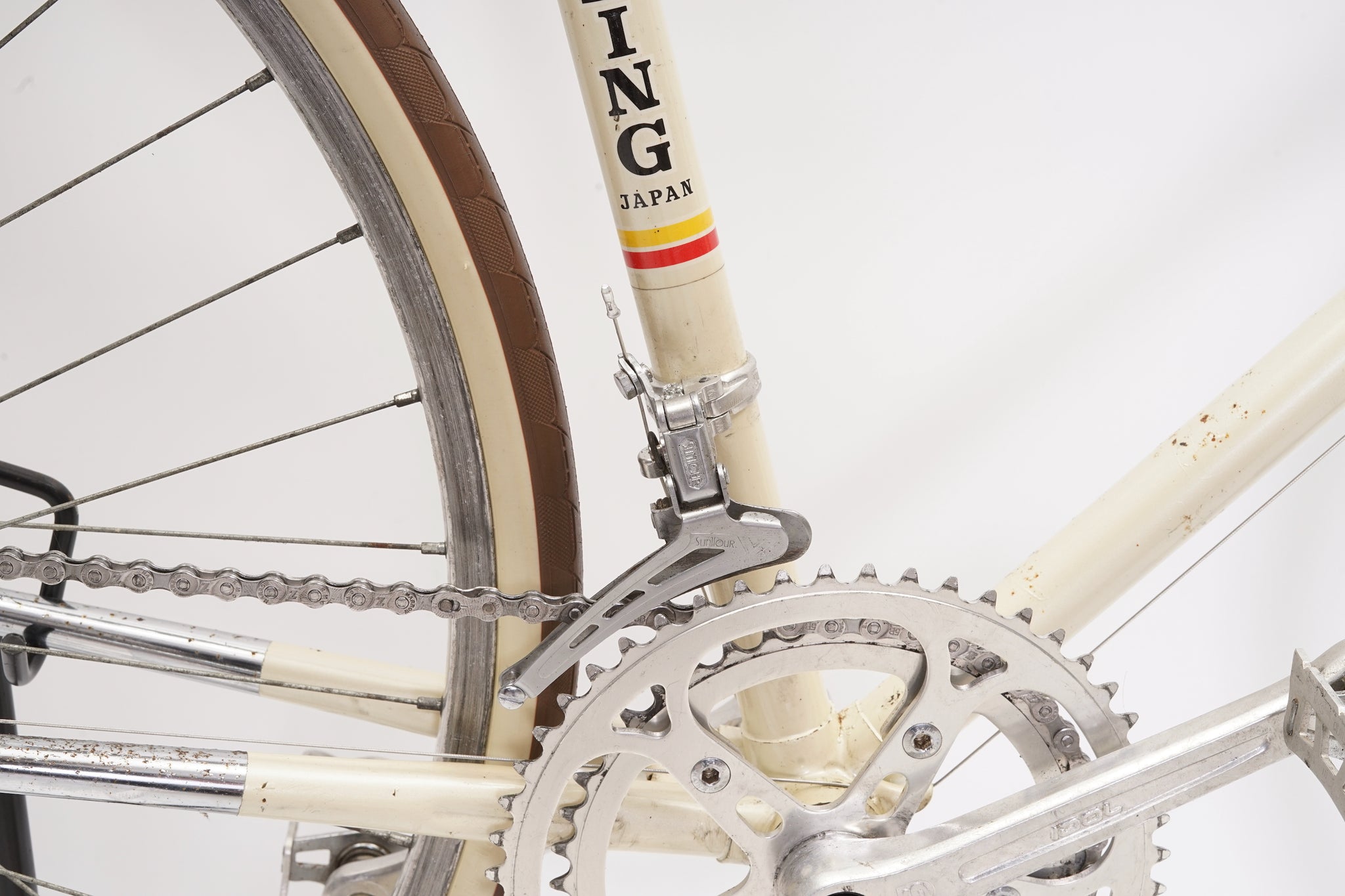 This Jupiter King racer is great for putting in some miles while enjoying the vintage style. It is equipped with a 12-speed Shimano gear-group and an original wheelset. All mechanical gear parts are original and in great condition. A lightweight, super fast, piece of history. Note: The frame has some spots, all of which have been treated by a coating to ensure its ready for the future.