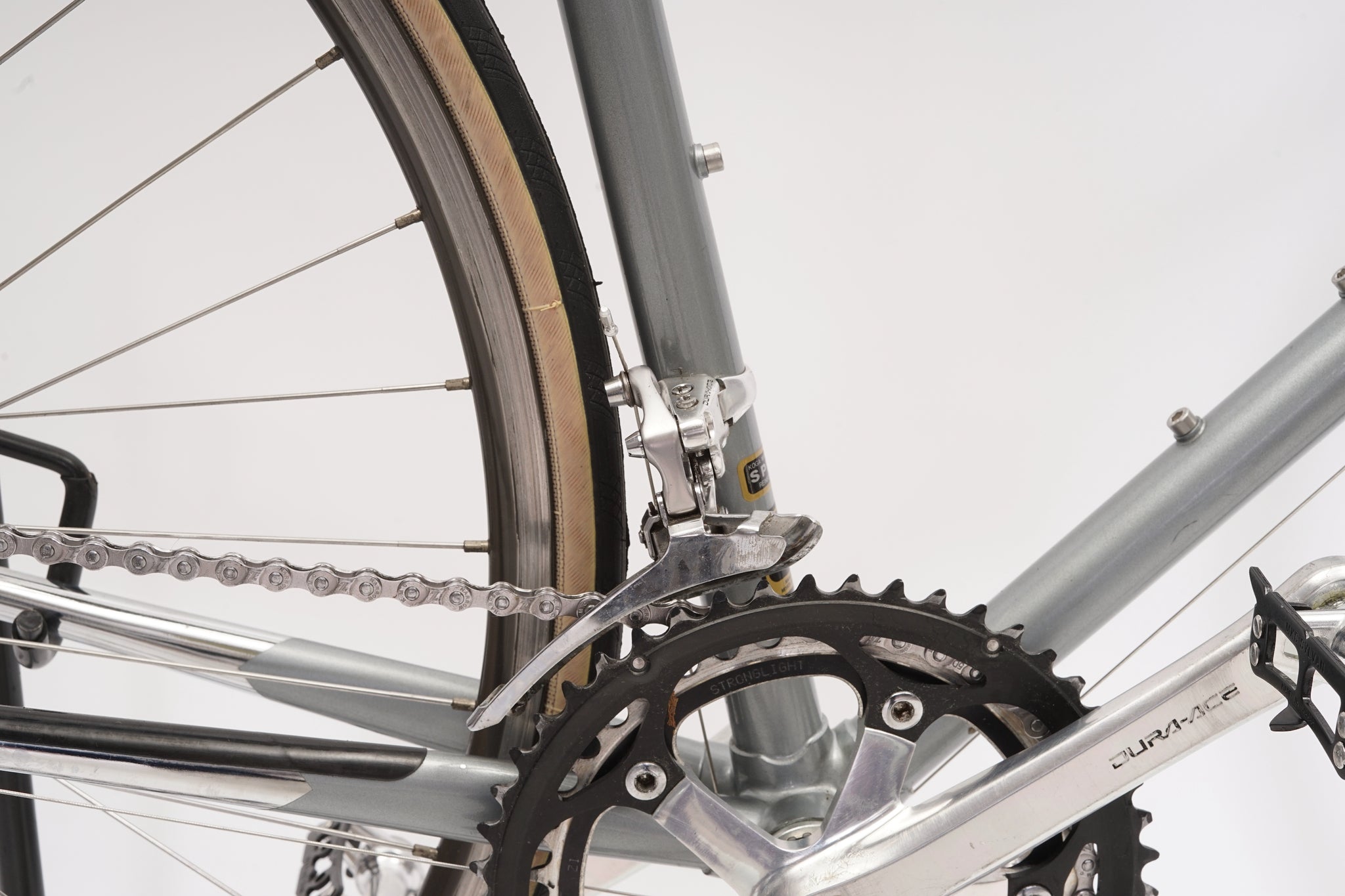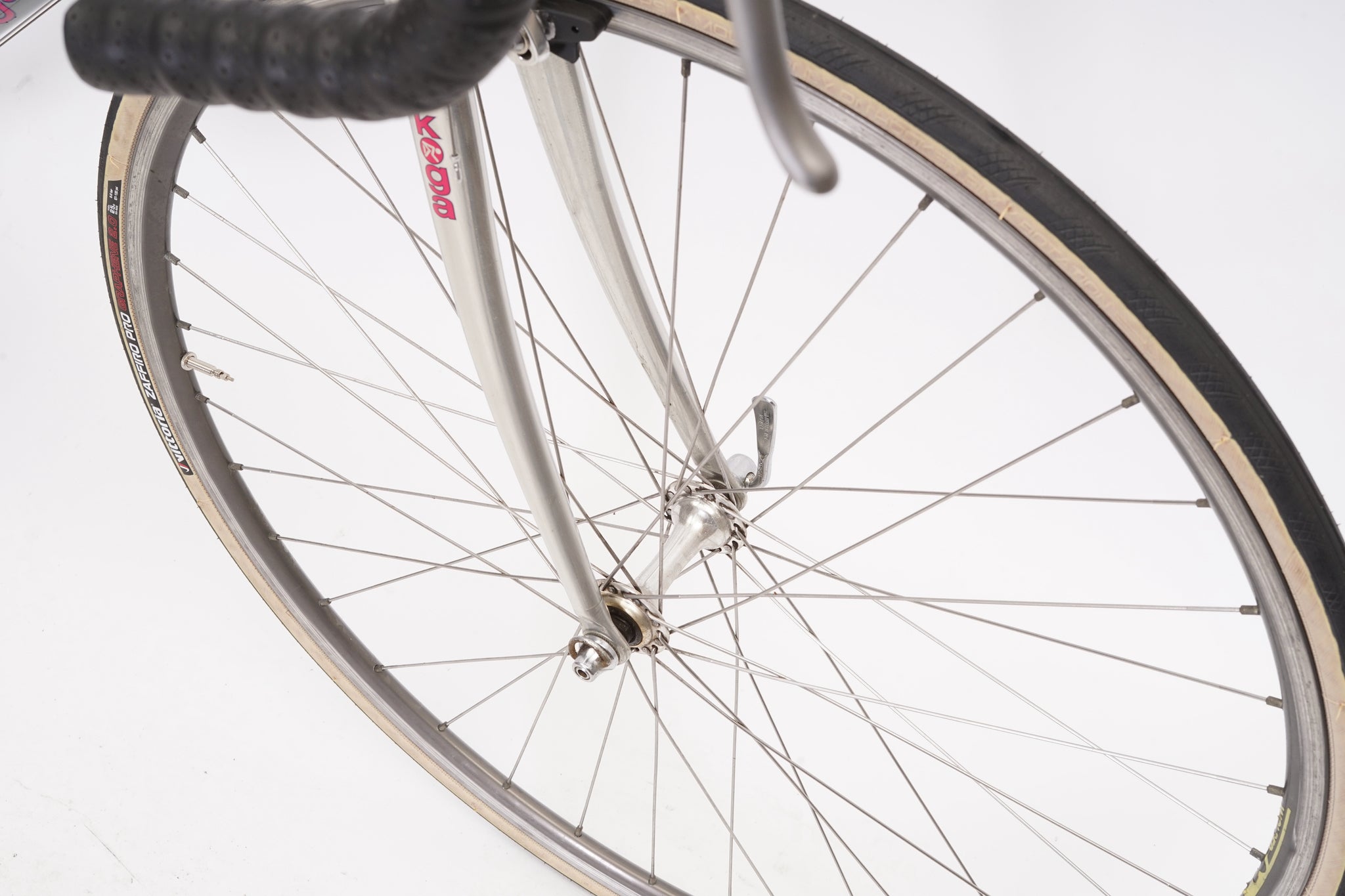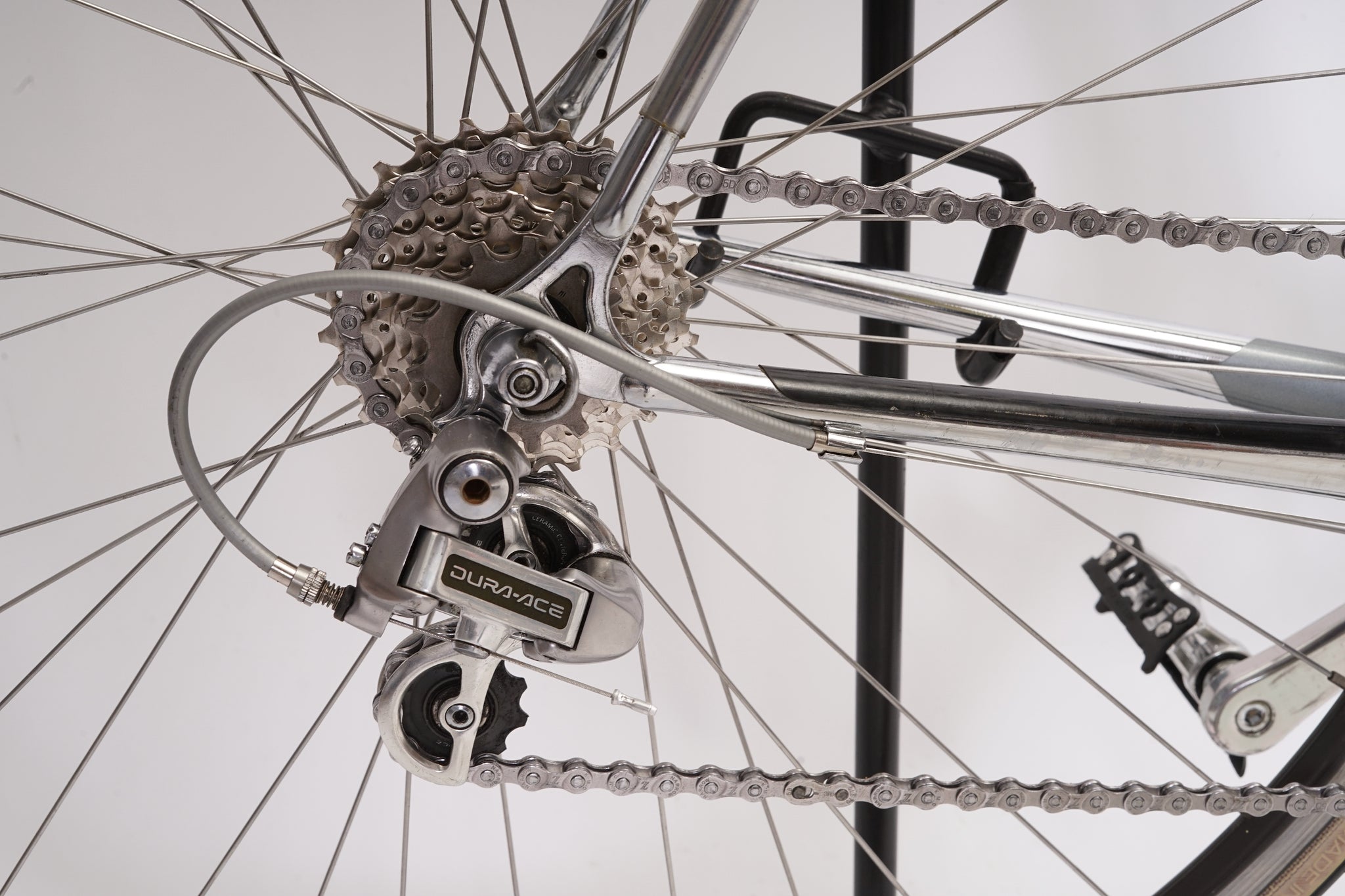 This Koga Miyata GentsLux racer is great for putting in some miles while enjoying the vintage style. It is equipped with a 14-speed Shimano Dura Ace gear-group and an original wheelset containing Wolber rims and Shimano Dura Ace hubs. All mechanical parts are in great condition. A lightweight, super fast, piece of history.