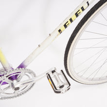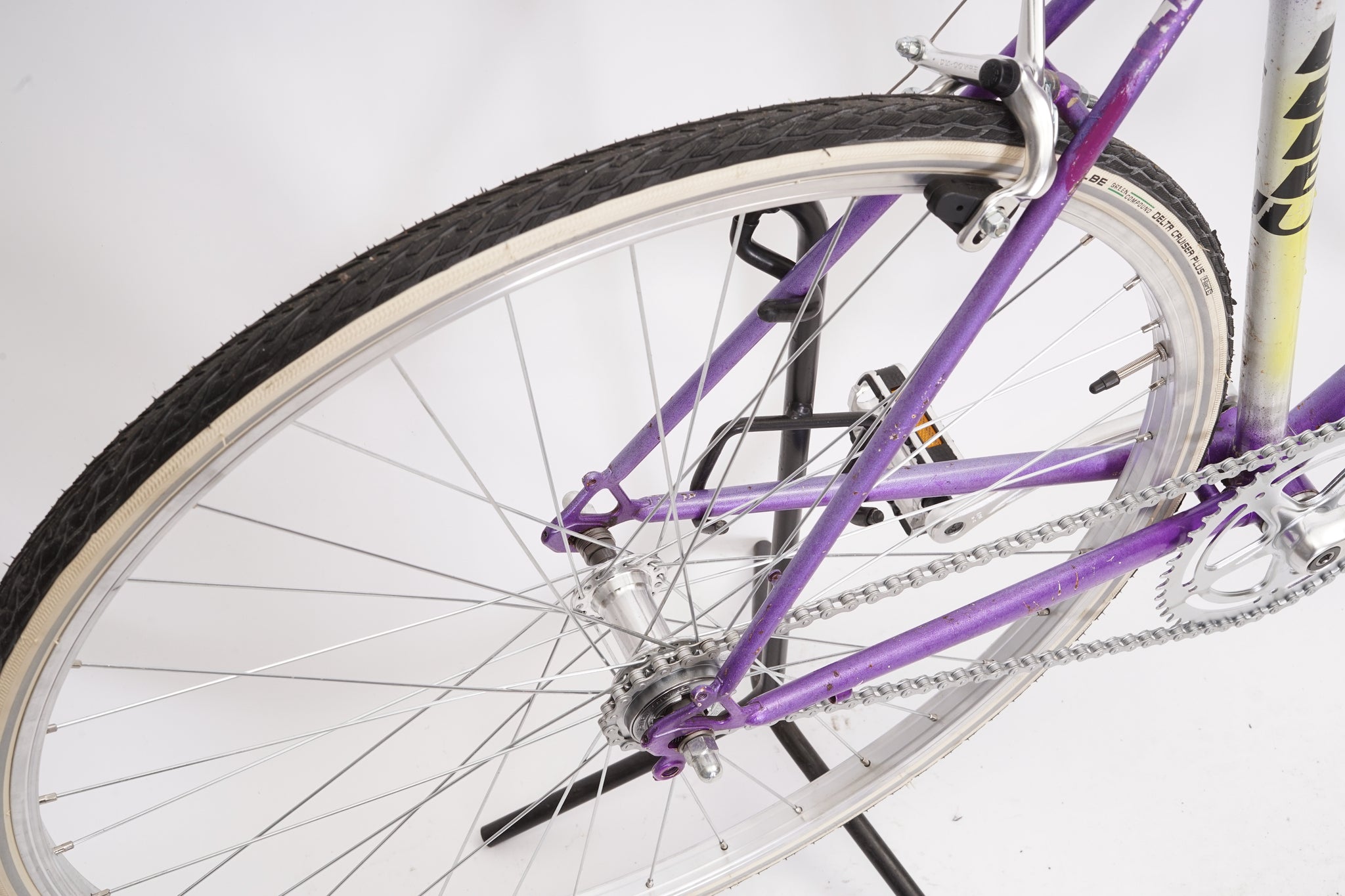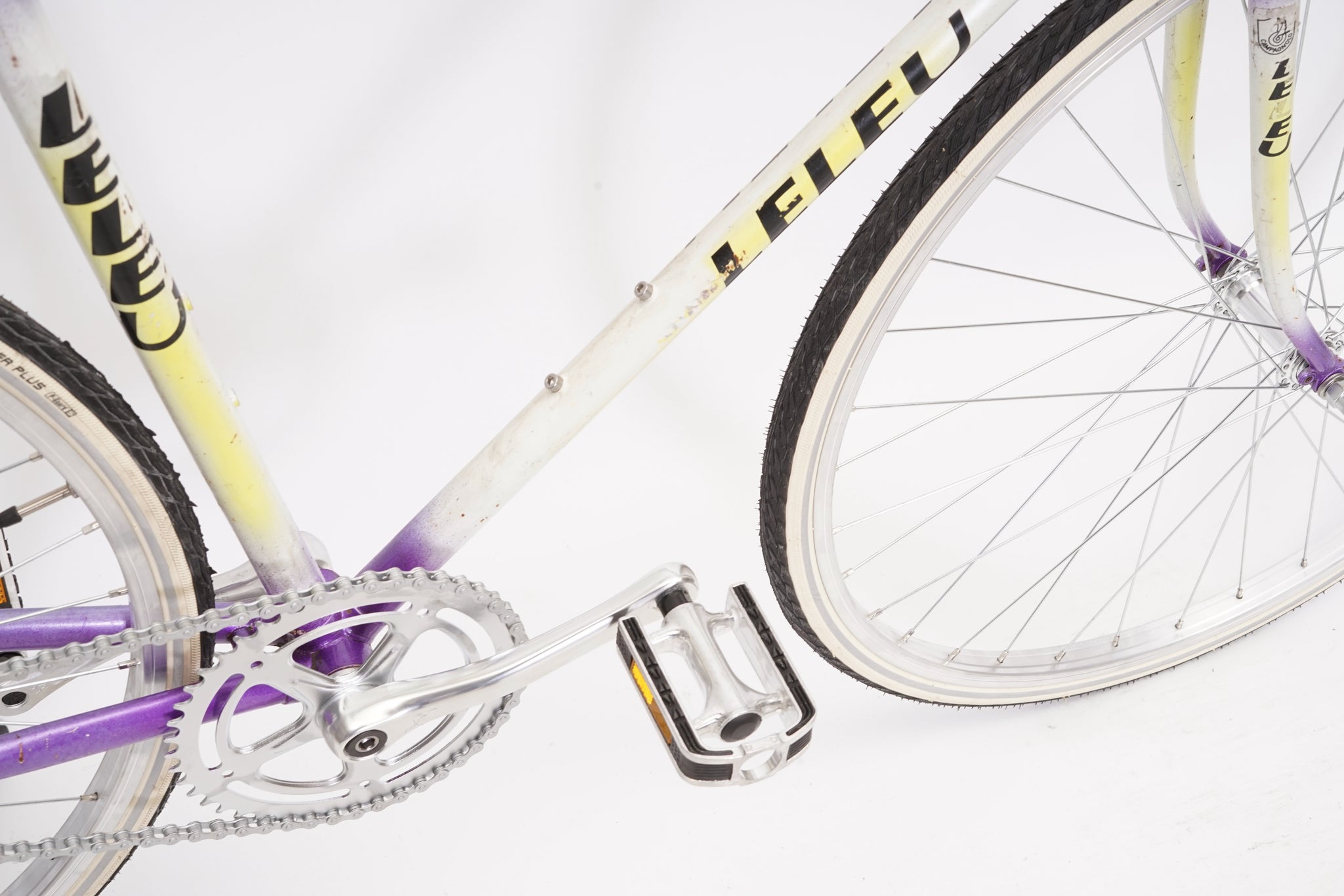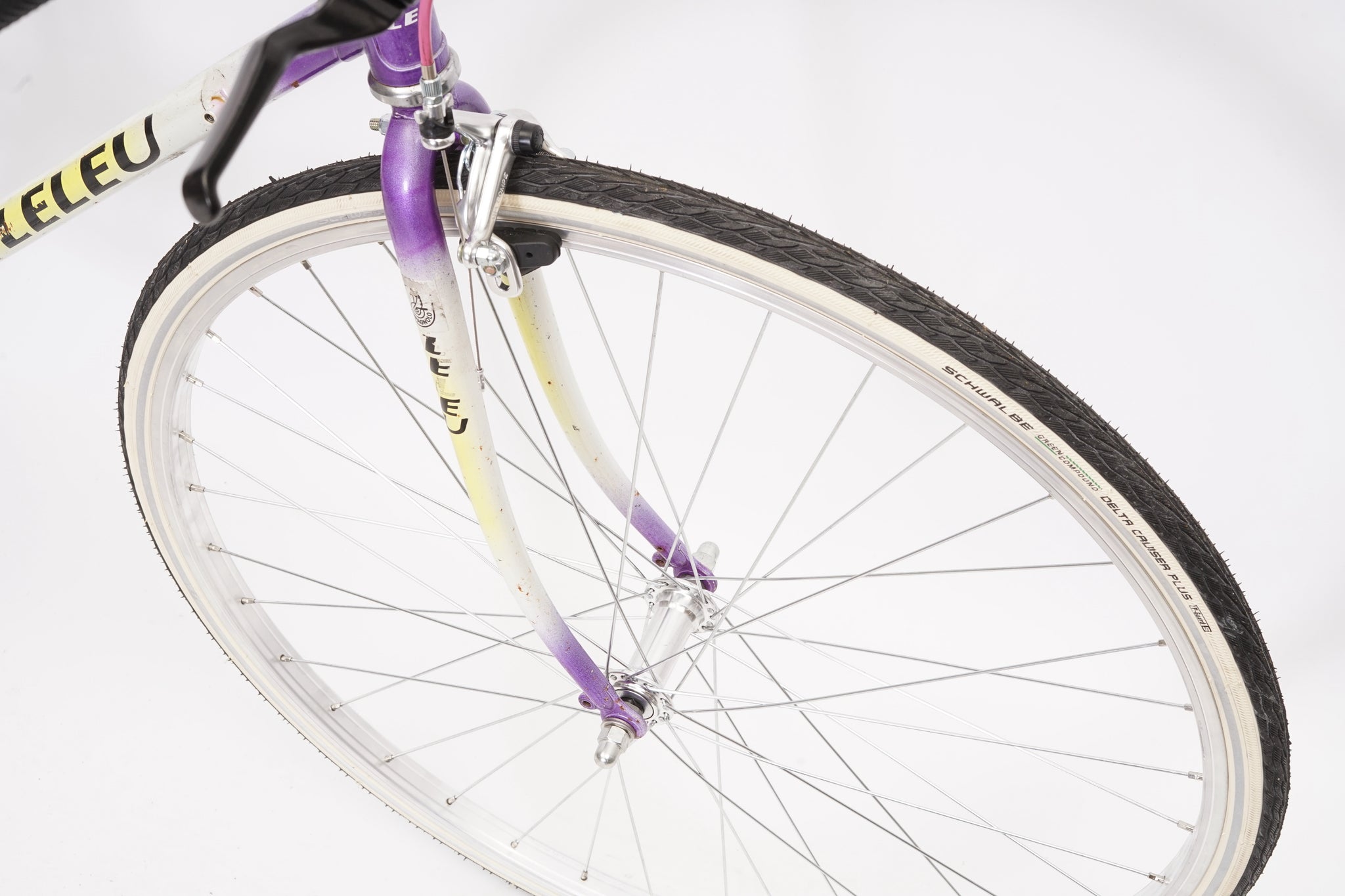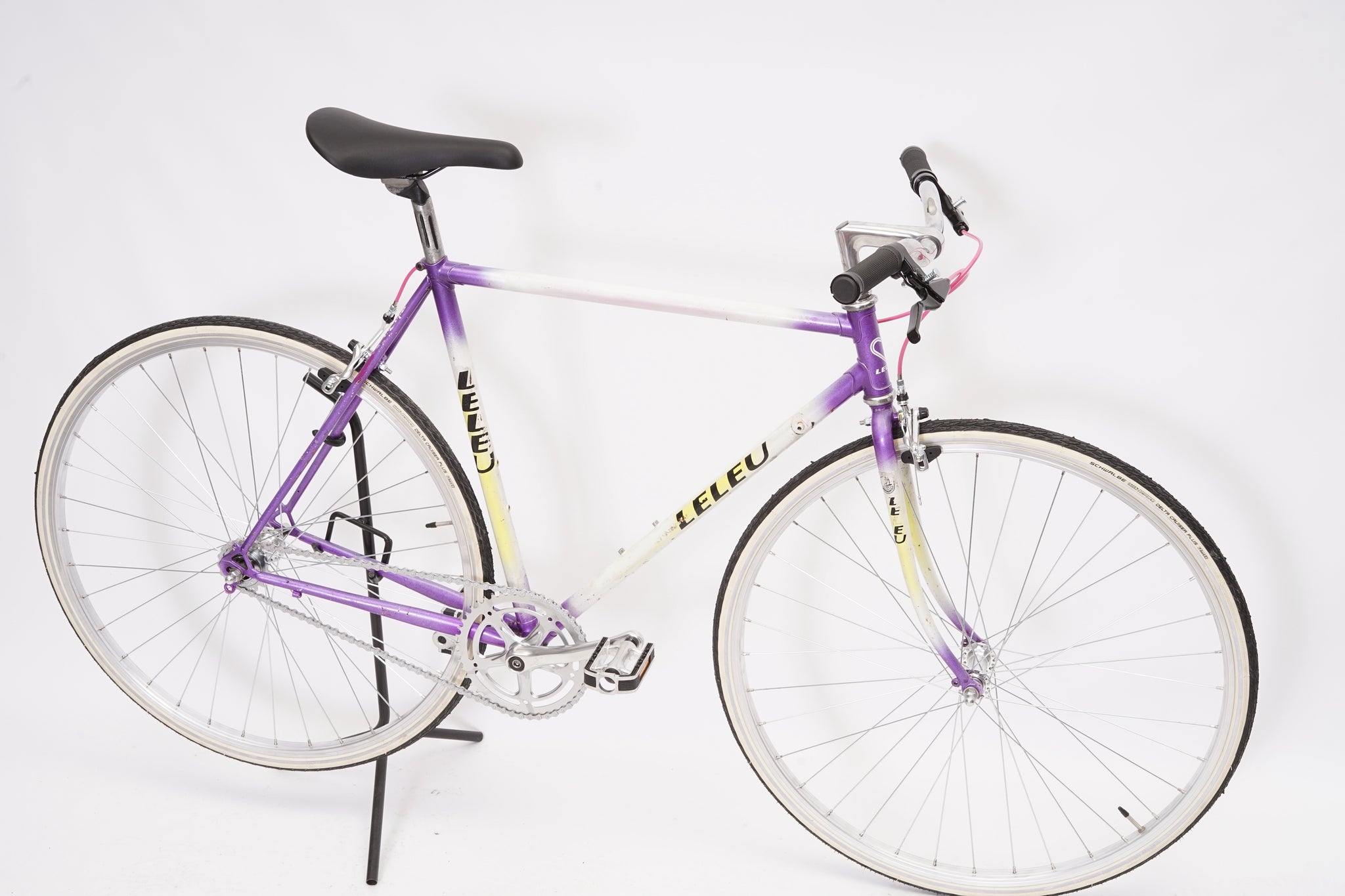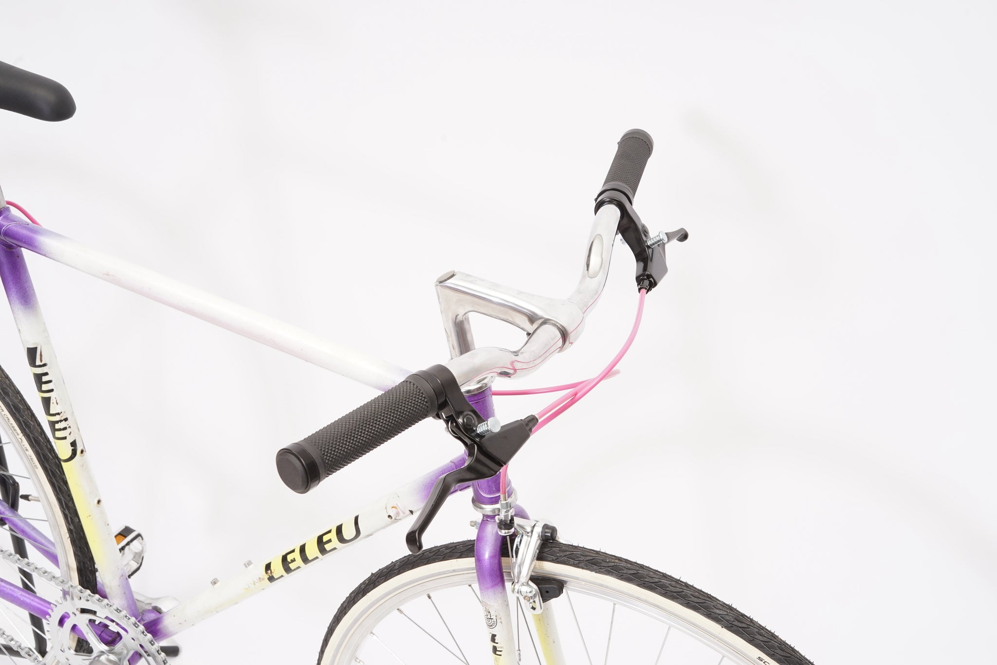 This single-speed city bike is built using a Leleu frame from the early 1980s. The quality steel frame is combined with matching modern parts ensuring a very comfortable riding experience. Very low in maintenance since all mechanical parts have been replaced. Note: The frame has some spots, all of which have been treated by a coating to ensure the bike is ready for the future.