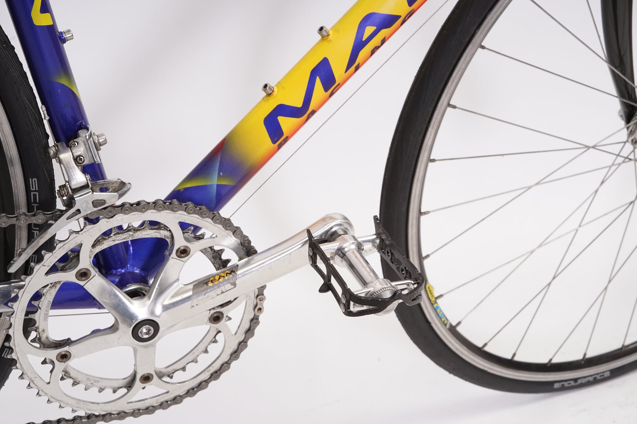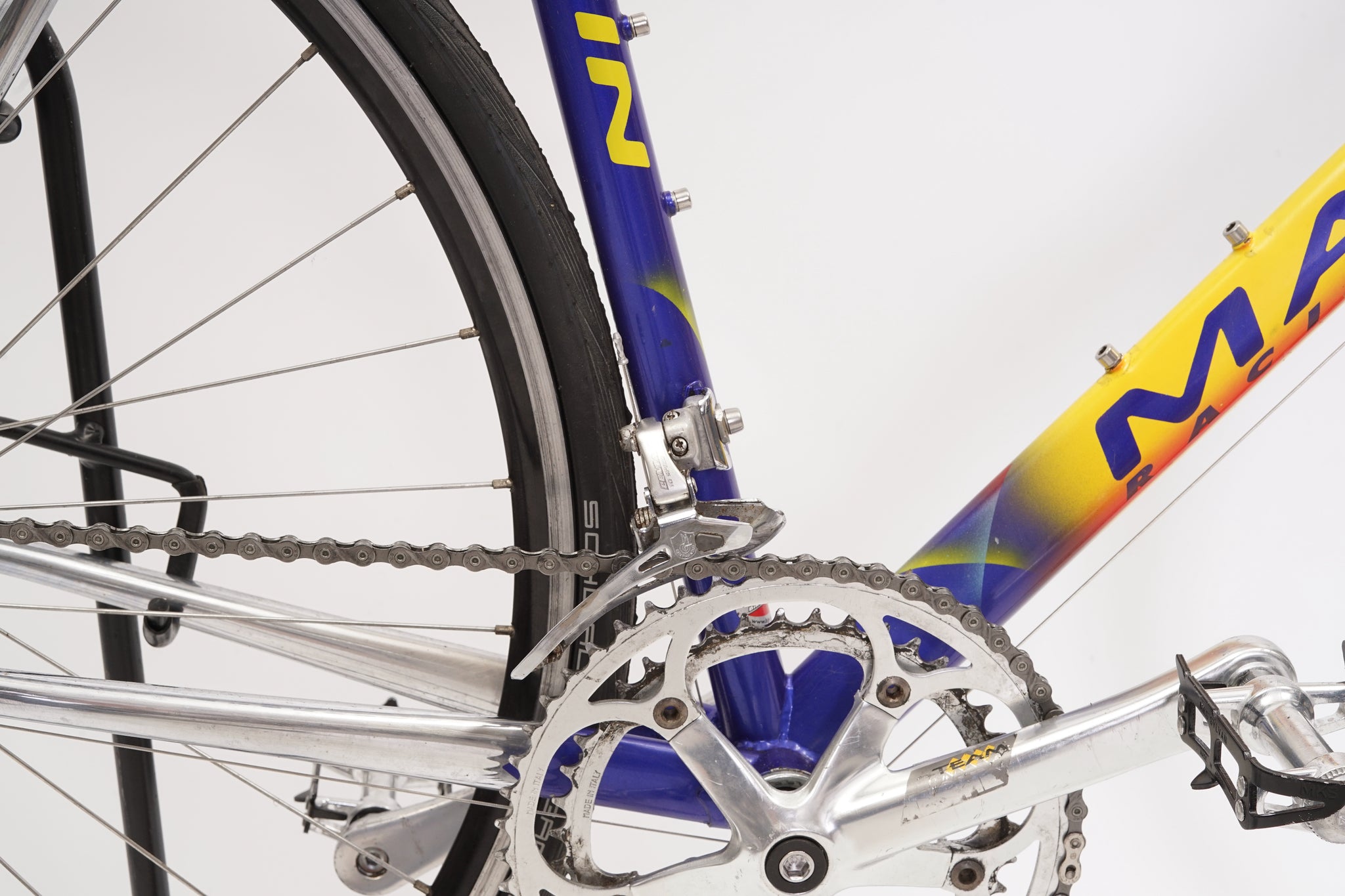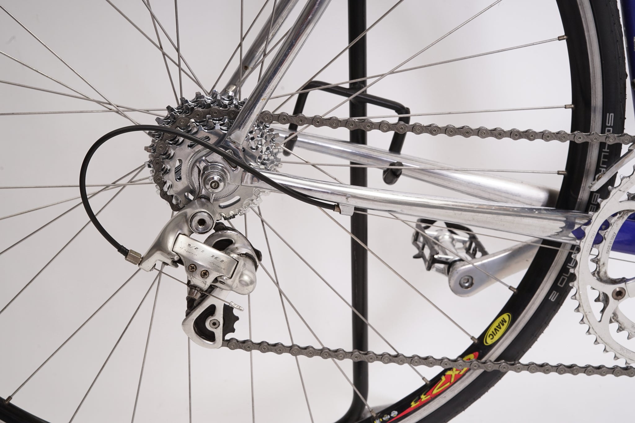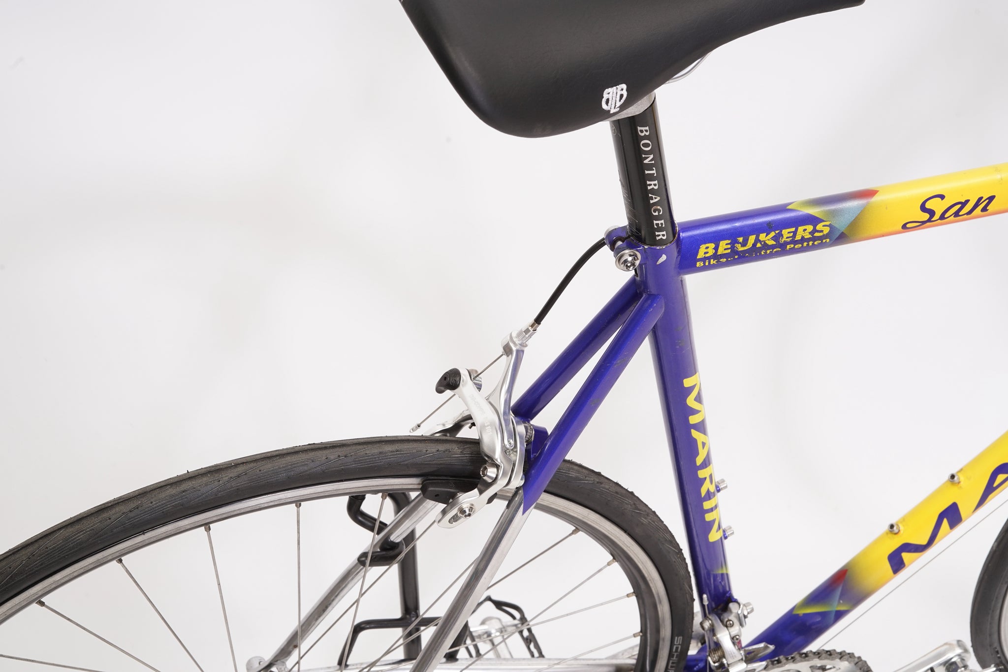 This Marin San Marino racer is great for putting in some miles while enjoying the vintage style. It is equipped with a 18-speed Campagnolo Veloce gear-group and an original wheelset containing Mavic rims. All mechanical gear parts are original and in great condition. A lightweight, super fast, piece of history.