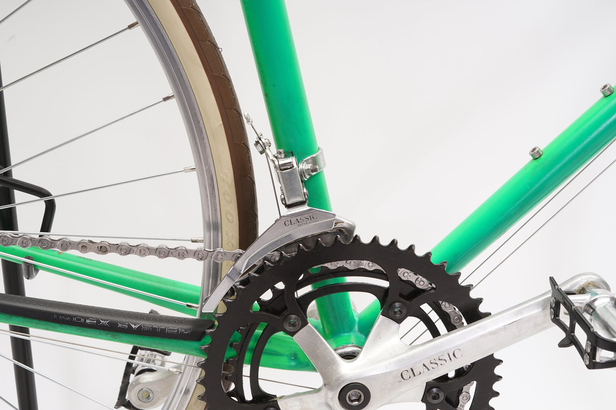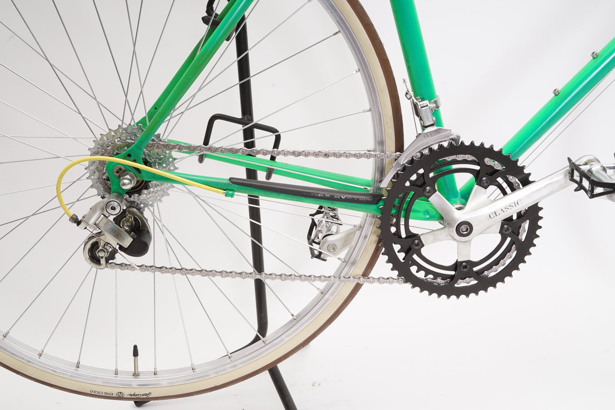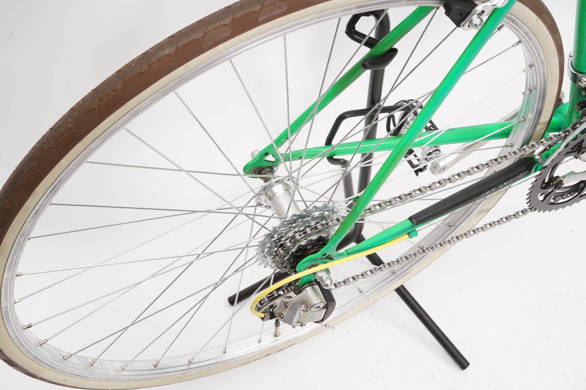 This MBK Leader racer with gears dates back to the mid-1980s. The bike is equipped with a quality Sachs Huret gear group with 12 gears in total. Low in maintenance since necessary mechanical parts have been replaced and the bike has been carefully checked by our mechanics.