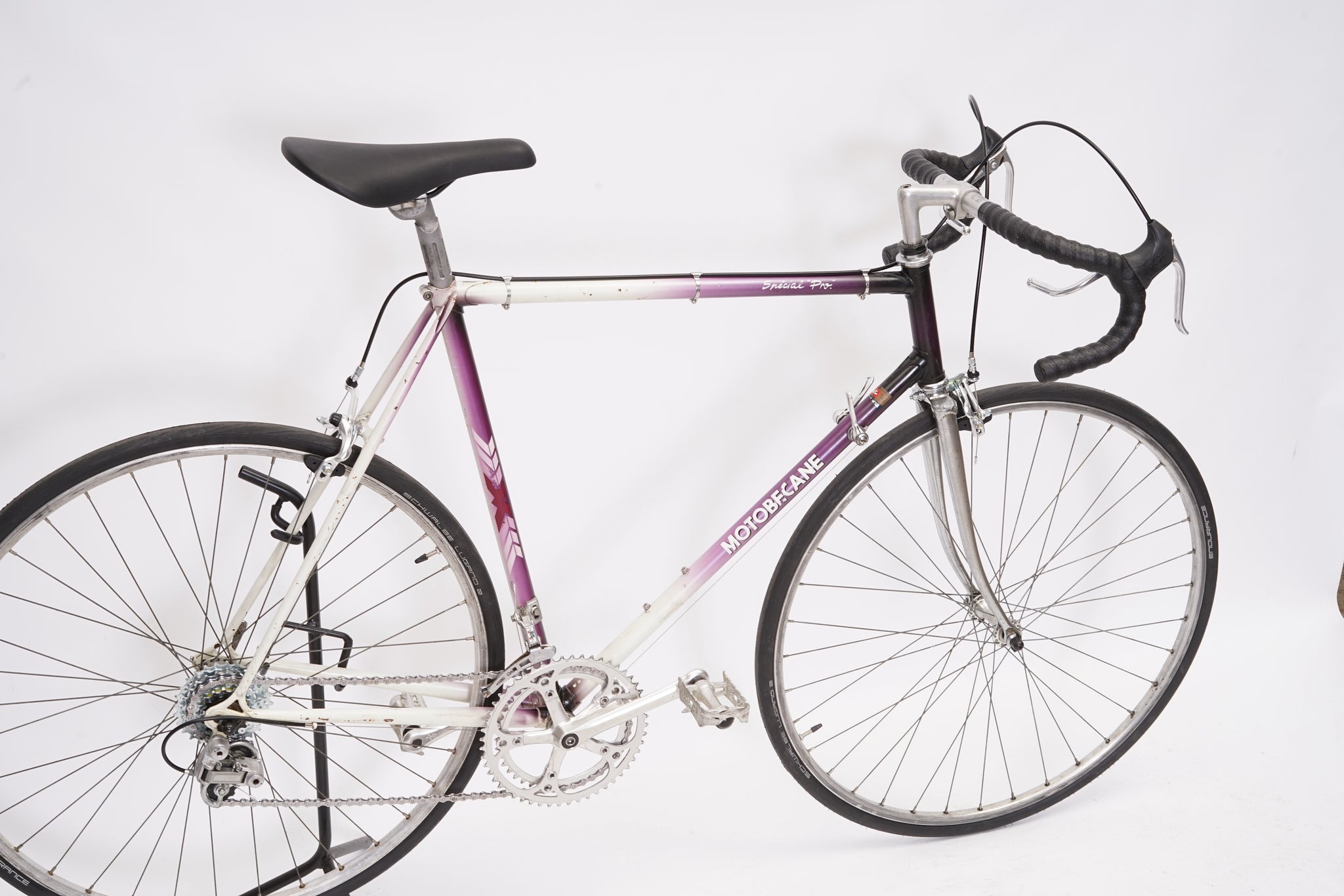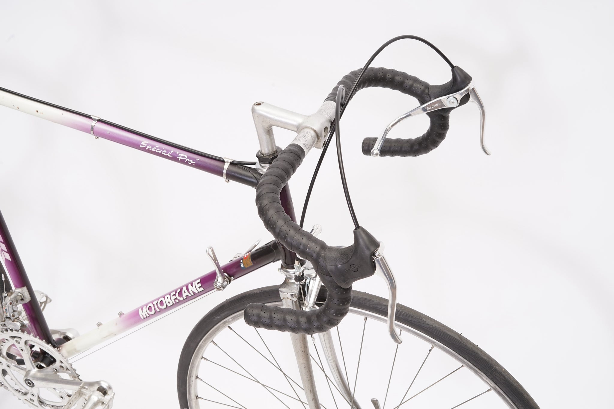 This Motobecane racer is great for putting in some miles while enjoying the vintage style. It is equipped with a 10-speed Simplex gear-group and an original wheelset containing Maillard hubs. All mechanical gear parts are original and in great condition. A lightweight, super fast, piece of history.