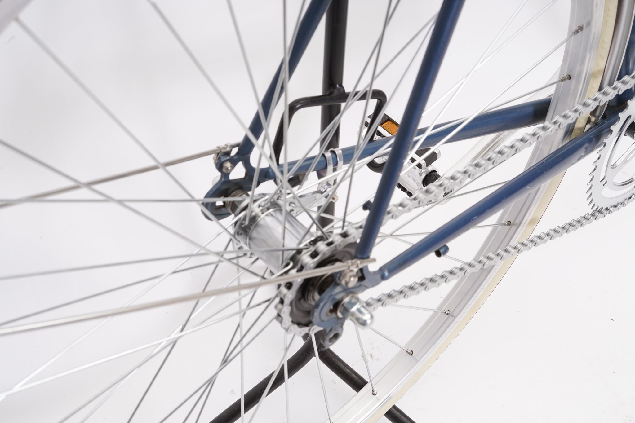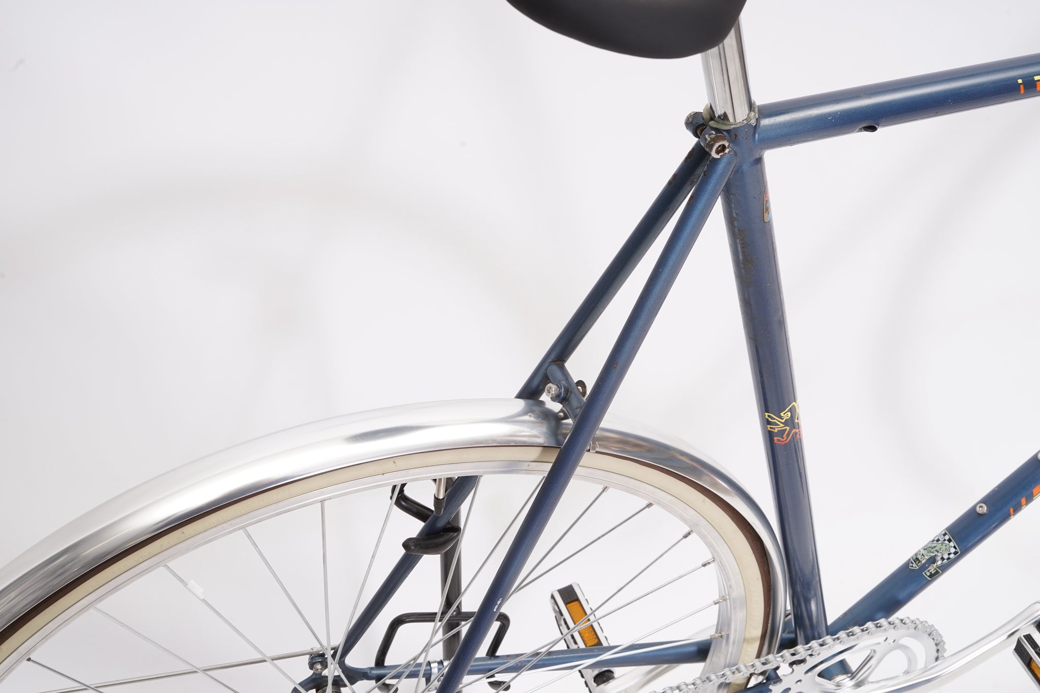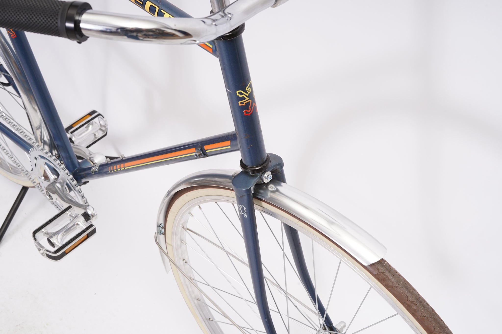 This single-speed city bike is built using a Peugeot frame from the early 1980s. The quality steel frame is combined with matching modern parts ensuring a very comfortable riding experience. Very low in maintenance since all mechanical parts have been replaced.