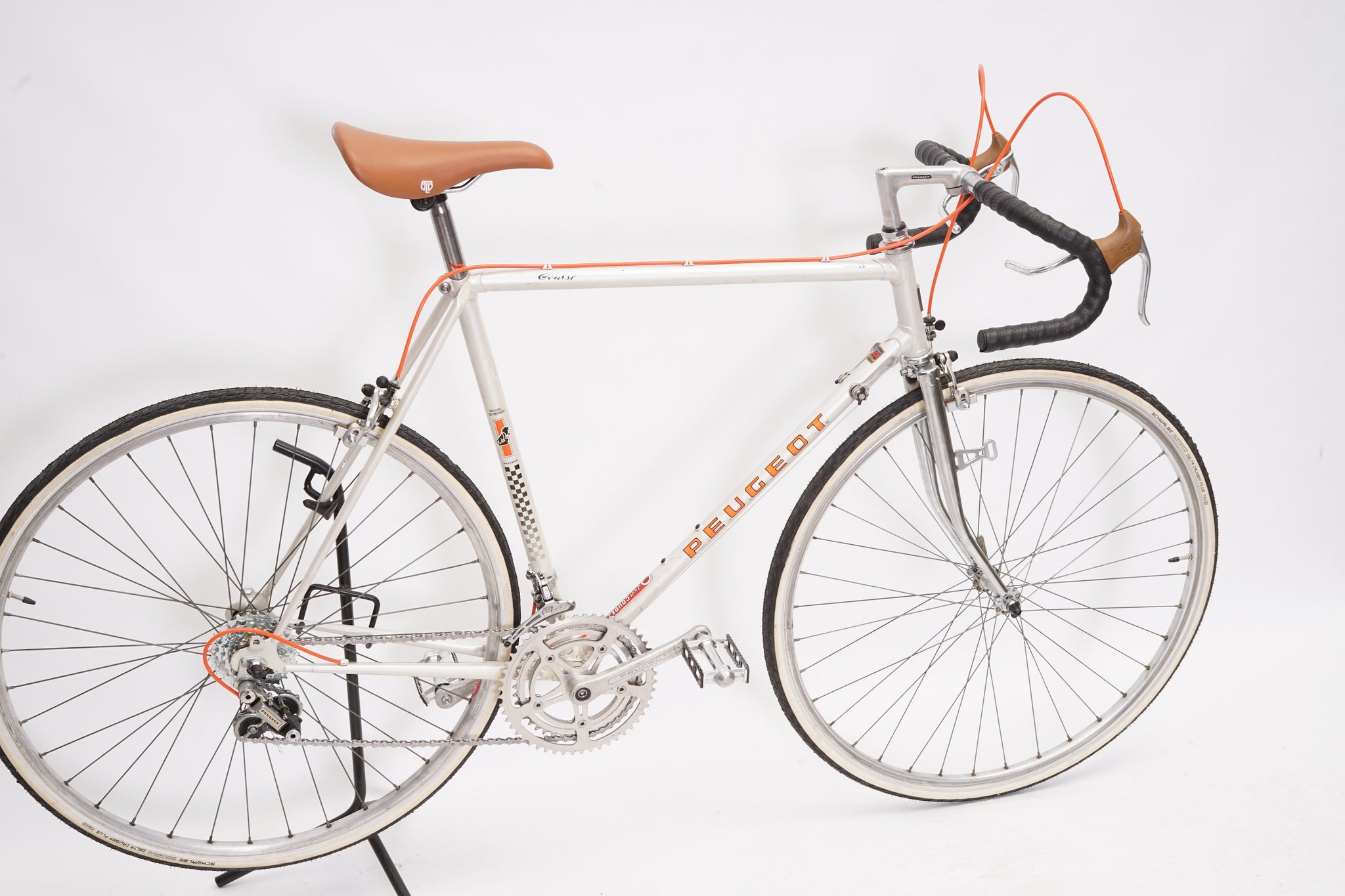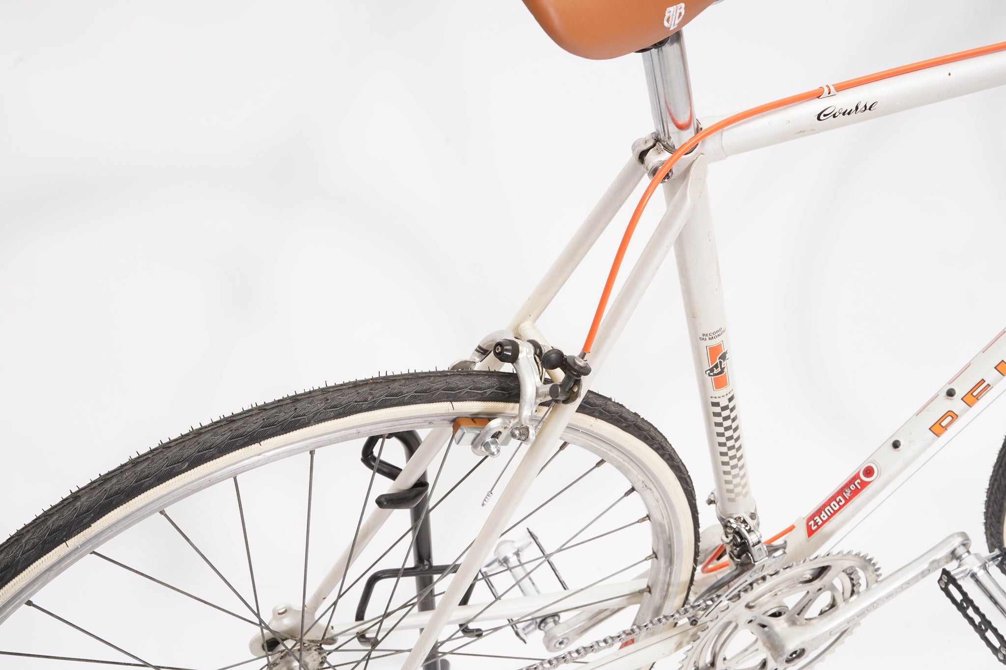 This Peugeot Course racer is great for putting in some miles while enjoying the vintage style. It is equipped with a 10-speed Shimano / Simplex gear-group and an original wheelset containing Atom hubs and Rigida rims. All mechanical gear parts are original and in great condition. A lightweight, super fast, piece of history.