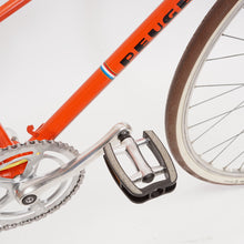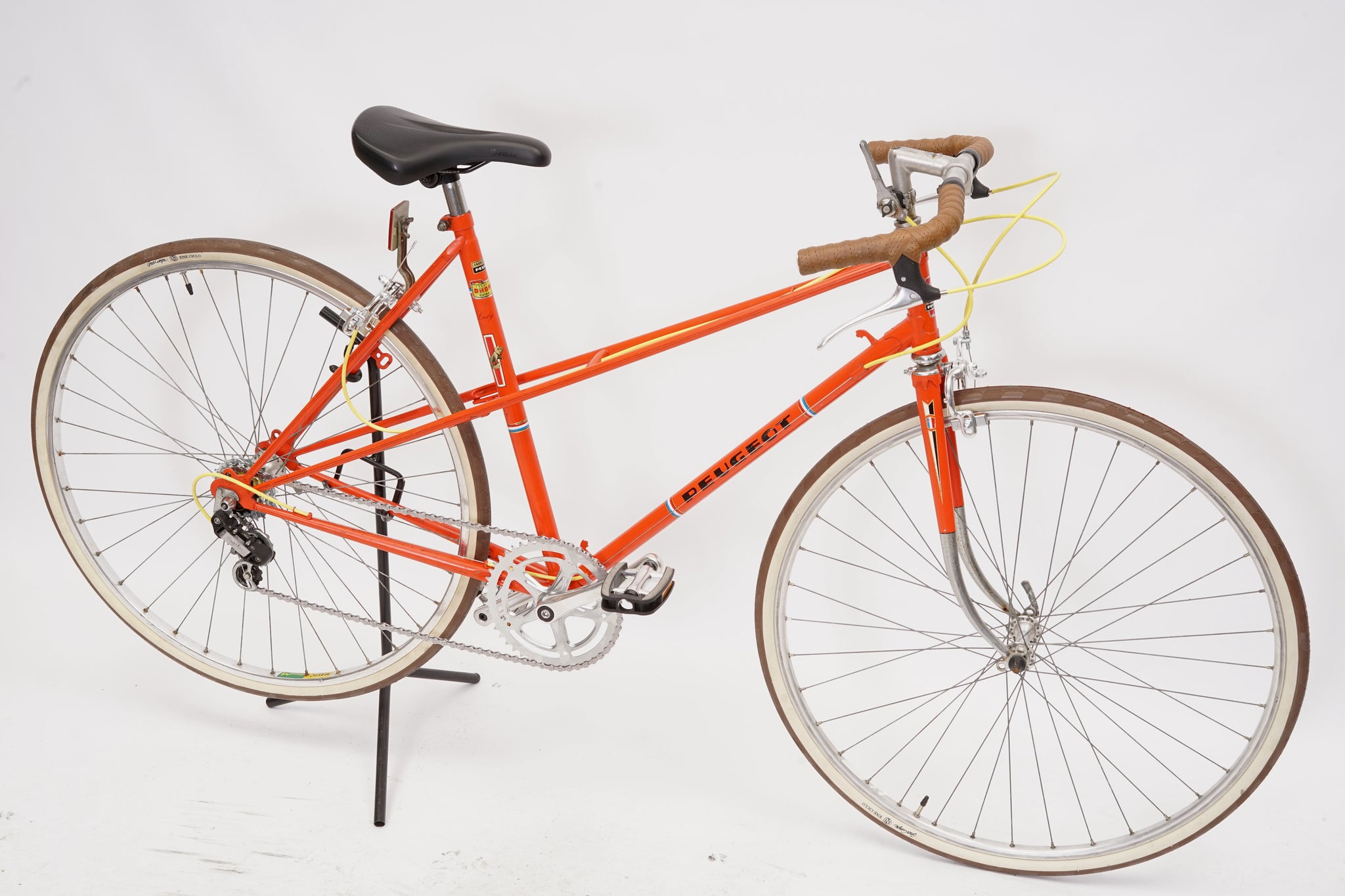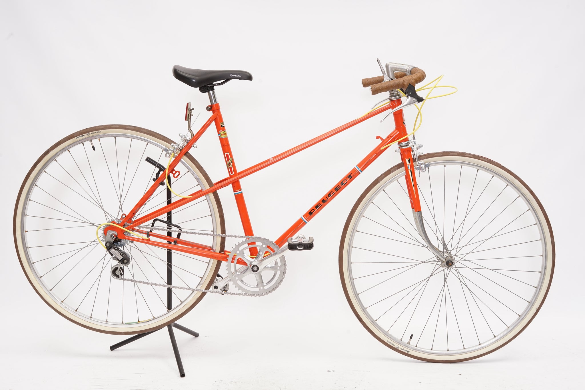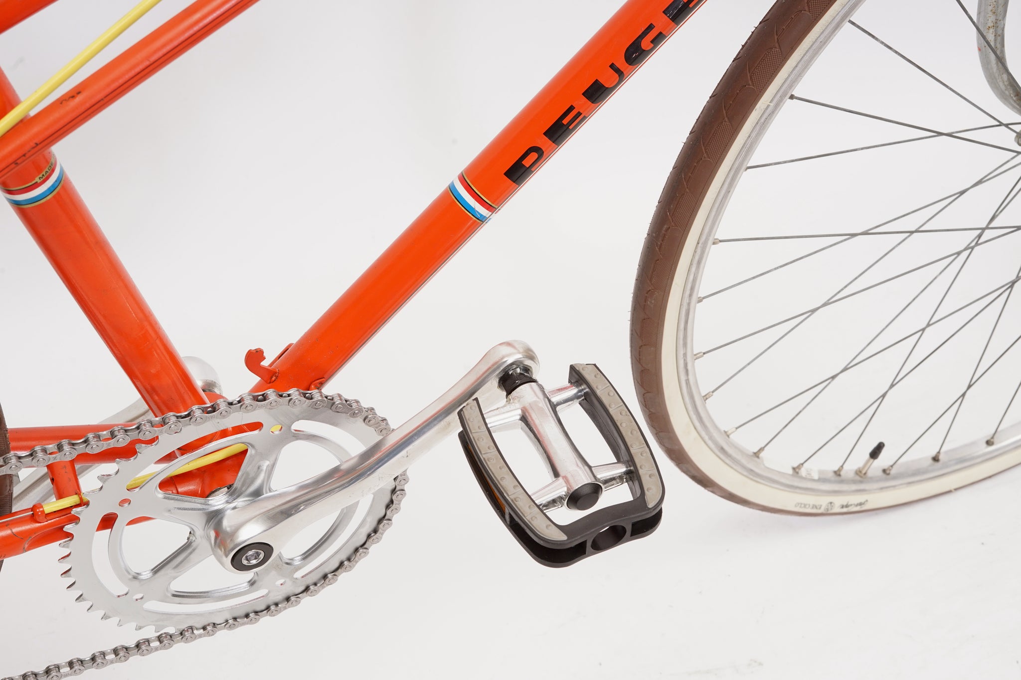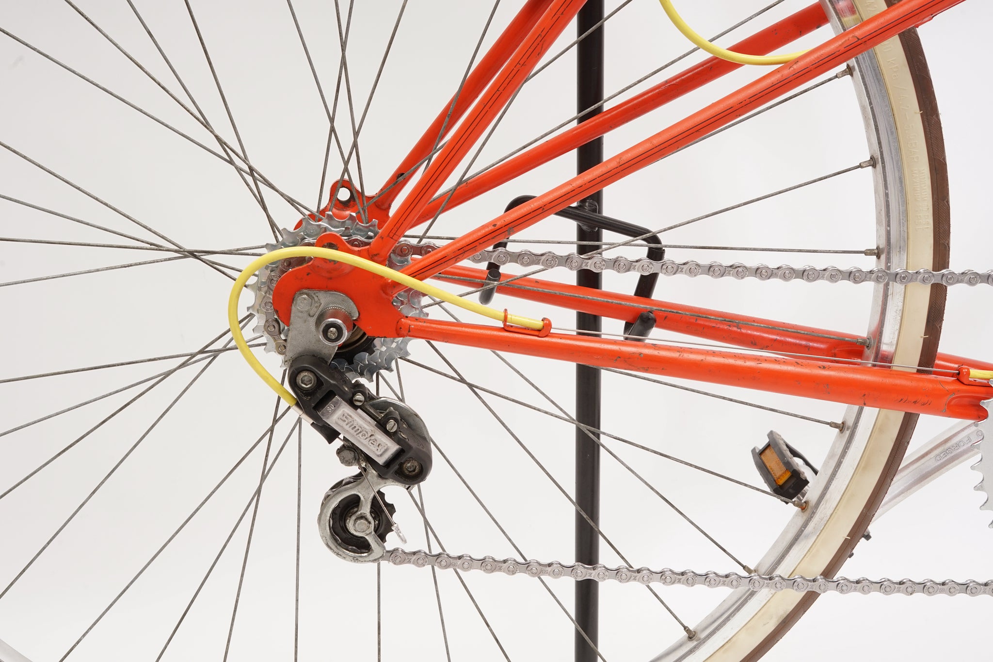 This high quality yet elegant Peugeot mixte with gears dates back to the late 1970s. The convenient low top tube and ENE Ciclo tires make this bike ideal for day-to-day usage. The bike is equipped with a quality Simplex gear group with 5 gears in total and an original wheelset. Low in maintenance since most mechanical parts have been replaced.