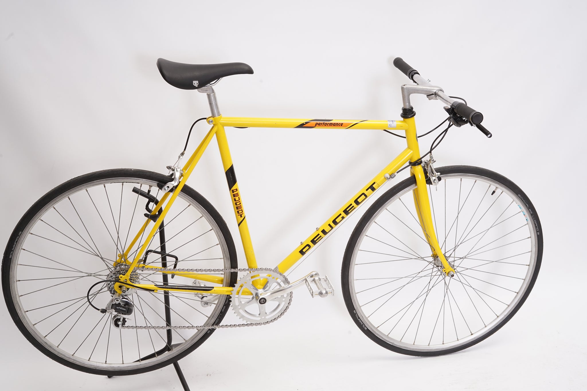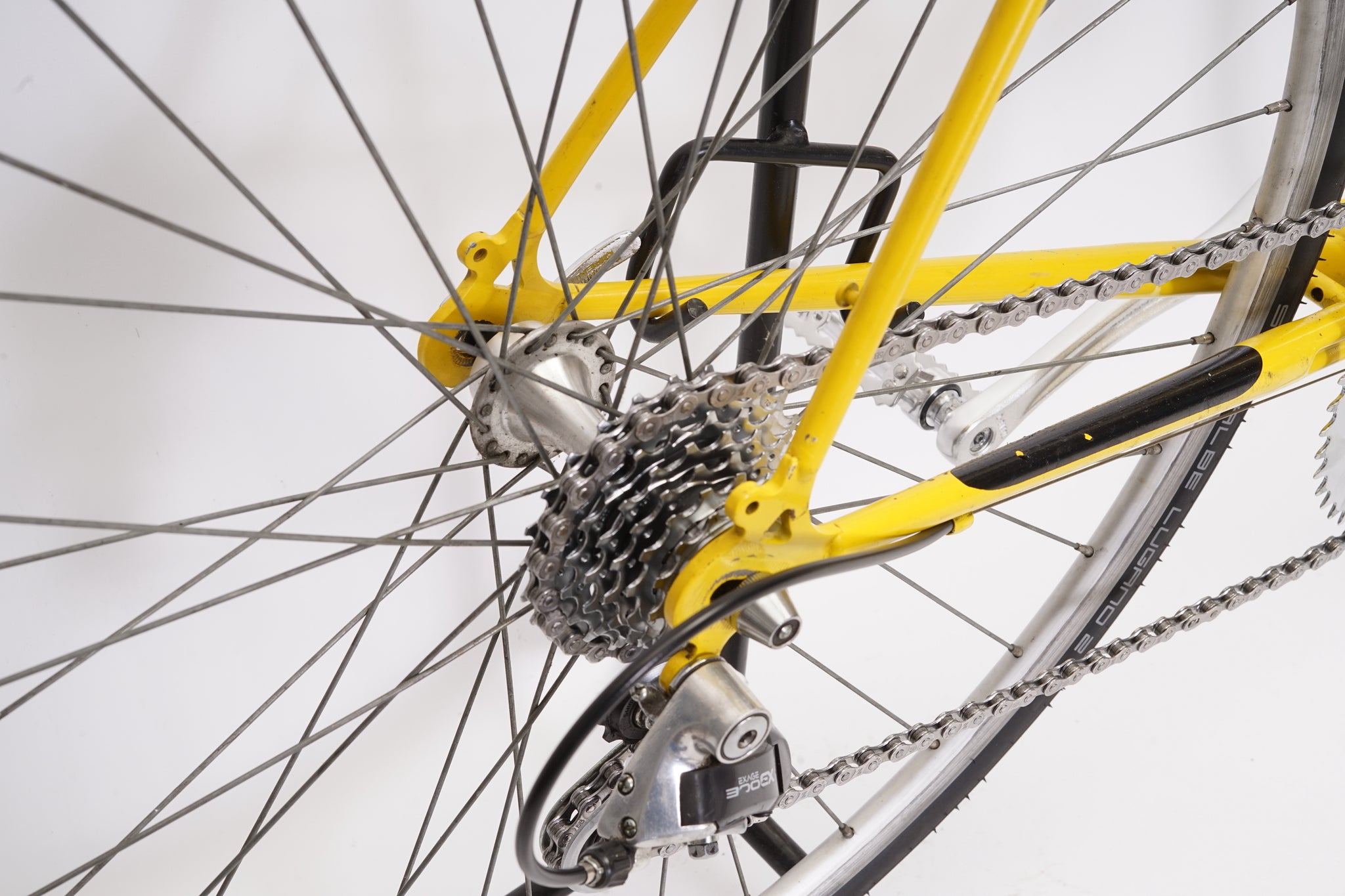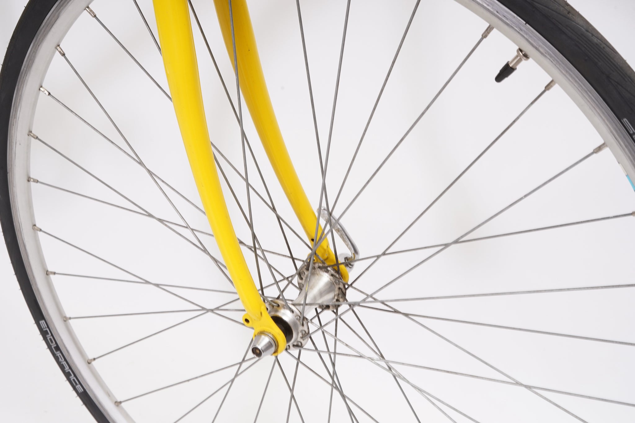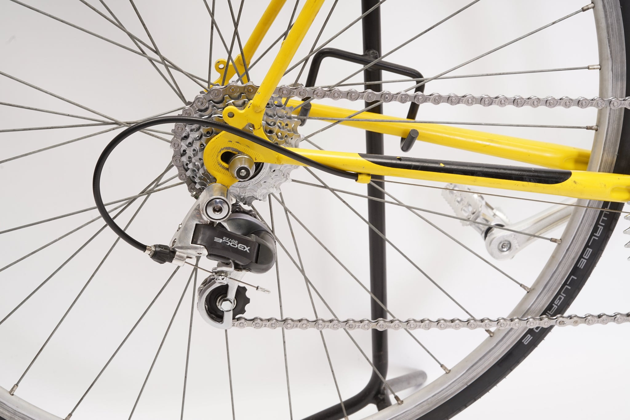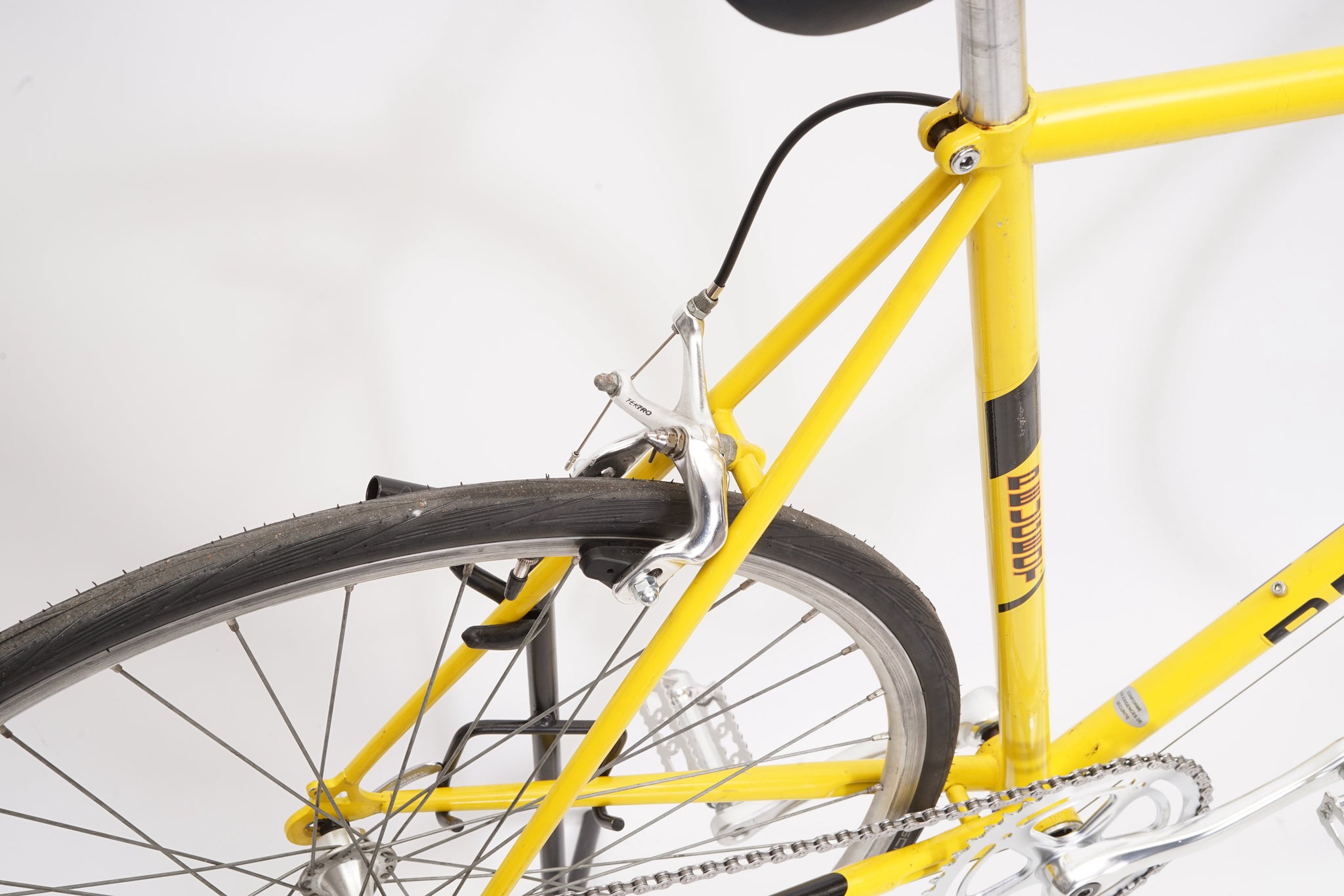 This Peugeot city racer is great for putting in some miles while enjoying the vintage style. It is equipped with a 7-speed Shimano gear-group and an original wheelset containing Rigida rims and Shimano hubs The bike is conveniently equipped with a 7-speed Shimano index shifter on the handlebars. All mechanical gear parts are original and in great condition. A lightweight, super fast, piece of history.