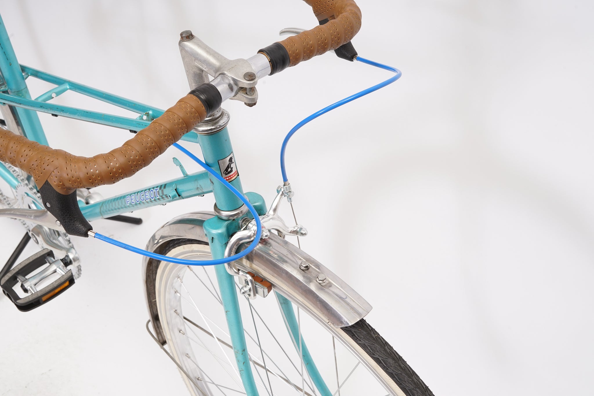 This single-speed mixte bike is built using a Peugeot frame from the early 1980s. The quality steel frame is combined with matching modern parts making the bike ideal for day-to-day usage. Very low in maintenance since all mechanical parts have been replaced.