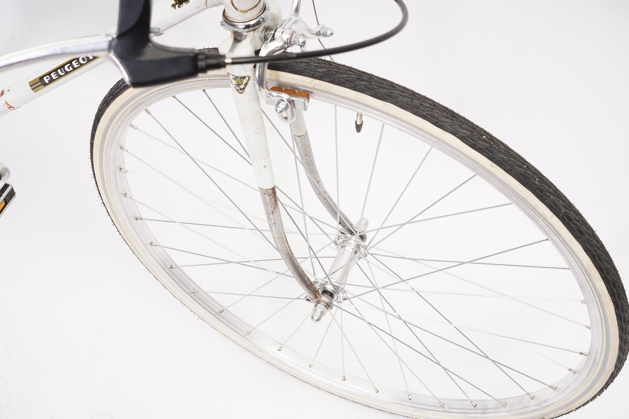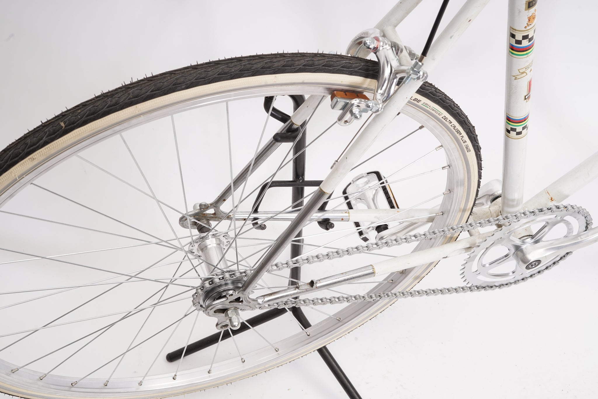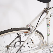 This single-speed city bike is built using a Peugeot frame from the late 1970s. The quality steel frame is combined with matching modern parts ensuring a very comfortable riding experience. Very low in maintenance since all mechanical parts have been replaced.