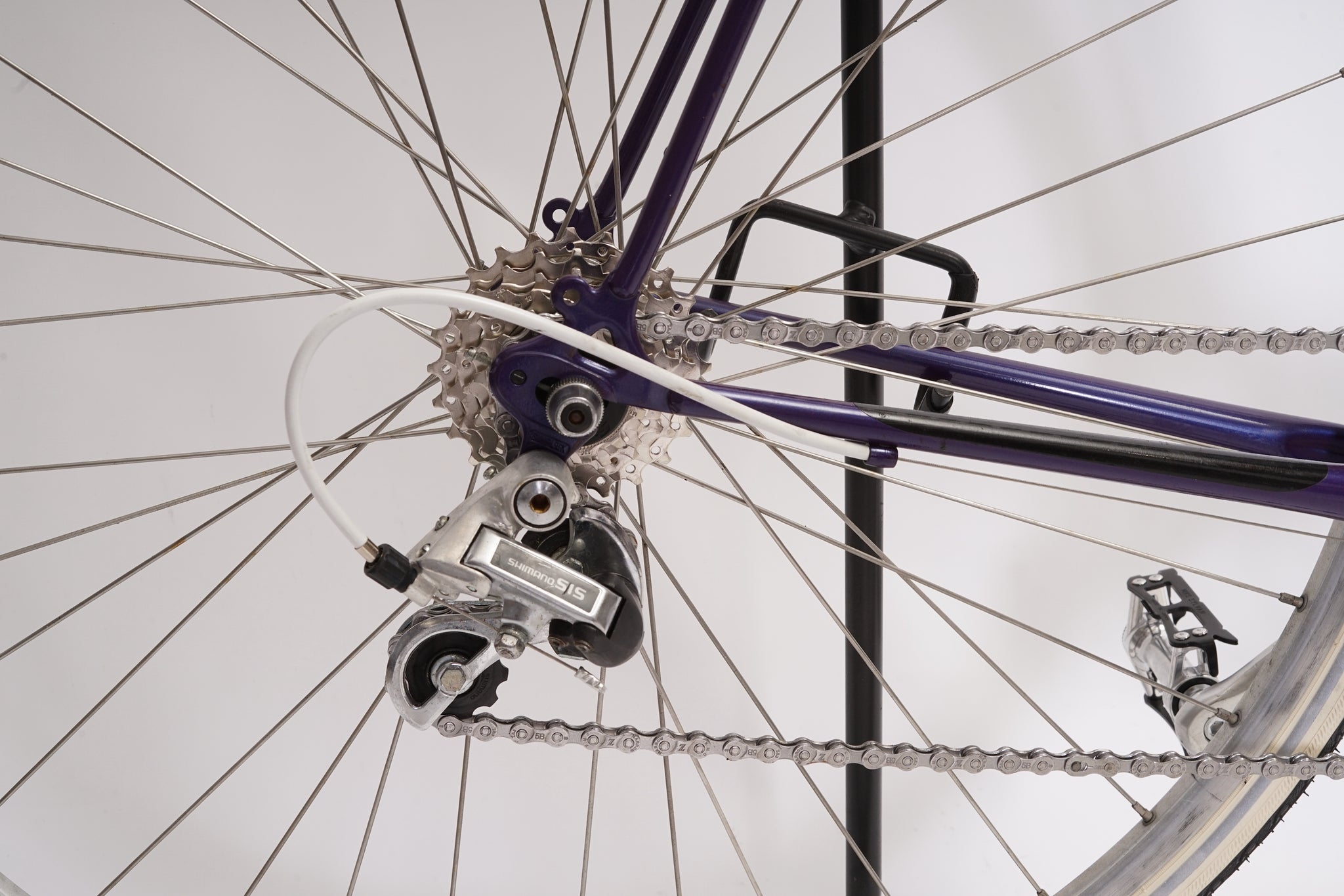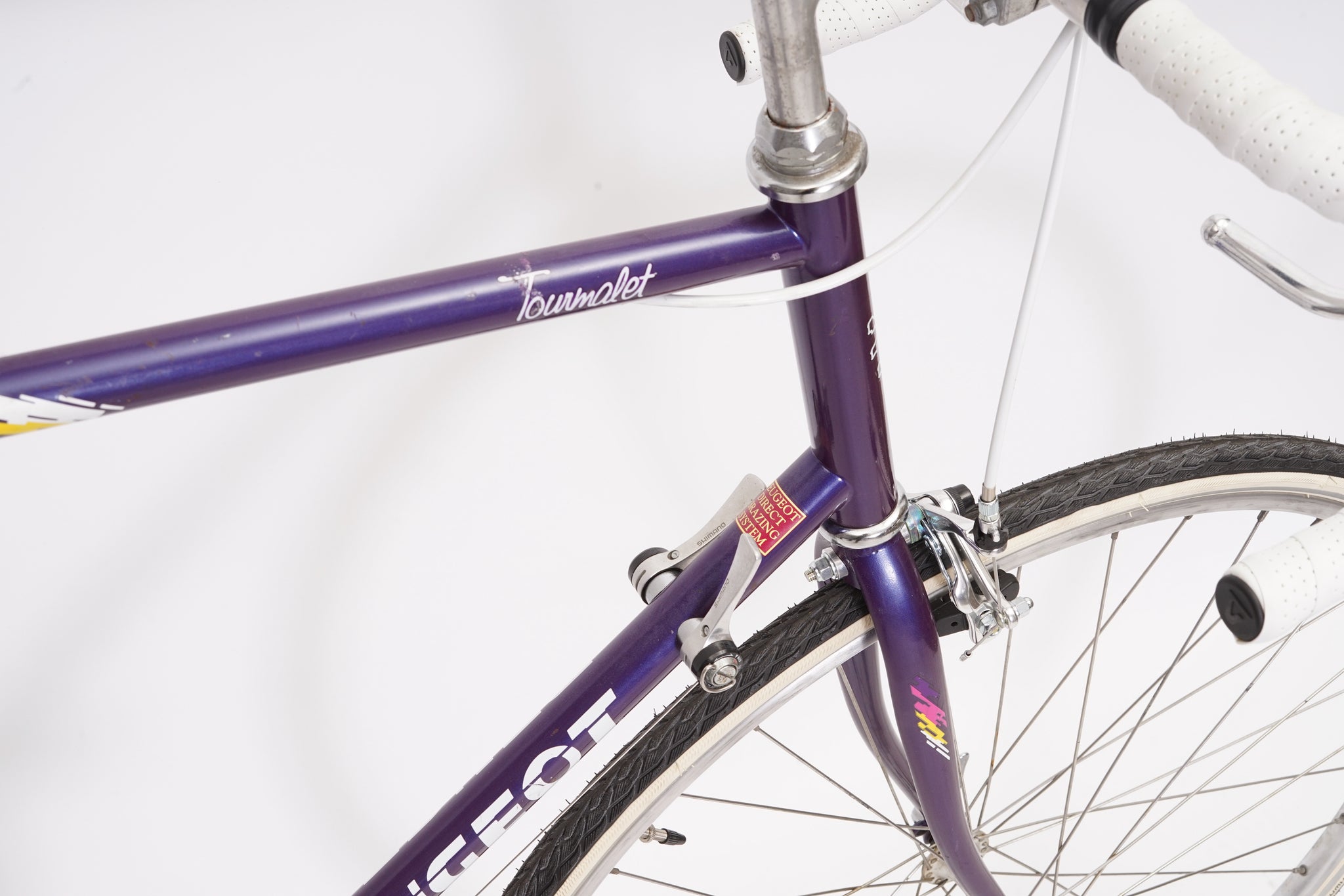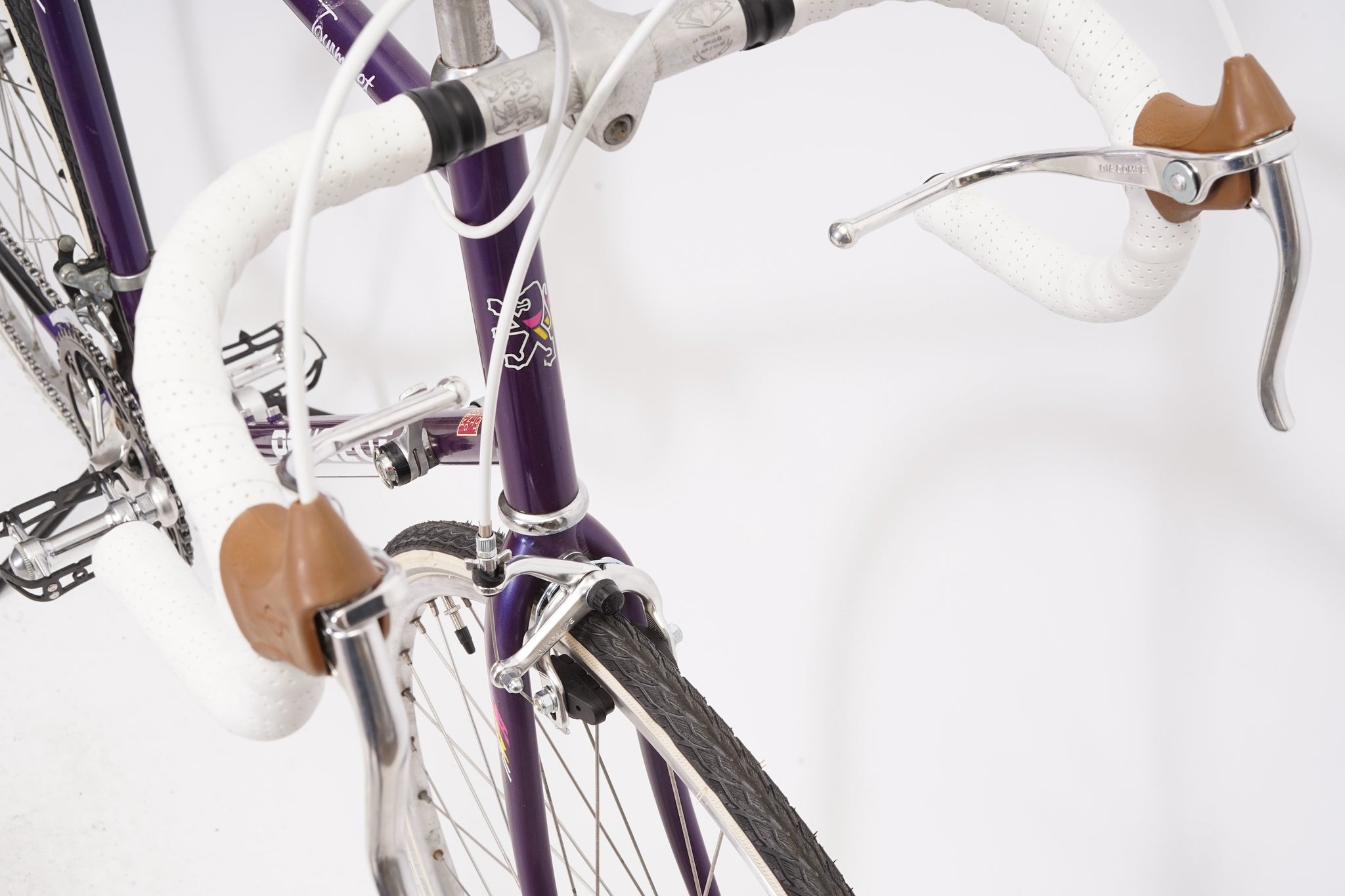 This Peugeot Tourmalet racer is great for putting in some miles while enjoying the vintage style. It is equipped with a 14-speed Shimano SIS gear-group and an original wheelset containing Rigida rims and Shimano hubs. All mechanical gear parts are original and in great condition. A lightweight, super fast, piece of history.
