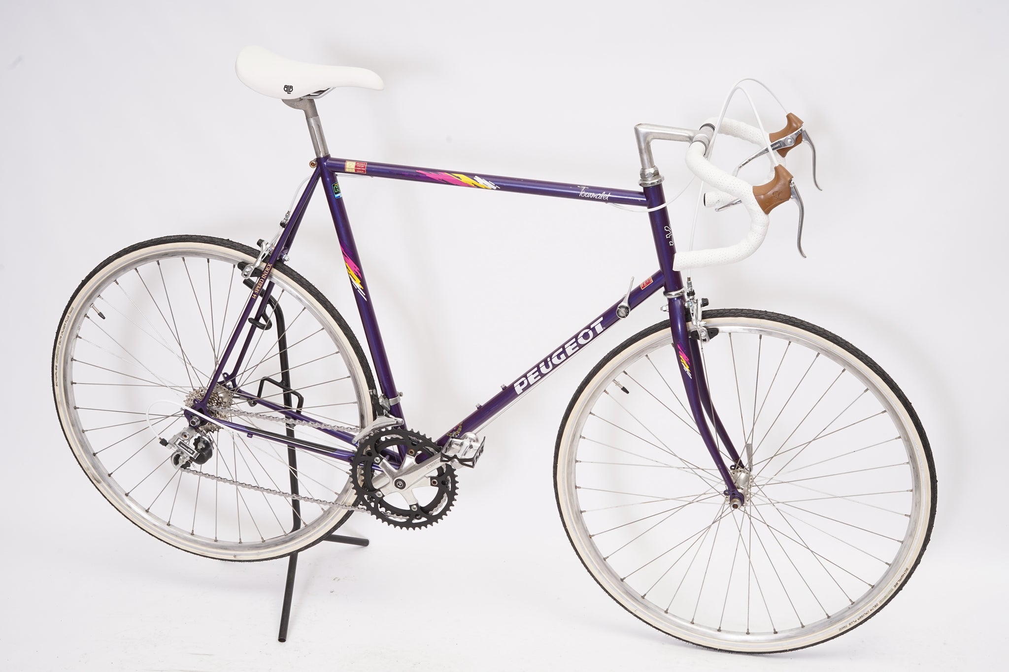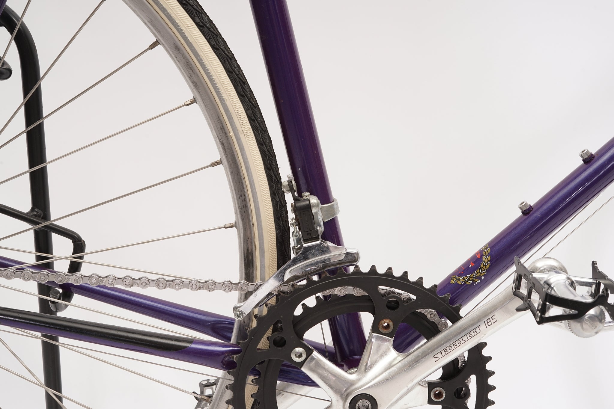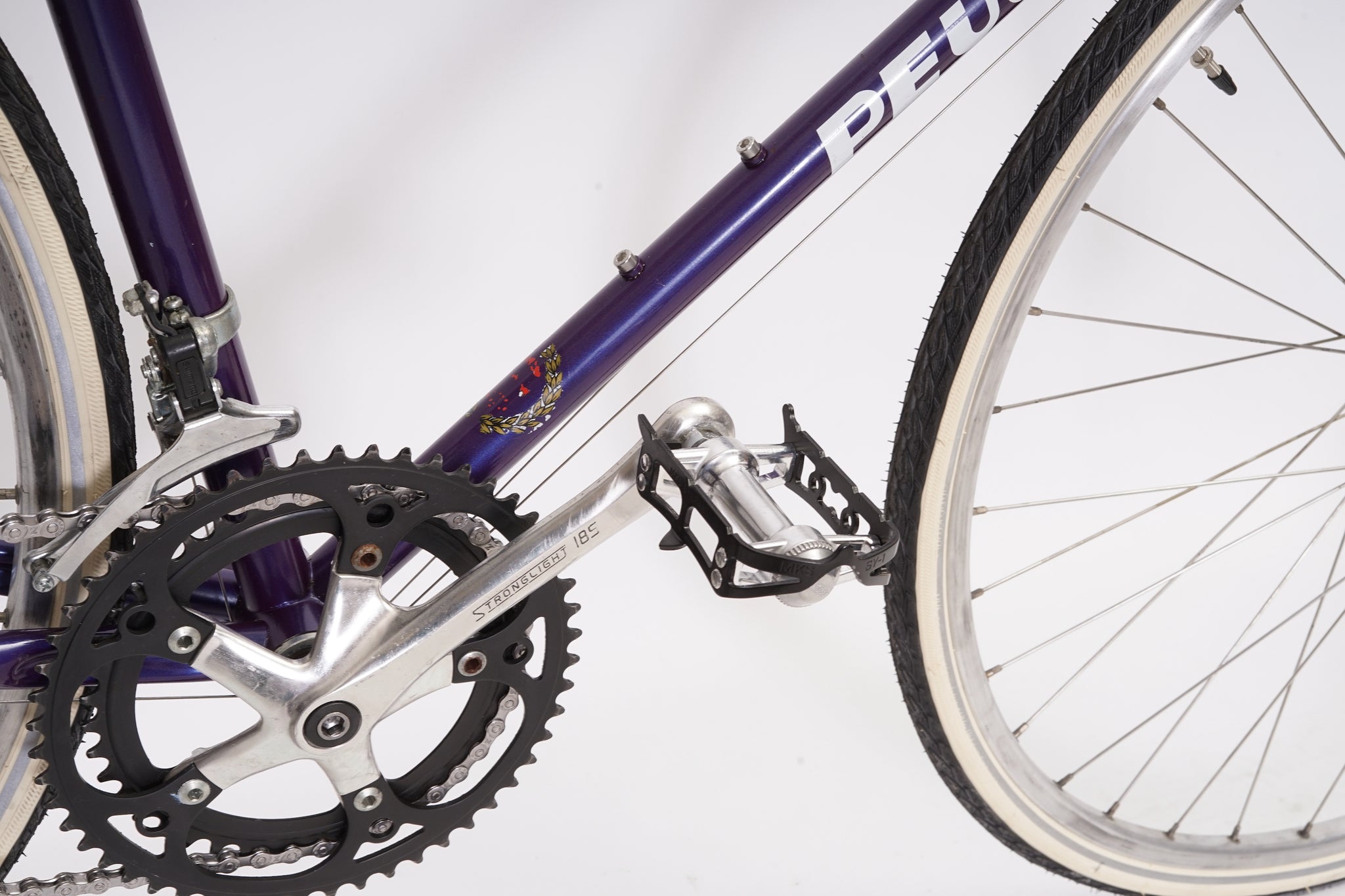 This Peugeot Tourmalet racer is great for putting in some miles while enjoying the vintage style. It is equipped with a 14-speed Shimano SIS gear-group and an original wheelset containing Rigida rims and Shimano hubs. All mechanical gear parts are original and in great condition. A lightweight, super fast, piece of history.
