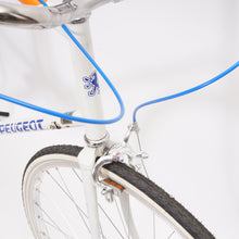 This single-speed city bike is built using a Peugeot frame from the late 1980s. The quality steel frame is combined with matching modern parts ensuring a very comfortable riding experience. Very low in maintenance since all mechanical parts have been replaced. Note: The frame has some spots, all of which have been treated by a coating to ensure its ready for the future.