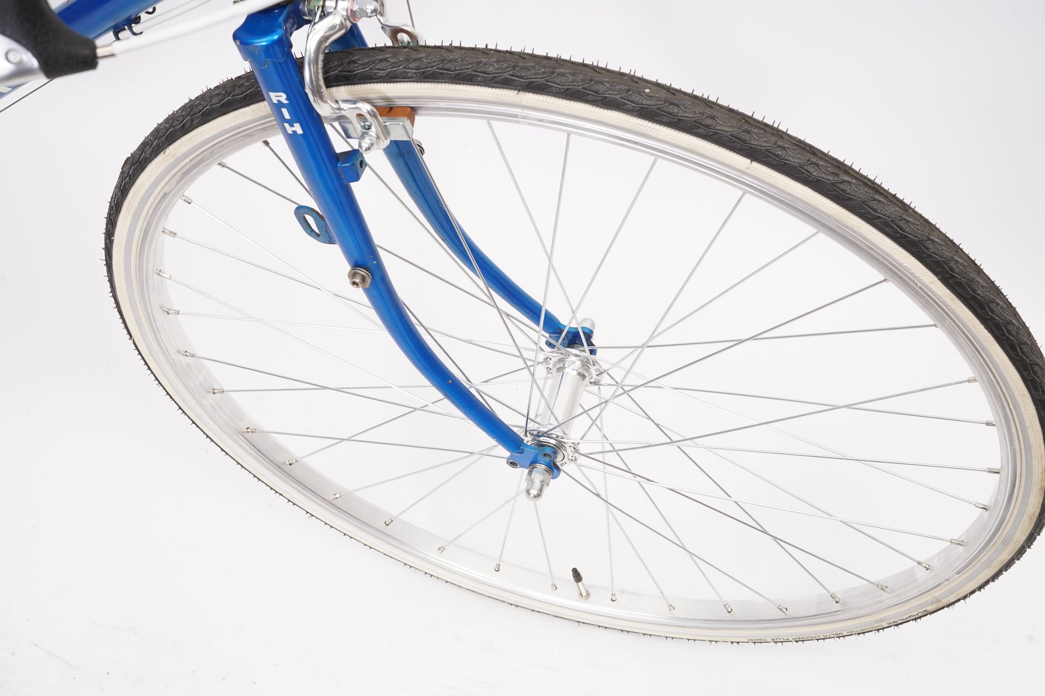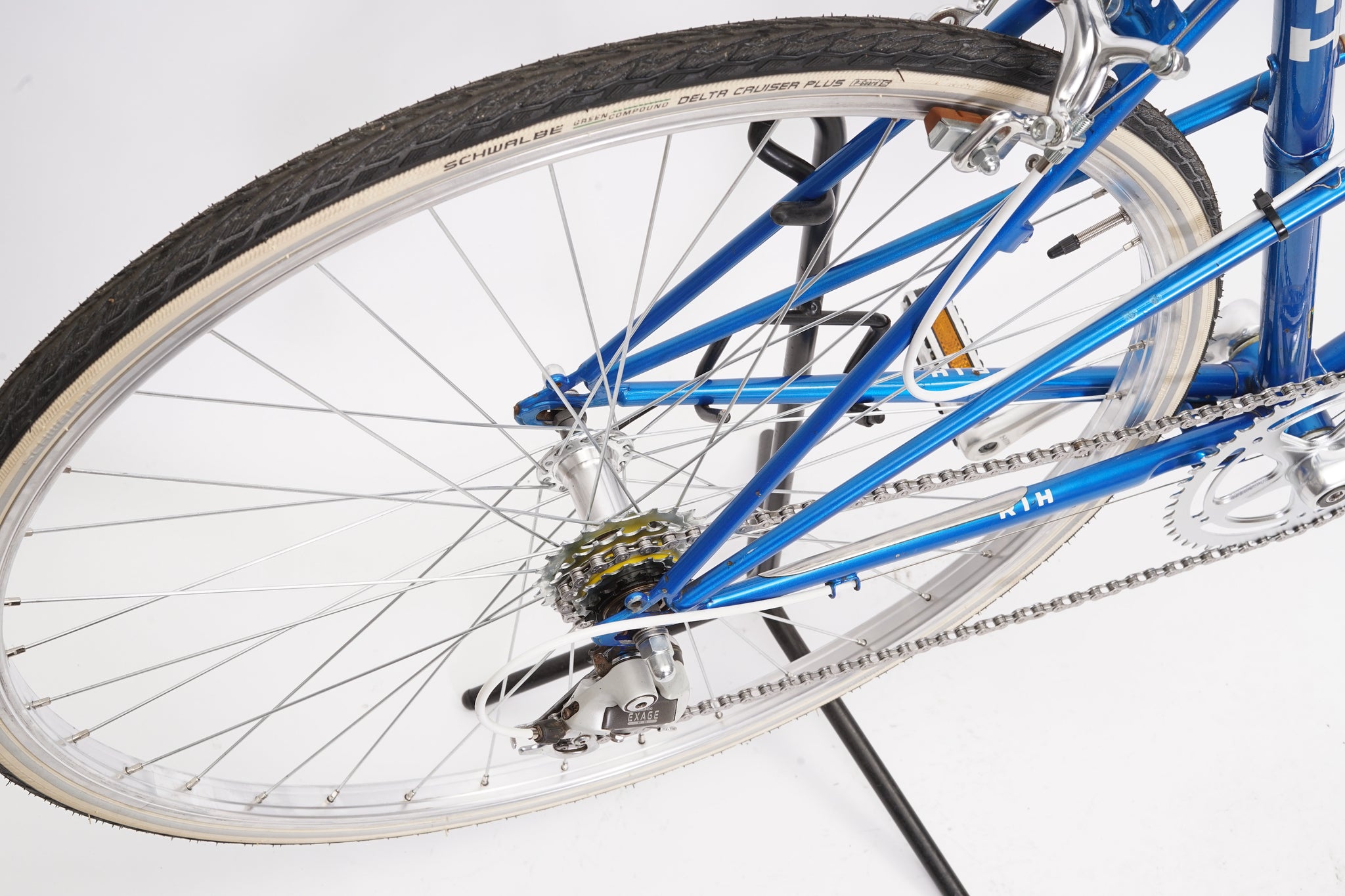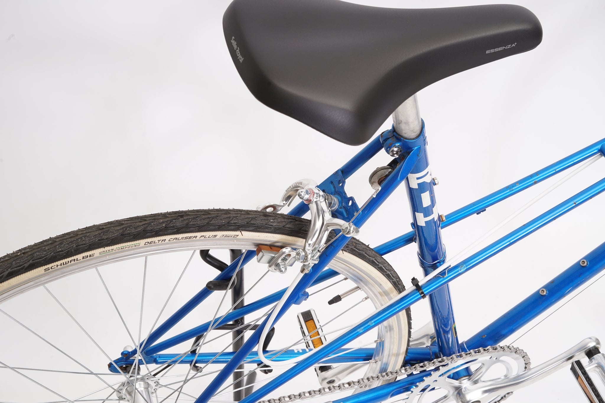 This high quality yet elegant RIH mixte with gears dates back to the early 1980s. The convenient low top tube and Schwalbe Delta Cruiser tires make this bike ideal for day-to-day usage. The bike is equipped with a quality Shimano gear group with 5 gears in total. Low in maintenance since most mechanical parts have been replaced.