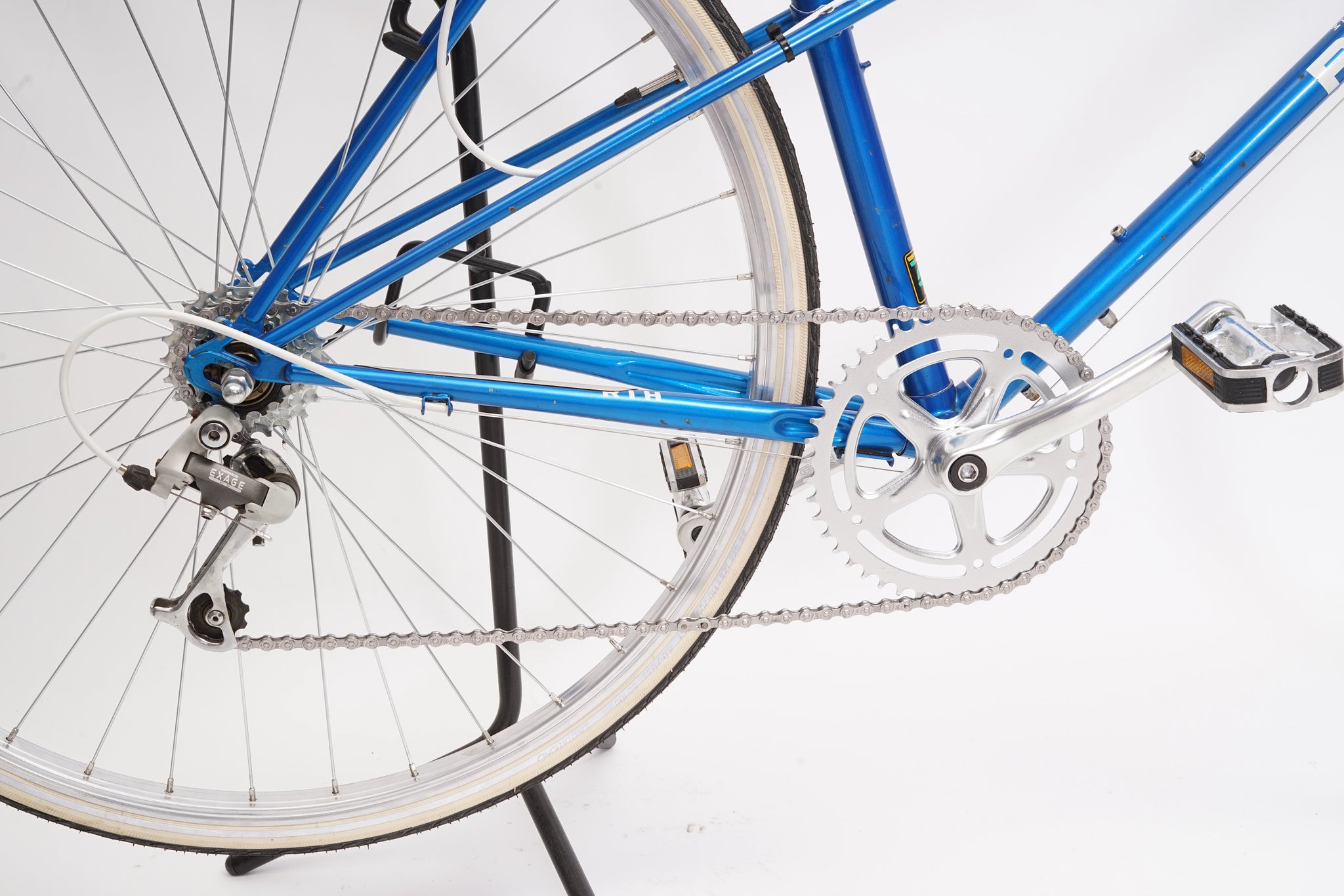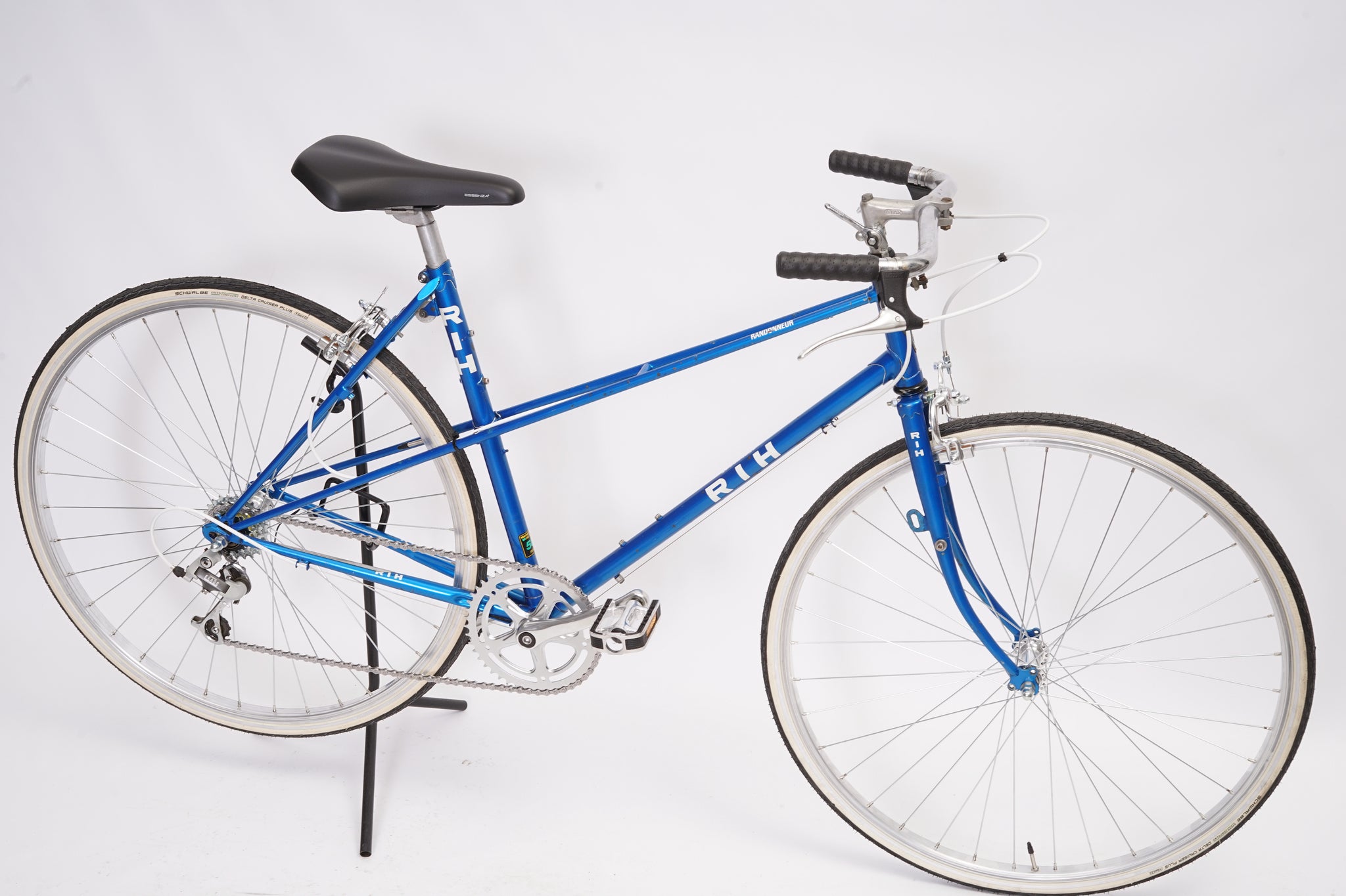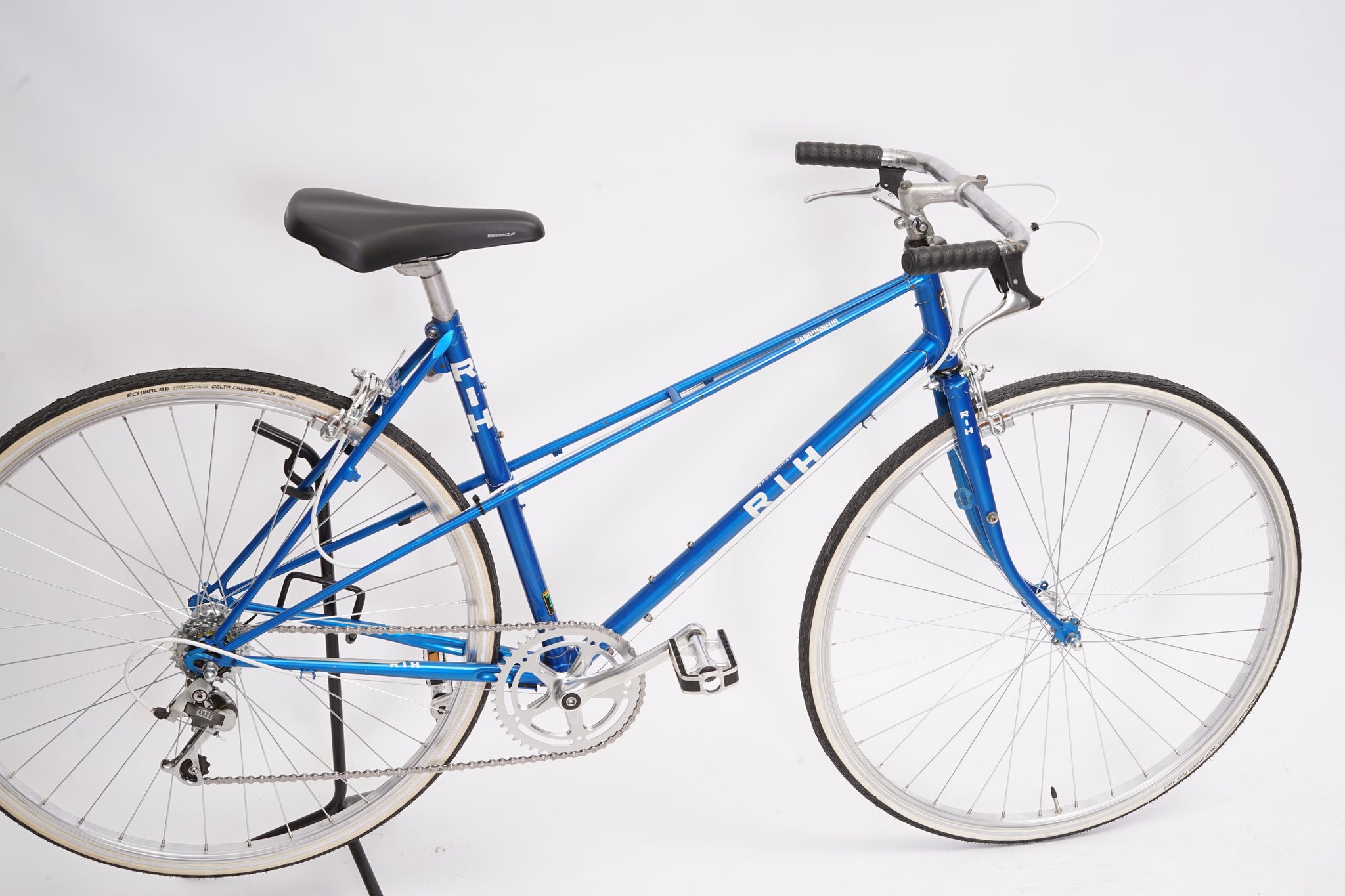 This high quality yet elegant RIH mixte with gears dates back to the early 1980s. The convenient low top tube and Schwalbe Delta Cruiser tires make this bike ideal for day-to-day usage. The bike is equipped with a quality Shimano gear group with 5 gears in total. Low in maintenance since most mechanical parts have been replaced.