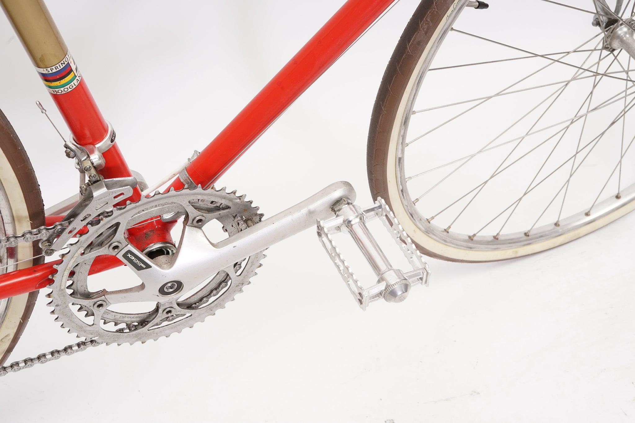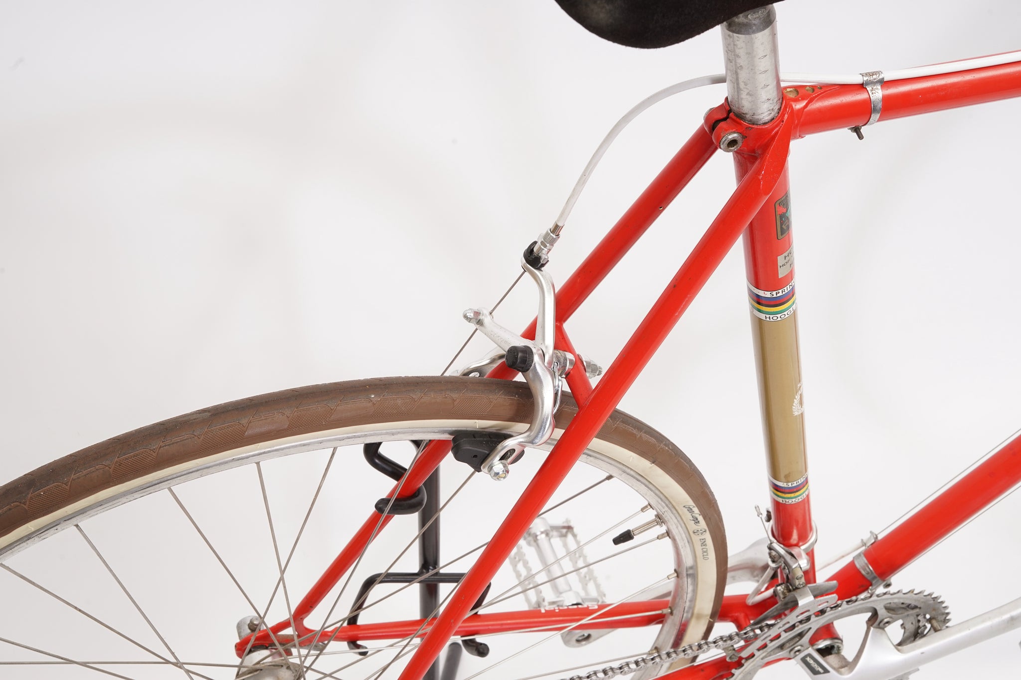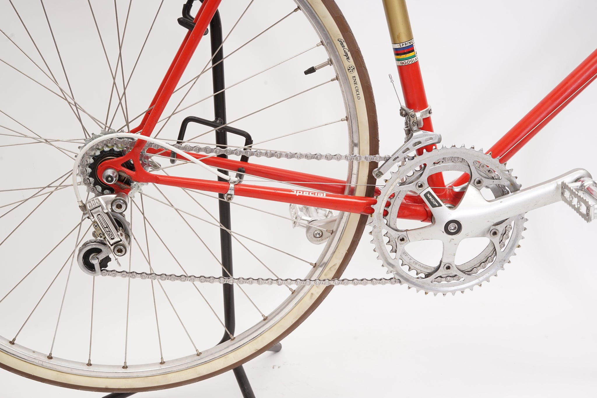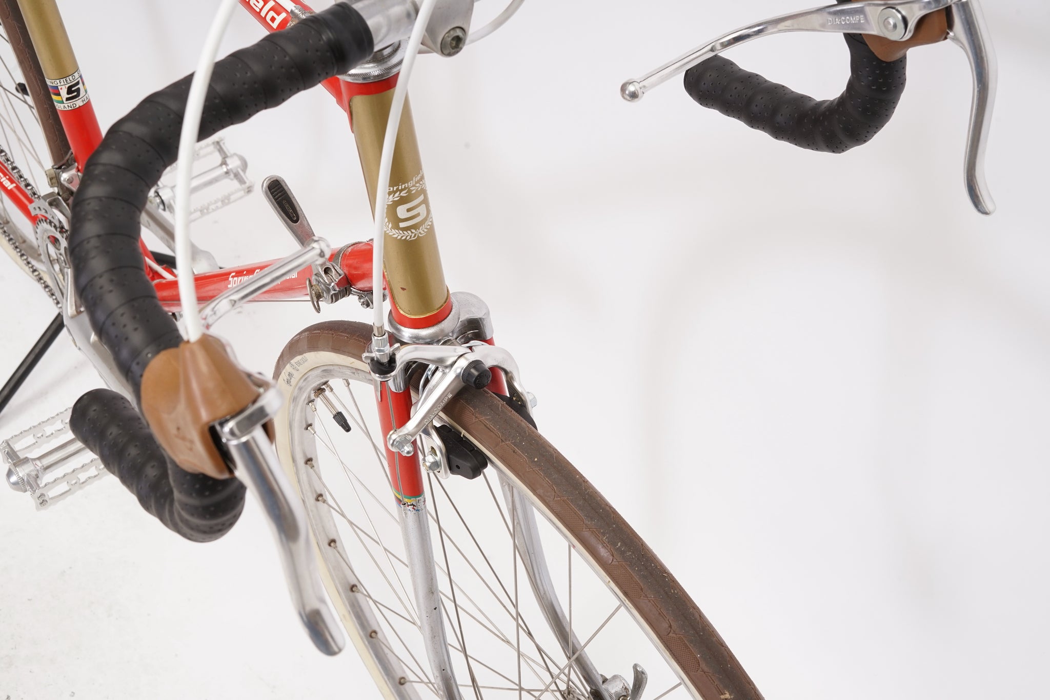 This Springfield Special racer is great for putting in some miles while enjoying the vintage style. It is equipped with a 10-speed Shimano gear-group and an original wheelset containing Mavic rims and Shimano hubs. All mechanical gear parts are original and in great condition. A lightweight, super fast, piece of history.