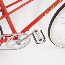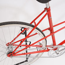 This single-speed mixte bike is built using a Stablinski frame from the early 1980s. The quality steel frame is combined with matching modern parts making the bike ideal for day-to-day usage. Very low in maintenance since all mechanical parts have been replaced. Note: The rear wheel has a Shimano back-pedal brake hub (coaster brake).