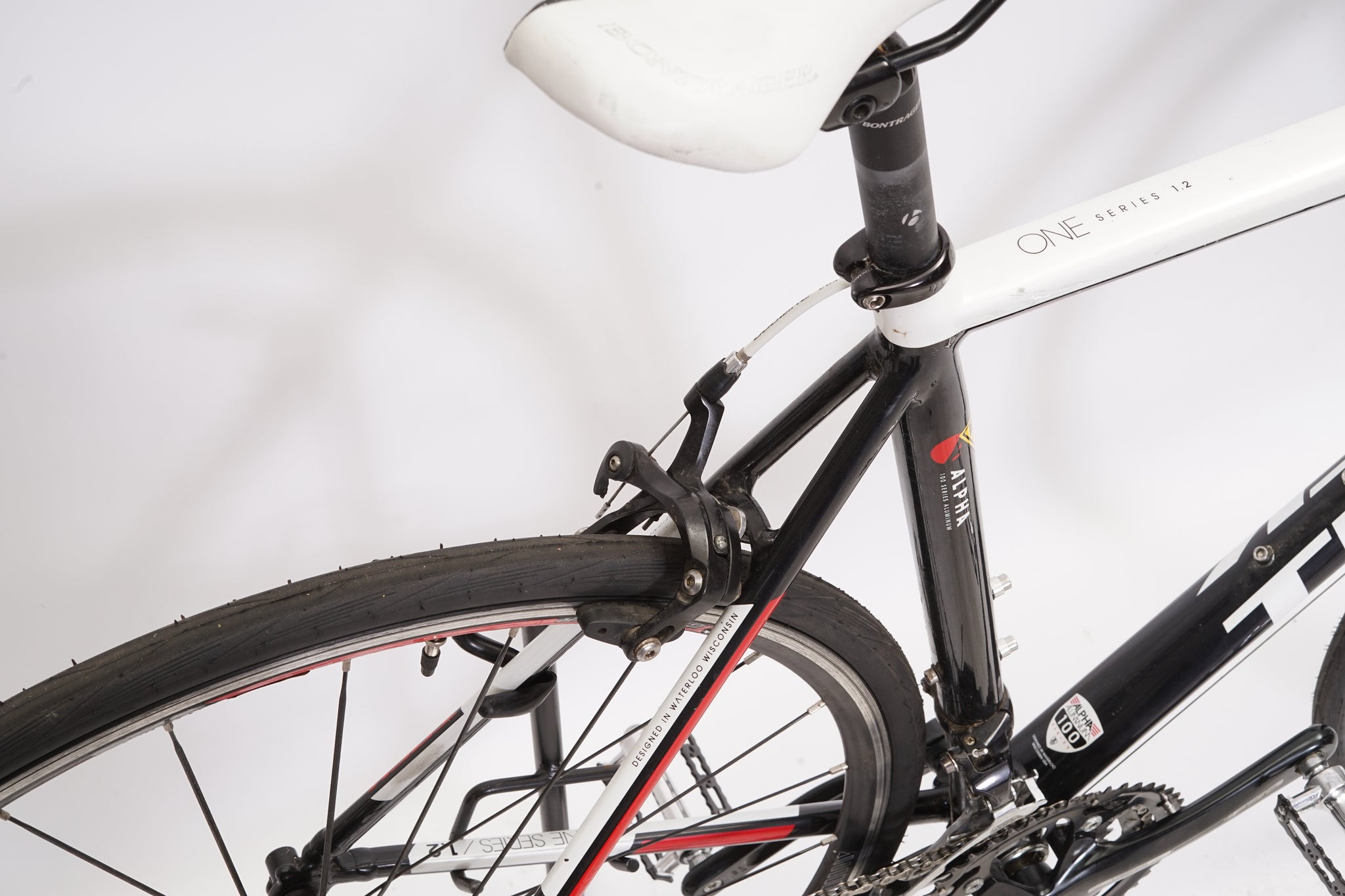 Lightweight and responsive, the Trek Alpha combines a refined aluminum frame with a 3×9 Shimano Sora drivetrain and durable Bontrager wheels for smooth, efficient performance on any road.. Its balanced geometry blends endurance comfort with agile handling, ideal for long rides or training sessions.