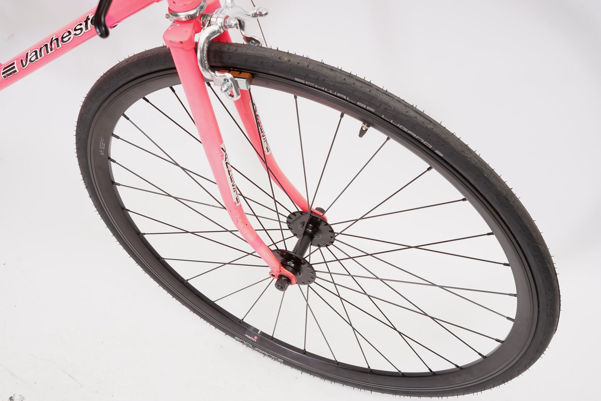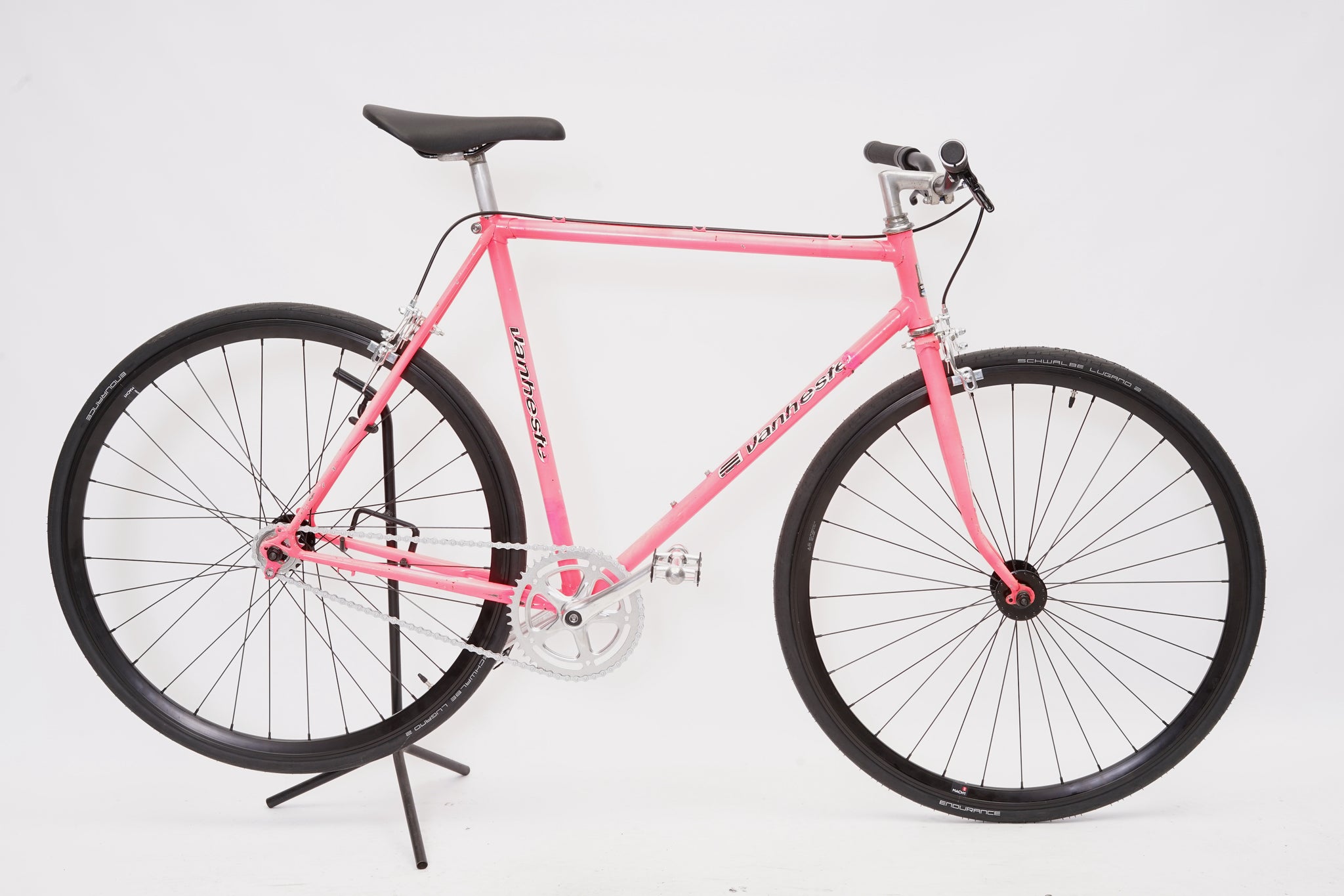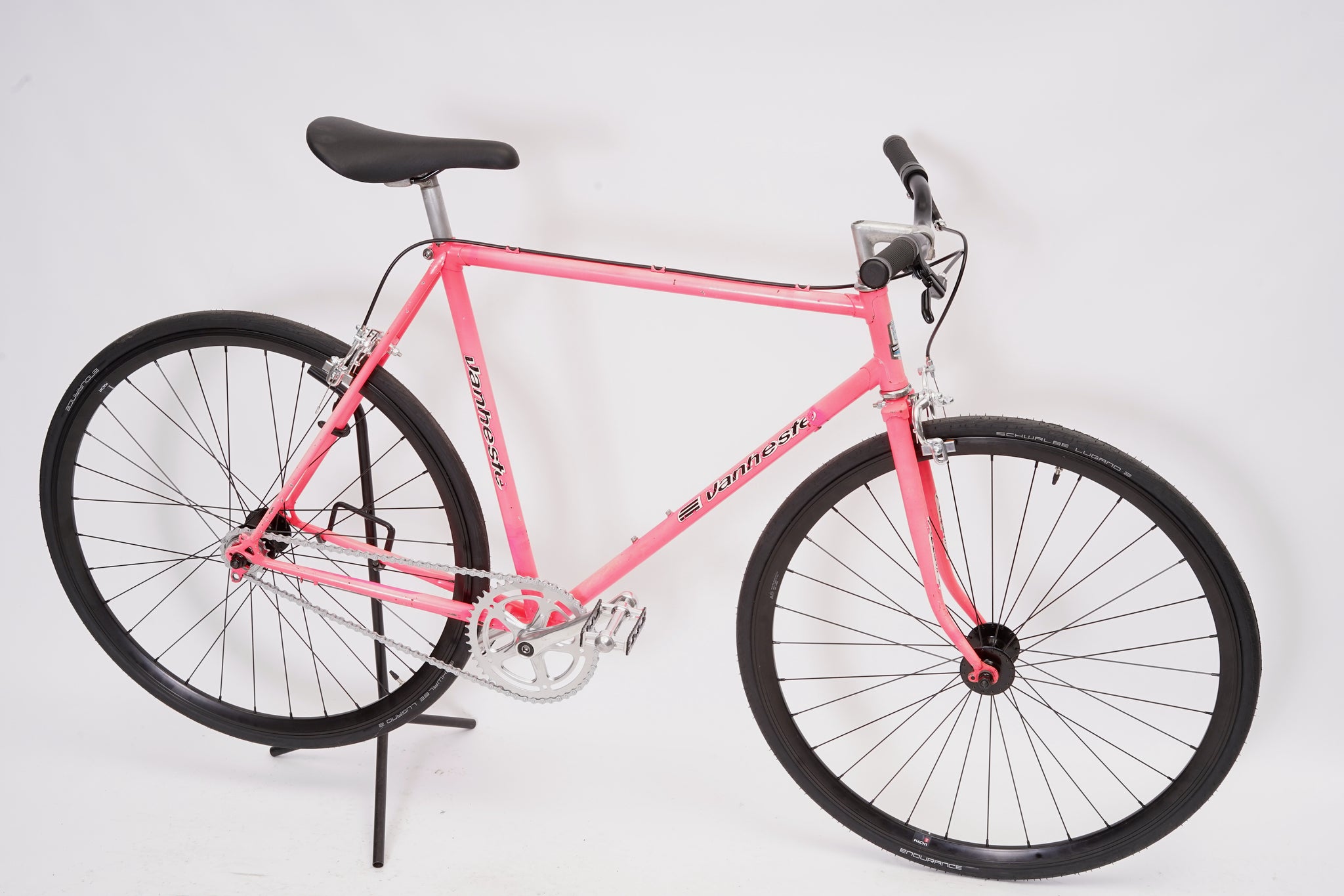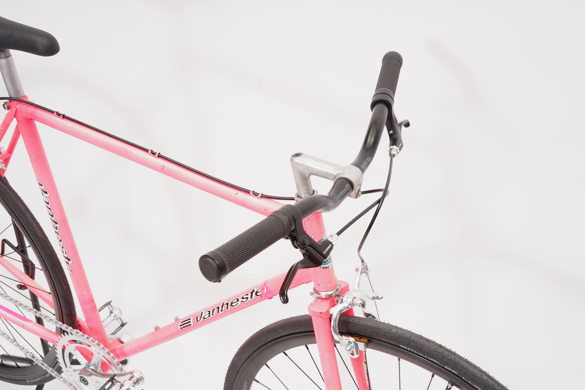 This single-speed city racer is built using a Vanheste frame from the early 1980s. The quality steel frame is combined with matching modern parts ensuring a very comfortable riding experience. Very low in maintenance since all mechanical parts have been replaced. Note: The frame has some spots, all of which have been treated by a coating to ensure its ready for the future.