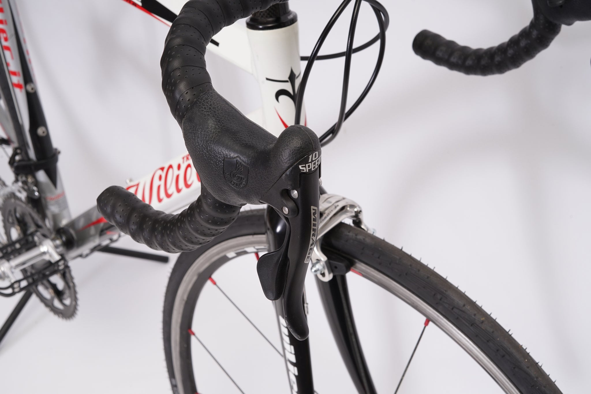 This Wilier racer is great for putting in some miles. It is equipped with a 20-speed Campagnolo Mirage gear-group. All mechanical gear parts are original and in great condition. A lightweight, super fast bike.